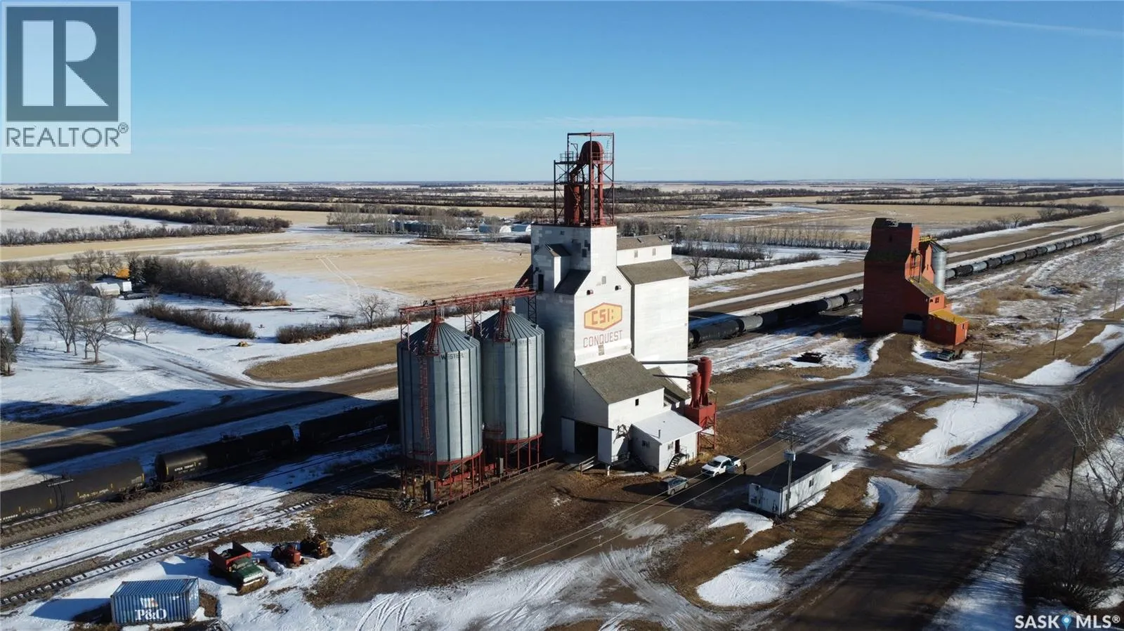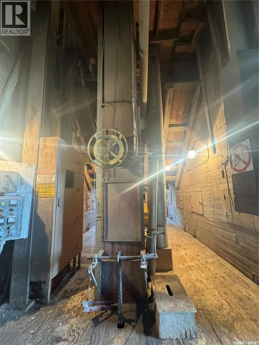 Grain elevator facility located on 8.15 acres of fully owned land in Saskatchewan. A rare opportunity to acquire an elevator property where the land is owned outright, with no railway land lease agreements tied to the site. Improvements include elevator structures, multiple grain bins, scale infrastructure, and an on-site office building. Storage capacity is approximately 4,500 metric tonnes. The property offers direct highway access suitable for truck traffic and ample yard space. Large parcel provides flexibility for a variety of agricultural or industrial applications. (id:27476)