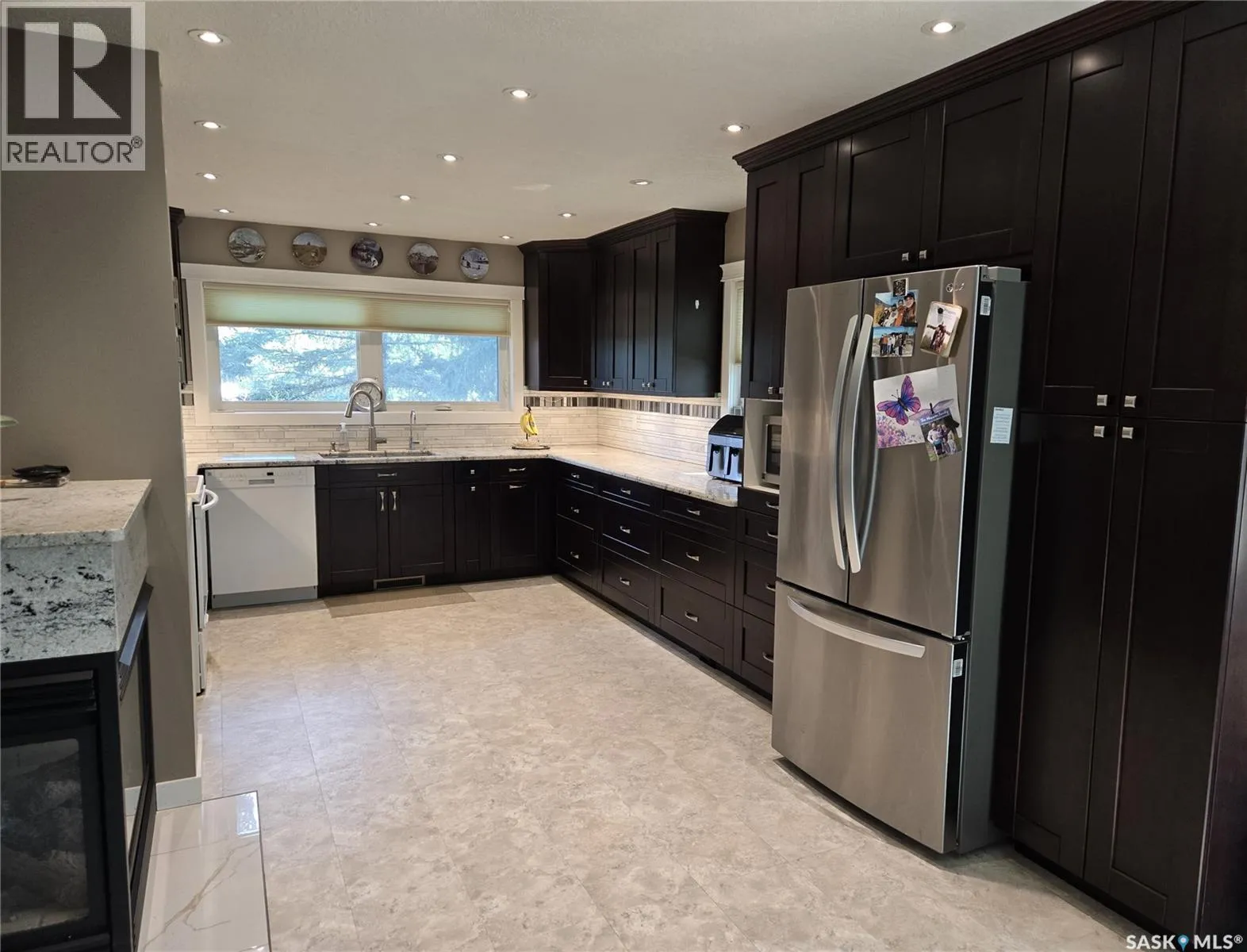 Welcome to your dream home! This expansive property offers unparalleled elegance and modern comfort, situated on a large fully fenced yard that ensures privacy to your own park-like backyard. The house itself is a well thought out design and craftsmanship, featuring high-end finishes that exude luxury. From the moment you walk in you see the quality finishes from the flooring which flows into the kitchen with separation of a three sided fireplace that not only serves to heat but gives great ambiance. The lavish kitchen is equipped with custom kitchen cupboards, polished off with granite counters and tiled backsplash, perfect for culinary enthusiasts and entertainers! This well built home was brought into another era with its facelift, changing the layout to be more functional along with the 12x19 addition of the sun room in 2020. This home is designed to be enjoyed year-round, featuring large windows that flood the space with natural light and views of the yard. The main floor also has 2 bedrooms along with the primary suite which has a walk-in closet along in the ensuite soon to be completed. The lower level has two more bedrooms along with ample room to run around, play games or relaxing with a movie. The car enthusiast will be delighted by the massive garage(32x25), providing ample space for toys, tinkering or for multiple vehicles and additional storage, which is accessible from the basement. The outdoor area is equally impressive, with a vast yard that offers endless possibilities for gardening, recreation, or simply enjoying the outdoors in your own private oasis. Don't miss the opportunity to own this extraordinary property, where luxury meets comfort in a truly remarkable setting. We have a video tour available! (id:27476)
