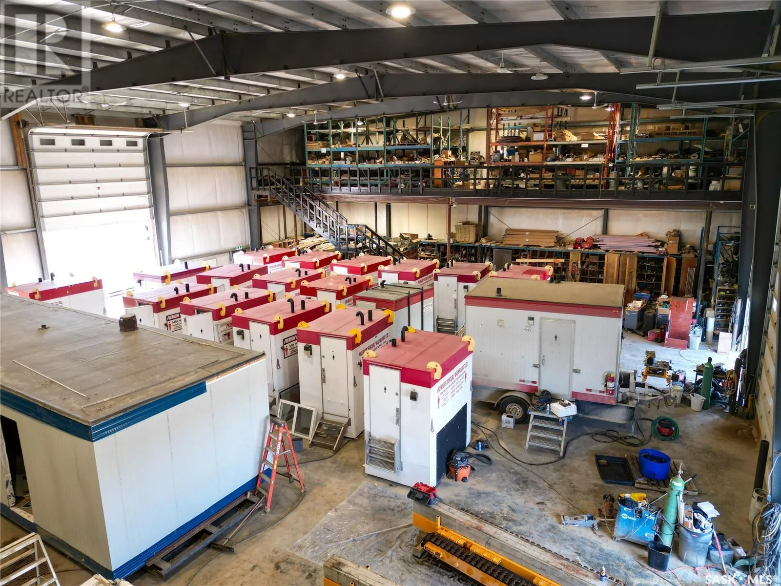 Looking for a premium industrial building with 5 acres of fenced land? Then you better take a look at this 12,463 sq/ft building sitting on 5 acres in Premium Industrial Park in the RM of Corman Park. Built in 2019, this property features approx. 8000 sq/ft of warehouse space, 3000 sq/ft of office space, and 1500 sq feet of storage space. The office area includes 3 x 2 pc bathrooms, 2 kitchenettes. a waiting room area and front desk area, an upstairs storage space, central air heating and cooling along with in floor heat, and and features quality tile and laminate flooring throughout. The warehouse area features a 5 pc bathroom for staff and sealed concrete floors with in floor heat, make up air and ceiling hung N/G heater. Warehouse features six 16x16 overhead doors and has high clearance inside up to 32 ft that make it a versatile option for many different uses. 1500 sq/ft of upstairs mezzanine storage lets you make the most of the warehouse space. Three phase power, N/G, and high pressure water with septic tank, pavement with high weight capacity rating right to your fenced property make this property capable for any type of industrial use. With close proximity to Saskatoon and excellent highway access to the north or Saskatoon area, this is an ideal location for a diverse mix of potential uses. Looking for this level of servicing but don't need this much land or a different building? Other parcels and build to suit options available in Premium Park, ask your Realtor for more information. (id:27476)