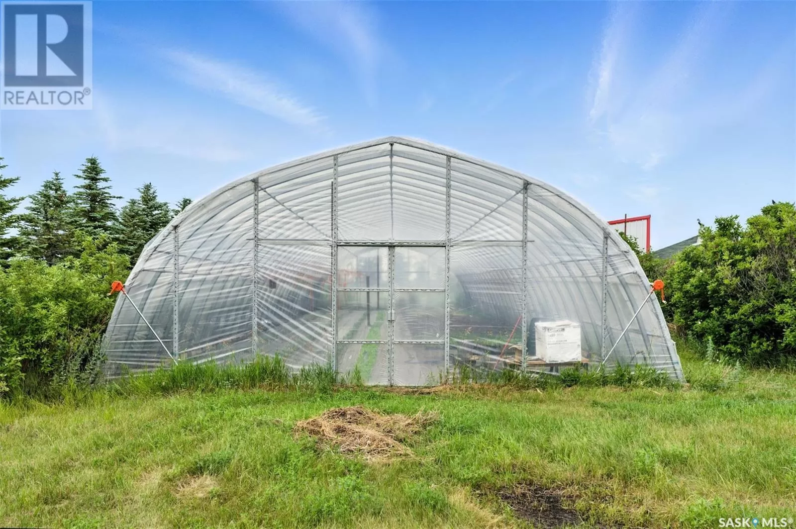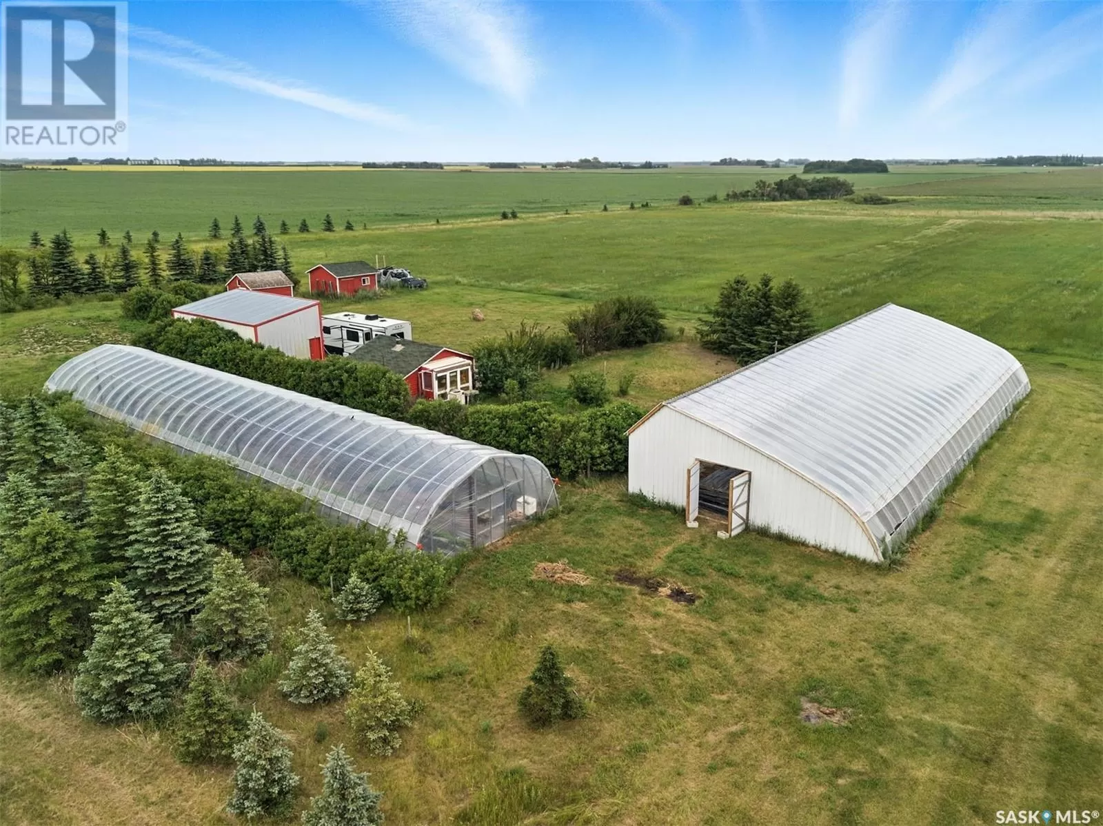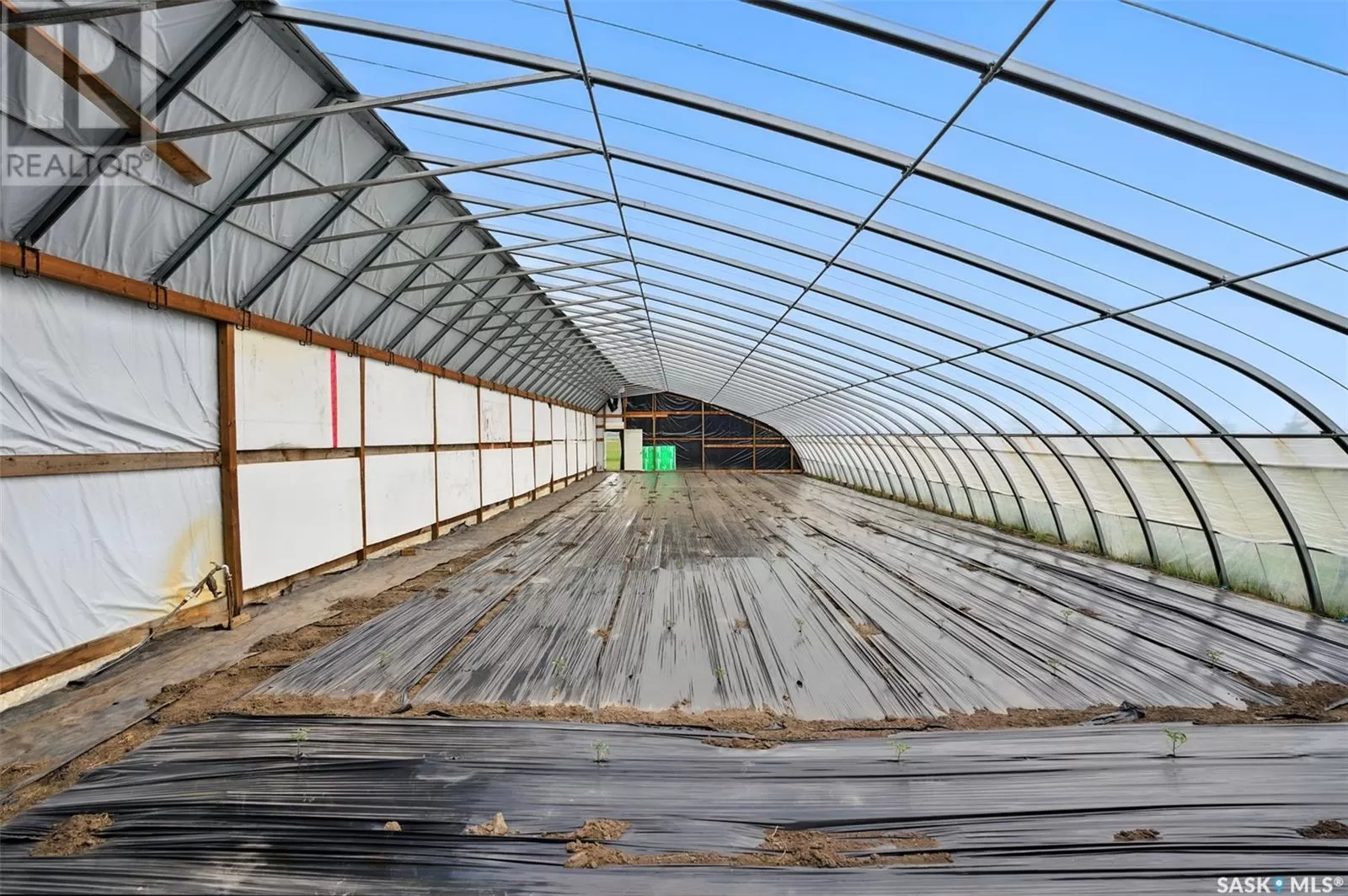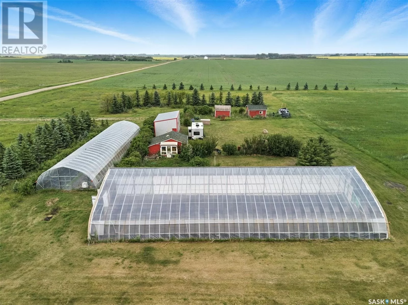 take hwy 16 towards Langham, turn left (west) on Luthern Rd. (Township Rd 382) Go 1.5 miles and turn left (south) on Range Road 3065. Site is 1 mile down on the left hand side with 3 red buildings and 2 greenhouse This exceptional 9.8-acre flat agricultural-residential parcel is located just 12 minutes northwest of Saskatoonâs North Costco, offering both immediate utility and long-term investment potential. Situated within the cityâs future urban development plan and close to the upcoming Ring Road and arterial expansions, the area has seen rising land values driven by infrastructure growth and regional potash resource potential. The property is set up for the establishment of an Intensive Agriculture-Horticulture operation (with permit and rarely granted approval). It features two greenhouses valued at approximately $100,000 (approximately 6,000 square feet for two combined & professionally designed specifically for Saskatchewanâs climate condition), a 30â x 16â x 12â quonset/shop large enough to house a tractor, and three additional outbuildings for storage. Utilities include electricity already in use, an 85-foot water well, and gas line access is nearby. The land is surrounded by mature windbreak trees, offering privacy and natural protection. Mineral rights are included, with a potential standalone value of $30,000â$50,000+, and pending compensation remains unclaimed. Whether for farming, building, or commercial ventures, this property offers excellent views, strong upside potential, and a rare blend of infrastructure, income opportunity, and development appeal. (id:27476)