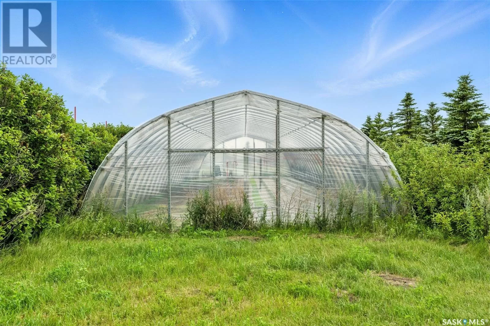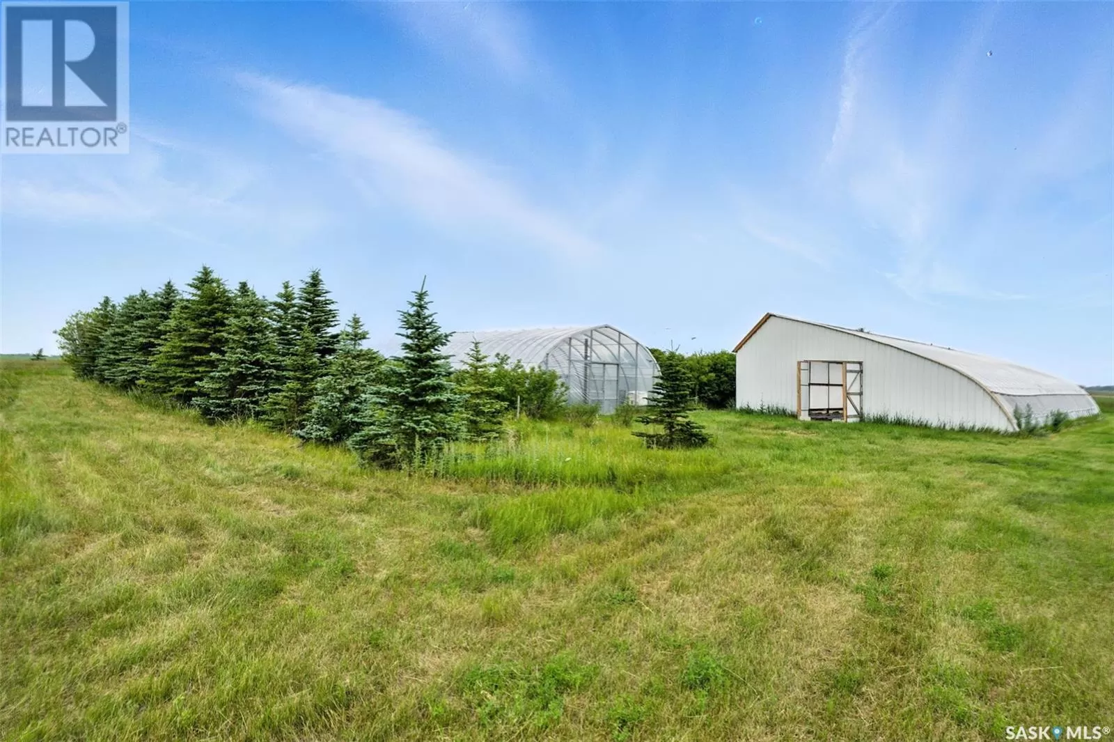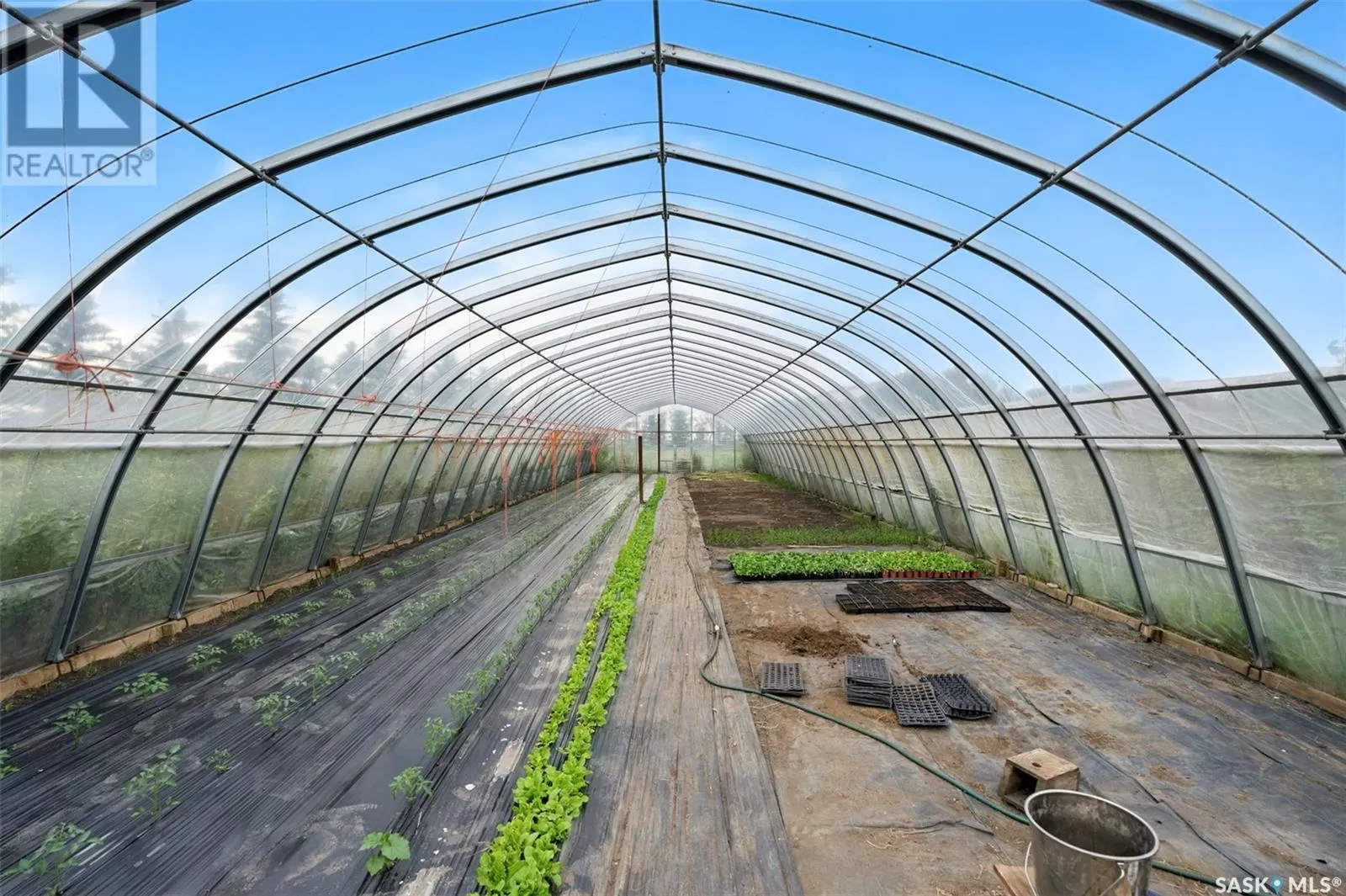 take hwy 16 towards Langham, turn left (west) on Luthern Rd. (Township Rd 382) Go 1.5 miles and turn left (south) on Range Road 3065. Site is 1 mile down on the left hand side with 3 red buildings and 2 greenhouse This exceptional 9.8-acre flat agricultural-residential parcel is located just 12 minutes northwest of Saskatoonâs North Costco, offering both immediate utility and long-term investment potential. Situated within the cityâs future urban development plan and close to the upcoming Ring Road and arterial expansions, the area has seen rising land values driven by infrastructure growth and regional potash resource potential. The property is set up for the establishment of an Intensive Agriculture-Horticulture operation (with permit and rarely granted approval). It features two greenhouses valued at approximately $100,000 (approximately 6,000 square feet for two combined & professionally designed specifically for Saskatchewanâs climate condition), a 30â x 16â x 12â quonset/shop large enough to house a tractor, and three additional outbuildings for storage. Utilities include electricity already in use, an 85-foot water well, and gas line access is nearby. The land is surrounded by mature windbreak trees, offering privacy and natural protection. Mineral rights are included, with a potential standalone value of $30,000â$50,000+, and pending compensation remains unclaimed. Whether for farming, building, or commercial ventures, this property offers excellent views, strong upside potential, and a rare blend of infrastructure, income opportunity, and development appeal. (id:27476)
