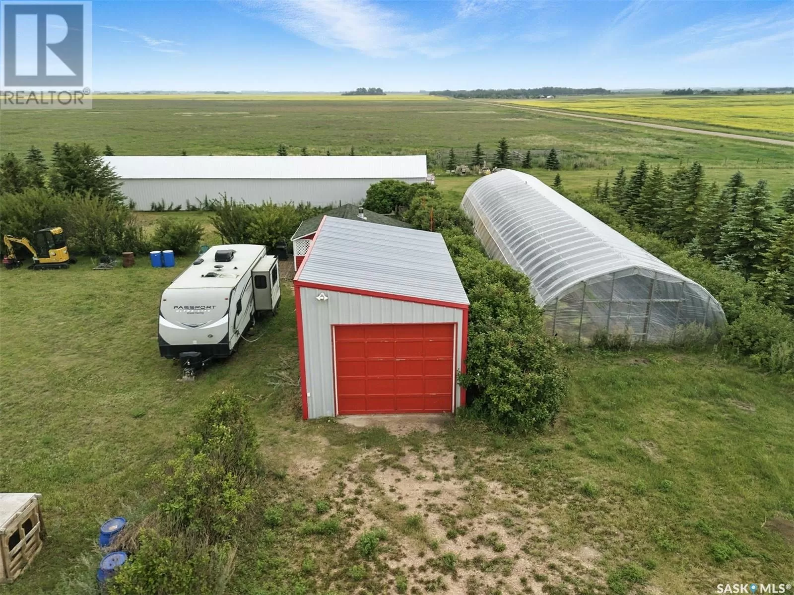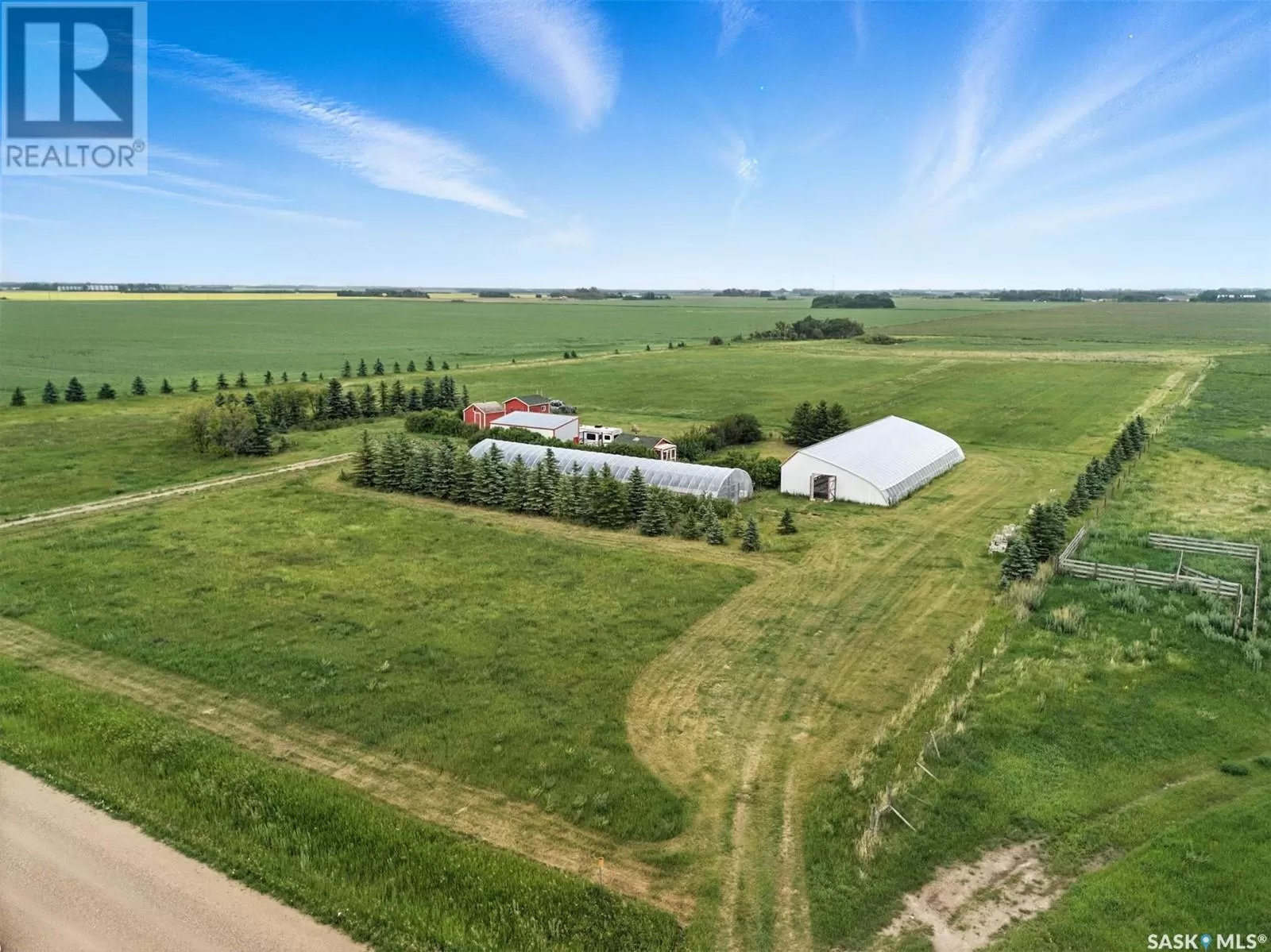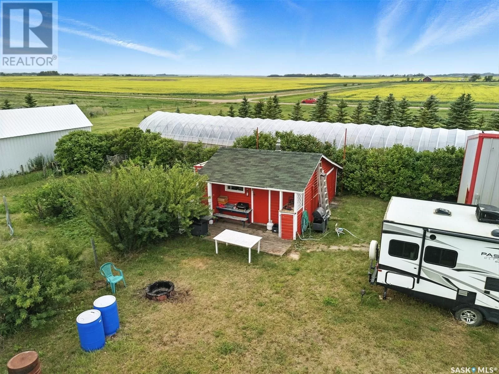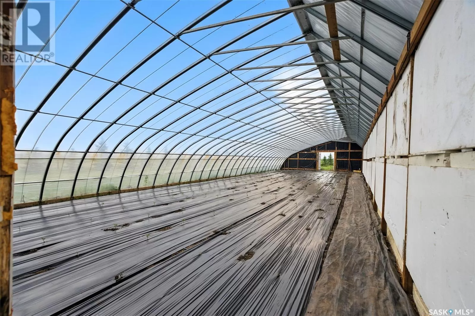 take hwy 16 towards Langham, turn left (west) on Luthern Rd. (Township Rd 382) Go 1.5 miles and turn left (south) on Range Road 3065. Site is 1 mile down on the left hand side with 3 red buildings and 2 greenhouse This exceptional 9.8-acre flat agricultural-residential parcel is located just 12 minutes northwest of Saskatoonâs North Costco, offering both immediate utility and long-term investment potential. Situated within the cityâs future urban development plan and close to the upcoming Ring Road and arterial expansions, the area has seen rising land values driven by infrastructure growth and regional potash resource potential. The property is set up for the establishment of an Intensive Agriculture-Horticulture operation (with permit and rarely granted approval). It features two greenhouses valued at approximately $100,000 (approximately 6,000 square feet for two combined & professionally designed specifically for Saskatchewanâs climate condition), a 30â x 16â x 12â quonset/shop large enough to house a tractor, and three additional outbuildings for storage. Utilities include electricity already in use, an 85-foot water well, and gas line access is nearby. The land is surrounded by mature windbreak trees, offering privacy and natural protection. Mineral rights are included, with a potential standalone value of $30,000â$50,000+, and pending compensation remains unclaimed. Whether for farming, building, or commercial ventures, this property offers excellent views, strong upside potential, and a rare blend of infrastructure, income opportunity, and development appeal. (id:27476)