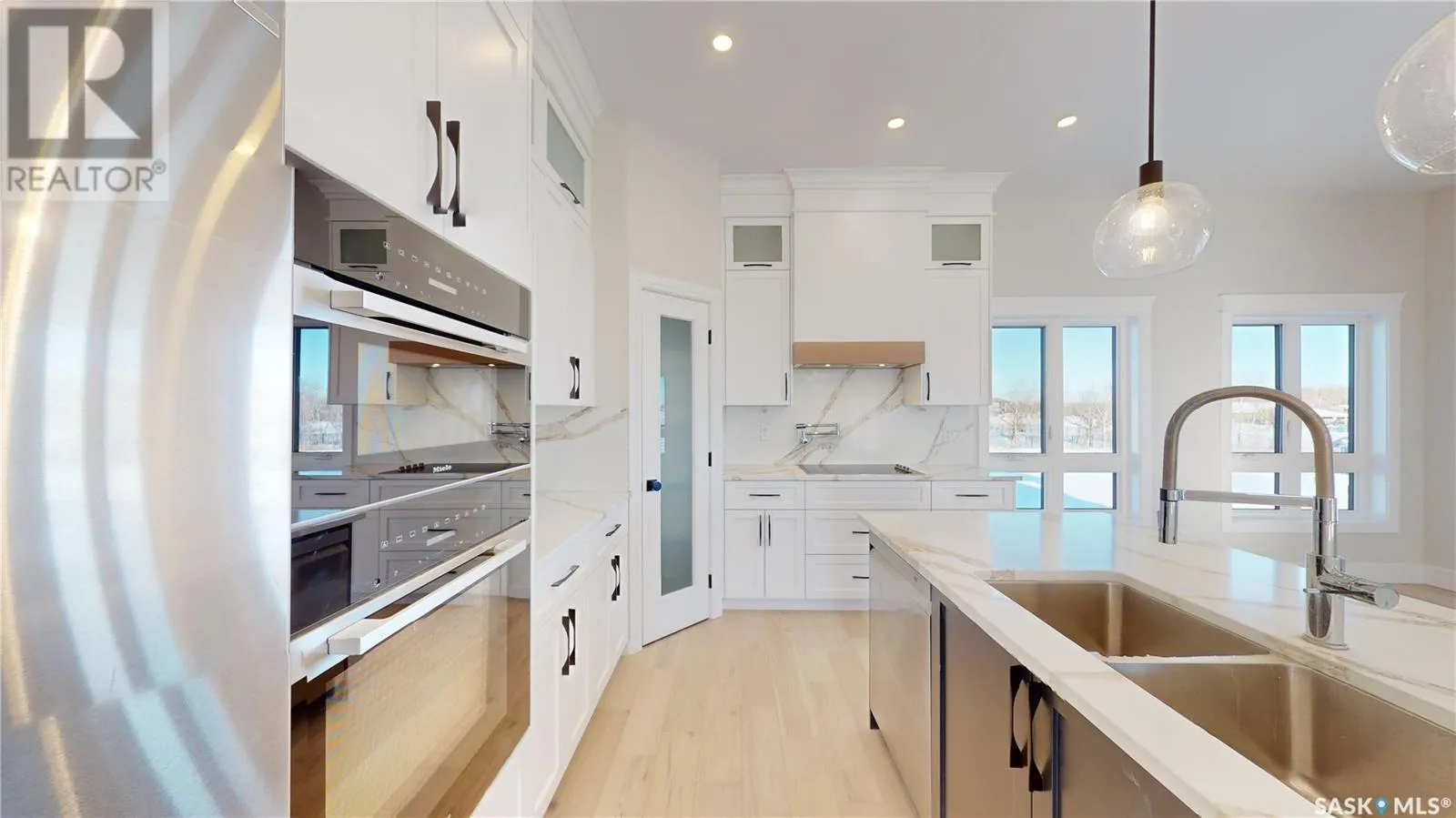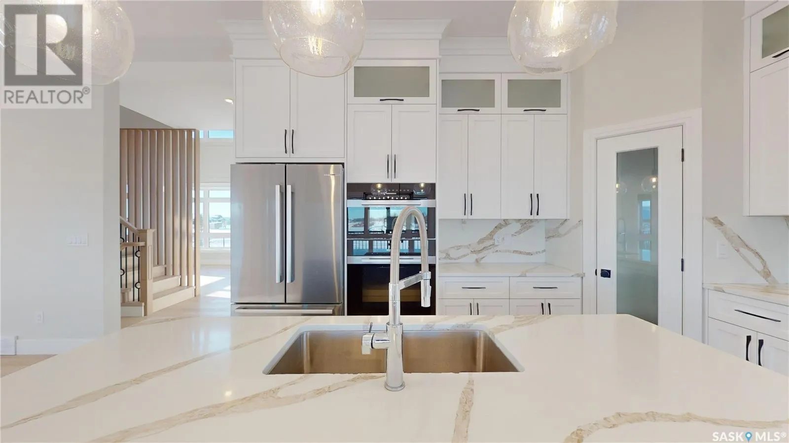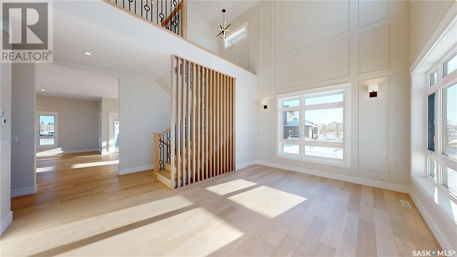 Welcome to this magnificently large and luxurious home in Edgemont Park Estates, one of the Saskatoon area's most exclusive and desirable acreage communities only a few minutes south of the city. Exquisite executive features abound inside and out with 2,837 square feet of living space above grade, an attached 4-car heated garage, plus a completely finished basement. With five bedrooms and six bathrooms, it's the perfect fit for a large family, boasting ample capacity for multigenerational, extended family, or those who enjoy hosting and entertaining guests. The main floor has an impressive living room with a soaring second-floor ceiling and an open-concept kitchen, dining area, and family room. The chef-worthy primary kitchen has custom cabinets with ceiling-high upper cabinets and high-end appliances, and is complemented by a second kitchen for food prep and spicy cooking. The upper level includes three generously sized bedrooms, three ensuite bathrooms, and two balconies for outdoor relaxation. The lower level offers a family room theatre, bar area, and two more bedrooms and full bathrooms. Upgrades include gorgeous engineered hardwood and tile floors, intricate finishing details, central air conditioning, an insulated exterior acrylic stucco system, 10 foot main floor walls, 9 foot 2nd floor and basement walls, and much more. Other wonderful features include main floor laundry, a massive covered deck, and a rear-facing overhead door. Ready for immediate possession, call now for more information or your own private preview. (id:27476)