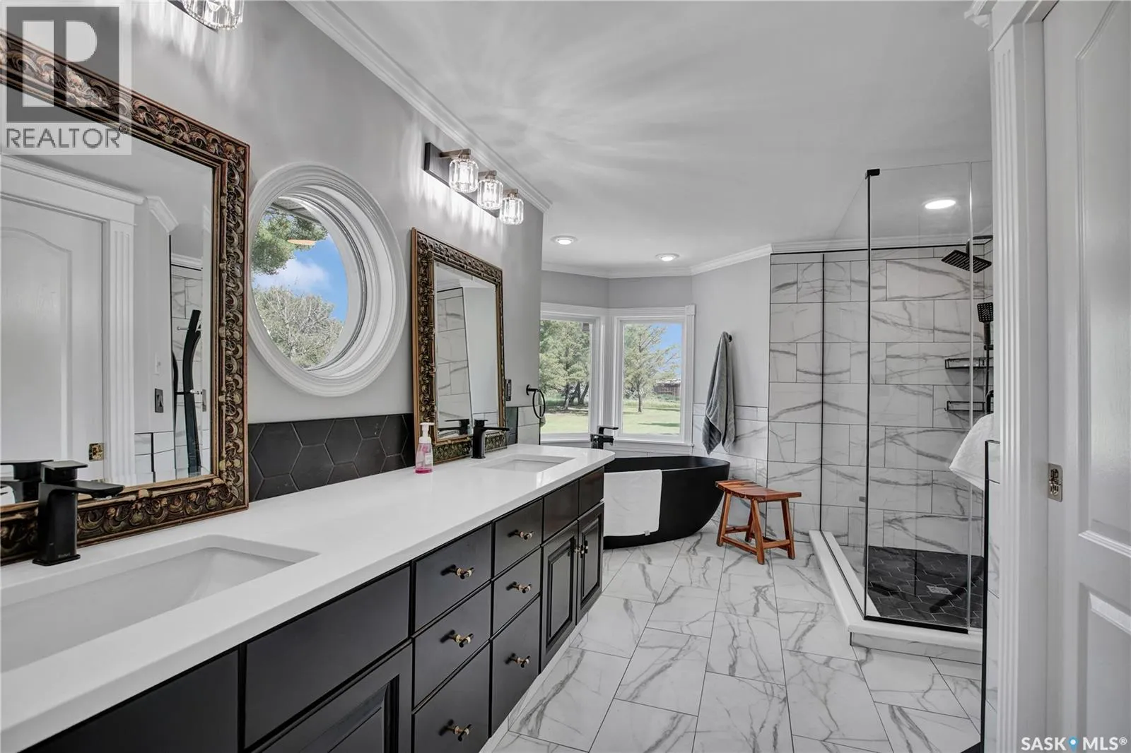 Maple Hedge Historical Home Site is a truly unique propertyâthe first lot in the upcoming Maple Hedge Estates, a beautiful new country residential development featuring over 250 acreage lots on three quarters of land. This 14-acre site offers a spacious 4,201 sq ft bungalow nestled among mature trees, with a triple attached heated garage, double detached shop, and barn. Built in 1993, the home includes six bedrooms, seven bathrooms, and a basement studioâideal for extended family or nanny suite. The tour begins with a tiled front foyer that leads into a bright reception room with large windows and skylights. A private study overlooks the front yard and shares a two-sided wood-burning fireplace and a two-piece bath with the reception room. The main wing features a gourmet kitchen with cherry wood cabinets, walk-in pantry, dual built-in ovens, large island with gas cooktop, and breakfast nook with sunny east views. A sunken living room with wood-burning stove opens to a beautiful sunroom overlooking the backyard with access to a large deck and patio space. Down the hall are two bedrooms with en-suites, a mudroom, and access to the heated triple garage. The south wing offers three more bedrooms, one with an en-suite, a main bath, and a luxurious primary suite with gas fireplace, sitting area, walk-in closet, and a five-piece en-suite. The large laundry room leads to the basement studio that adds flexible living space. The meticulously maintained grounds offer privacy, green space, and room to play. The barn provides excellent storage or animal use, and a zipline from the hayloft to near the house adds family fun. This property also includes an investment opportunity with an option to include two adjacent lots for only $100.00 each providing future profit and control of the land just south of the home A rare combination of estate living and investment potential. Call today for your private showing. (id:27476)