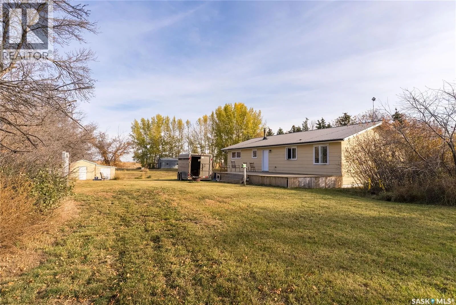 Step into this dream hobby farm!!! Ideally located less than 30 minutes from Saskatoon and only 7 min from Asquith in a mature parklike setting with loads of upgrades and tons of appeal. This over 1300 sqft bungalow features newer windows, paint throughout,updated kitchen, bathrooms, roof and flooring. The main floor is flooded with abundant natural light and sweeping views showcasing a sunken living room, dining room and kitchen with warm cinnamon cabinets, main floor laundry 3 good size bedrooms with an ensuite off the master bedroom. The lower level is super spacious with a family room finished in warm tong and groove pine, large den with walk in closet and pedestal sink, 4th bedroom and large 3-piece bath. Additional features include central air, separate entrance to basement, deck 16 X30 overlooking back yard, a double detached garage insulated, drywalled and exclusive air brush painting inside by local and renowned artist James McCall making this the ultimate man cave, and for all the hunters out there check out the abattoir that is wired and plumbed, and the bunk house is heated! This property is partially fenced with 3 watering bowls. This is the ultimate opportunity for horse enthusiasts seeking the perfect lifestyle to raise their family and live their dream! Only 10 min from the river and riding arenas! Don't miss this!! Schedule A must accompany all offers. (id:27476)