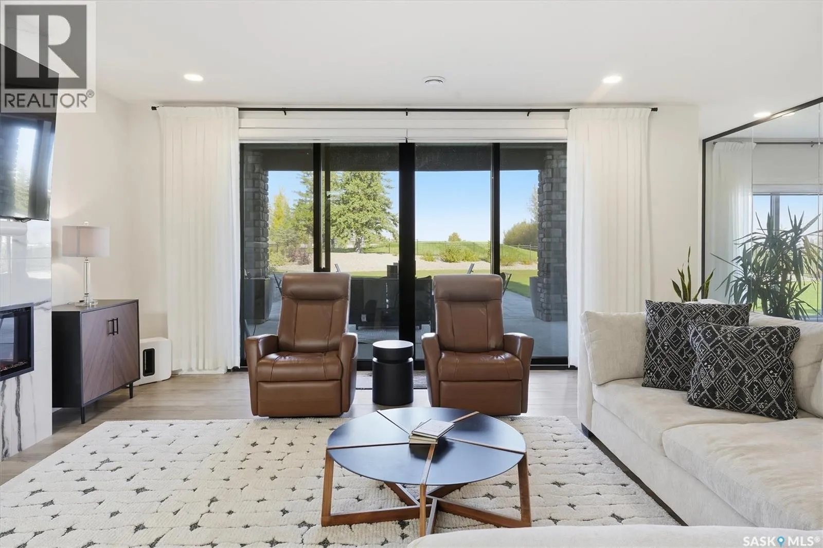Absolute Stunner! Designer custom D&S Homes walkout bungalow, crafted with precision and showcasing an award-winning floor plan. Offering 1,694 sqâ on main plus a fully dev walkout basement, this 4-bed, 3 bath home is set on an expansive 17,000 sq ft lot backing the Greenbryre Golf Course â with no neighbouring homes in sight, only serene views of the course, a landscaped side buffer and open prairie fields. The entry opens into a breathtaking, light-filled great room with ultra-high soaring ceilings and a dramatic feature fireplace. The open-concept living, kitchen, and dining area is an entertainerâs dream, wrapped in oversized windows overlooking the course. The chefâs kitchen features soft-toned lacquer cabinetry with double-height uppers, quartz counters, full-height quartz backsplash, 5-burner gas range, walk thru pantry, a coffee bar, and a massive central island. The connected dining area is spacious enough for large gatherings and opens to a private covered deck for seamless indoor-outdoor entertaining.The main floor also includes a large boot room, a bright office, outfitted laundry room, and a luxurious primary suite complete with a fully tiled spa-style ensuite, walk-in shower, dual vanity, and walk-in. A striking custom staircase leads to the fully dev walkout level, which mirrors the quality of the main floor. This level offers a sprawling family room with a 2nd fireplace, floor to ceiling windows overlooking the show-stopping backyard, a wet bar with wine storage and seating area, and a dramatic full height glass-walled gym. 2 large bedrooms and a full bathroom complete this level. Additional highlights: ⢠Professionally landscaped grounds ⢠Heated double garage ⢠Zoned in-floor boiler plus forced-air furnace ⢠Instant hot water ⢠Central air ⢠Wired for a hot tub ⢠Underground sprinklers, oversized concrete drive A tasteful masterpiece in design and function â this Greenbryre walkout is spectacular in every detail. (id:27476)