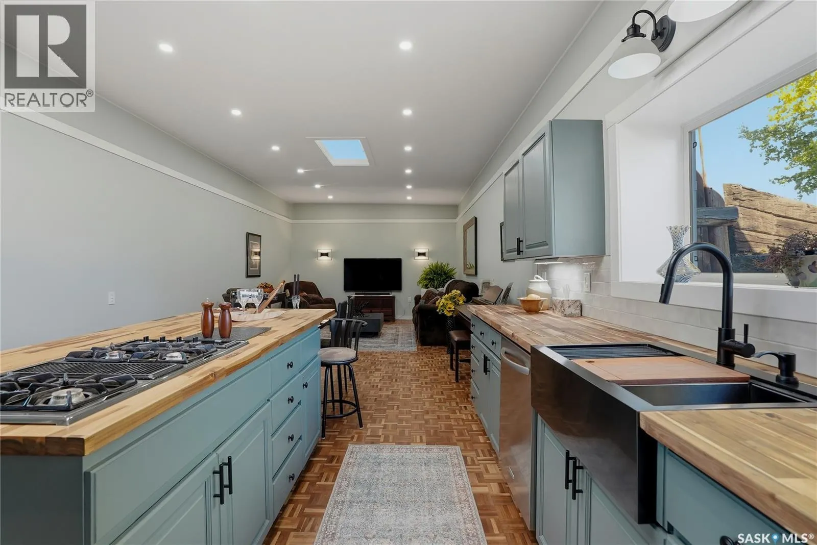 One of a kind acreage at 65 Southwinds Dr in the Hamlet of East Beaver Creek. Tucked seamlessly into the side of a hill, this remarkable earth shelter home is where innovation meets everyday comfort. Built with 14-in thick walls & an 8-in rebarred concrete ceiling, capped with 10 inches of rigid styrofoam & over 3 ft of soil protected by a recent 60mm EPDM rubber membrane (40 yr life span), this home isnât just built to lastâitâs built to thrive. Naturally insulated, whisper-quiet & wheelchair accessible. Set on 10 fully fenced, gated acres with pavement right to the driveway, just 15 minutes from Saskatoon, this property combines rural tranquility with city convenience. The mature shelter belt creates privacy and wind protection, with beautiful treed walking paths around the entire perimeter and buyers will love the huge heated shop, and plenty of space for animals âideal for hobby farmers, or anyone craving space to work and play. Inside, every detail has been beautifully reimagined. The fully remodeled interior opens into a stunning open-concept kitchen, dining, & living area that feels surprisingly bright thanks to thoughtful design and skylights that invite the sun in. Youâll love the parquet floors, beautiful cabinetry, stainless steel appliances & butcher block countertops. The primary suite offers a peaceful retreat with en suite bathroom and is complemented by two additional bedrooms, full main bathroom, and a spacious laundry room. The dbl attached garage provides everyday convenience, while the homeâs construction ensures unmatched comfort. SaskTel fibre optic network is already to the house, ensuring fast & reliable connectivity. The property uses its own well water but municipal water has been brought right up to the house, ready for connection if desired. A perfect balance of innovation & country living, this home defies convention yet fits beautifully into everyday lifeâa one-of-a-kind retreat minutes from Saskatoon. Call your favourite agent to view! (id:27476)