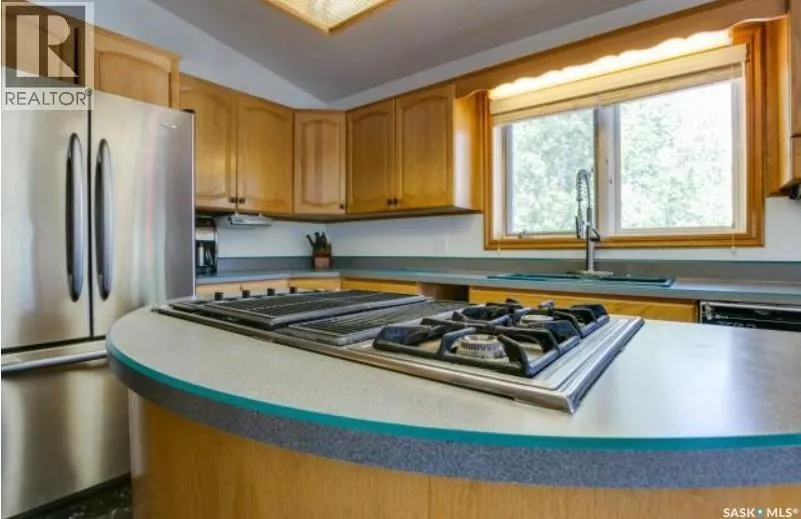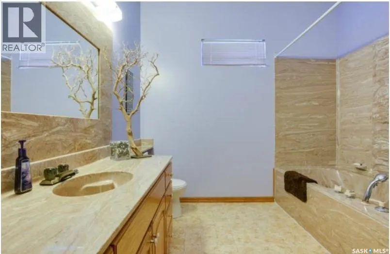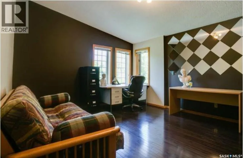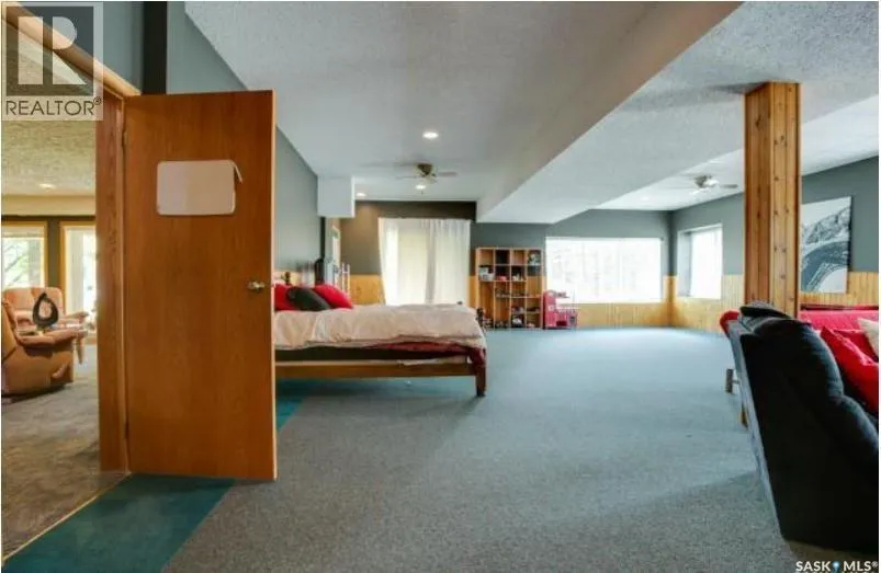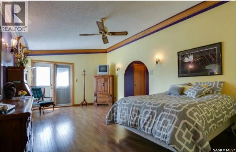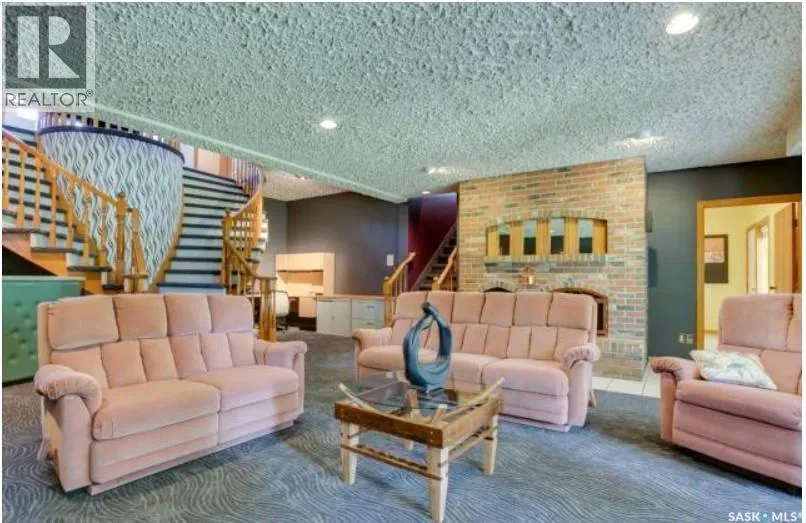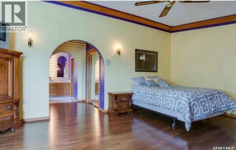 This remarkable estate combines luxurious residential living with expansive potential, offering a total of 9.06 acres. The property includes a 4.6-acre developed residential area with mature landscaping and a 3,447-square-foot walk-out bungalow (excluding the lower level) featuring five bedrooms and five bathrooms. With an open floor plan and formal spaces such as a 16' x 13.9' dining room, a 17' x 22' living room, and a gracious foyer, this home is designed for both comfort and elegance. Additional highlights include two wood-burning fireplaces, a spacious kitchen with an eating area, balconies, covered patio spaces, a double attached garage, a double detached garage, and a greenhouse. The remaining land is a natural lot, adding privacy and beautiful green space surrounding the residence. Additionally, this property offers potential for a zoning shift to commercial use, supported by nearby properties that have successfully made this transition. For those interested in expansion, an additional 5-acre parcel adjacent to the west side of the backyard is available for potential acquisition. This unique 9.06-acre estate, minutes from Saskatoon, offers an ideal blend of private, luxurious living with flexible zoning possibilities. (id:27476)