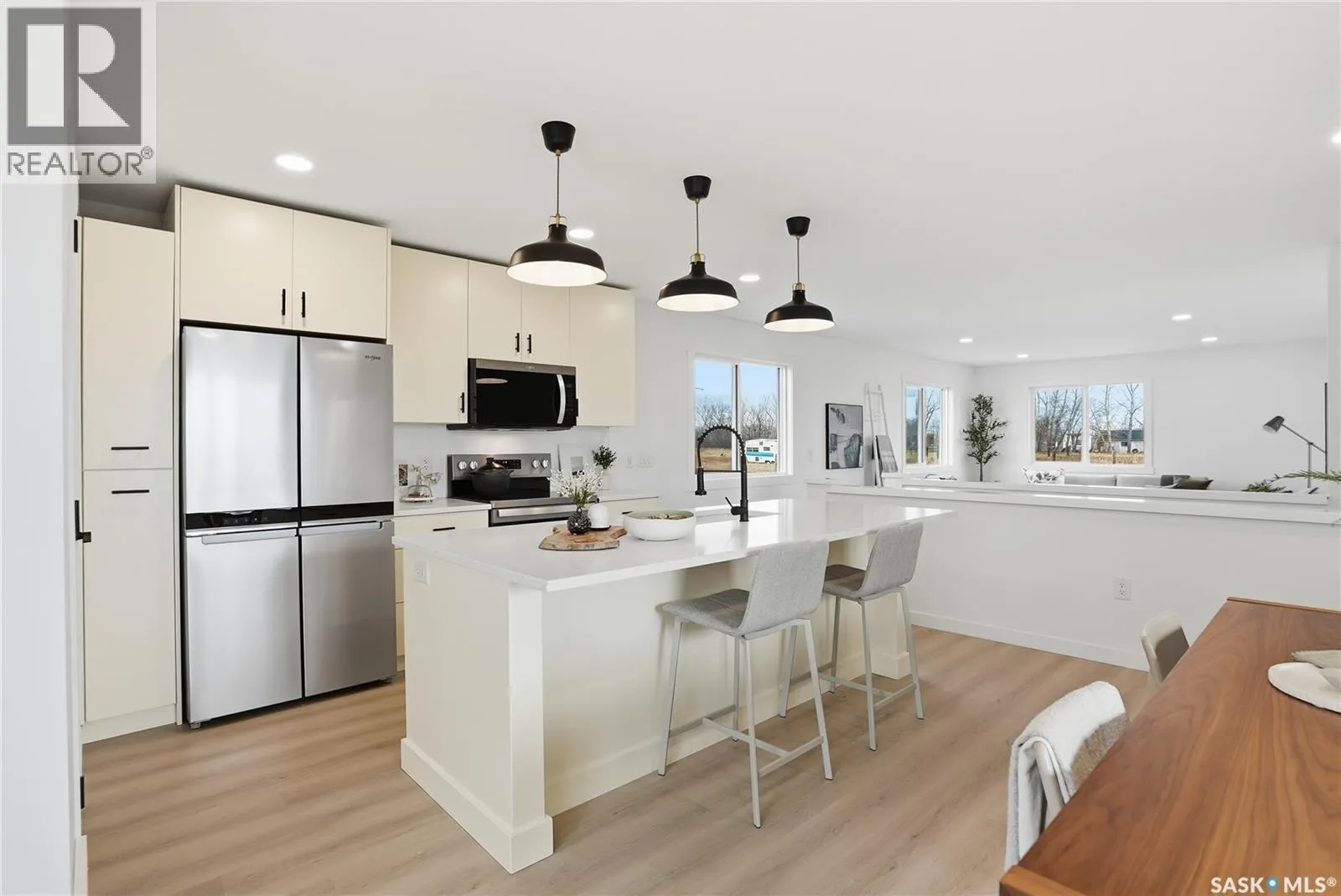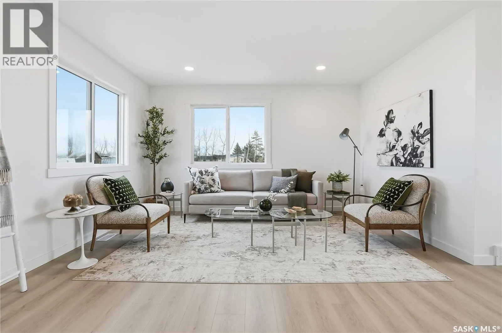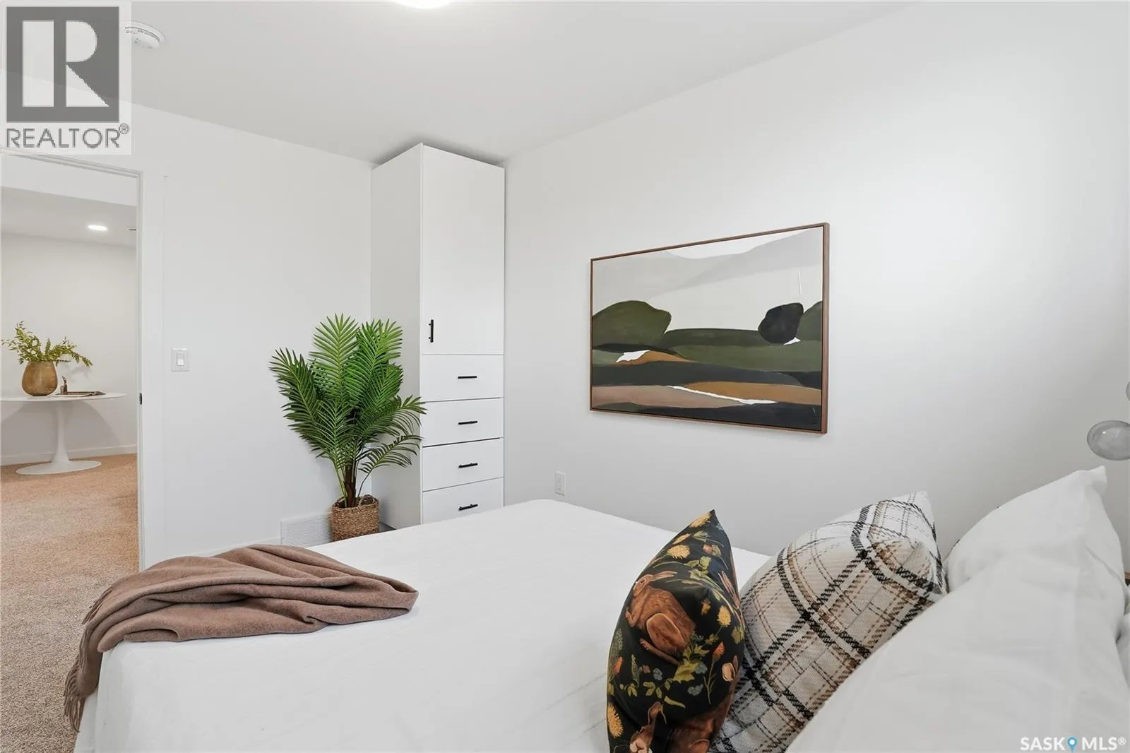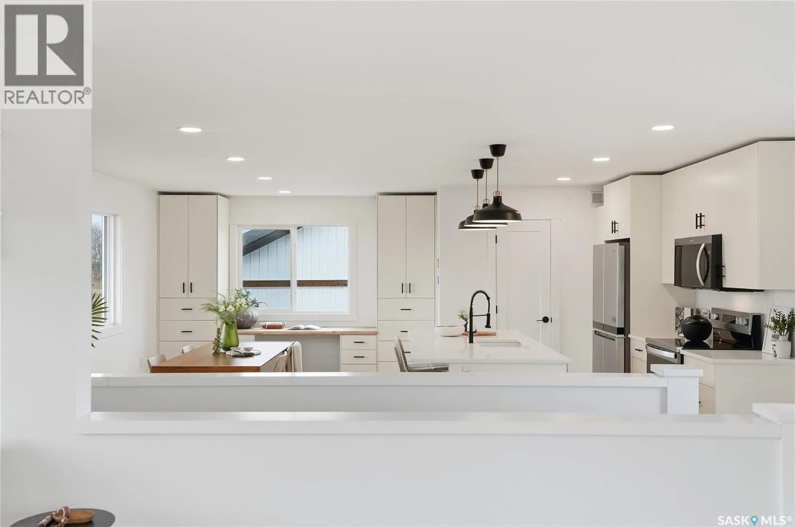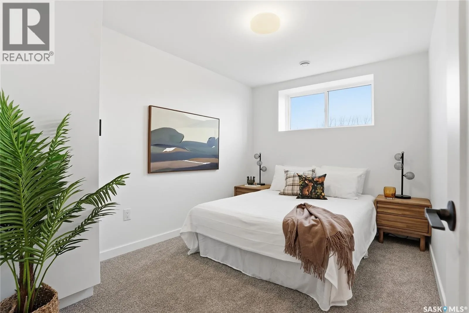 What an Opportunity! Just minutes west of Saskatoonâenjoy peaceful acreage living with city convenience! This newly constructed property sits on 3 acres and offers just over 1,700 sq. ft. of developed space (856 sq. ft. on the main level), featuring 4 beds, two baths, a fully developed basement, and an impressive heated triple detached garage (36â wide with a double overhead door). The home welcomes you home with a charming covered front porch and a functional large foyer complete with a built-in bench and a separate boot room area with floor-to-ceiling wardrobes. The open-concept main floor connects a spacious living room, dining area, and kitchen. The kitchen is a standout, showcasing an abundance of custom lacquer cabinetry, full-height pantry storage, quartz countertops, stainless steel appliances including a microwave hood fan, subway tile backsplash, and an oversized island ideal for large gatherings. The adjacent dining room easily accommodates a large table for the entire family! A convenient two-piece bath completes the main level. An open staircase leads to the bright lower level, which offers four bedrooms (one smallerâideal as a nursery, office, or den), a spacious family-style 4-piece bathroom, and a large walk-in closet in the primary bedroom. Outside, the detached 36â heated and insulated garage is a dream setupâcomplete with a workshop area and a double overhead door. The yard is unlandscaped but cleared and ready for your personal designâbring your garden plans and your green thumb. Property is built by a reputable experience Saskatoon builder. (id:27476)