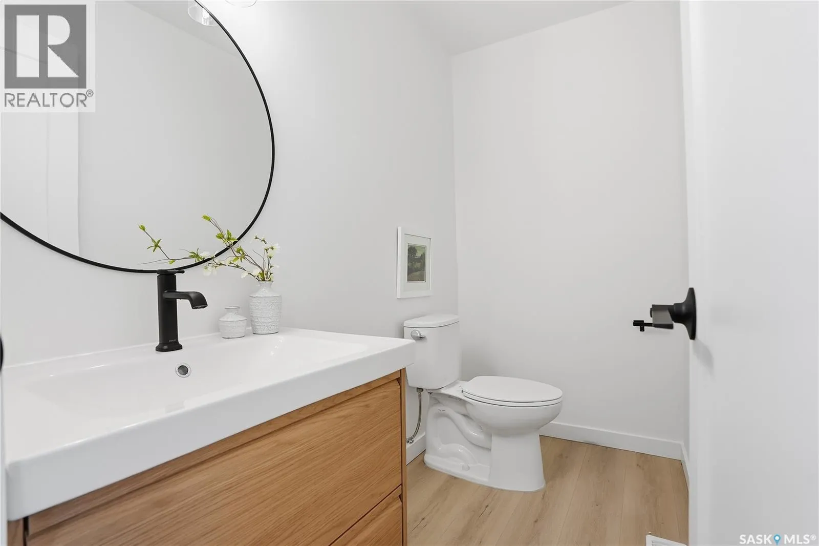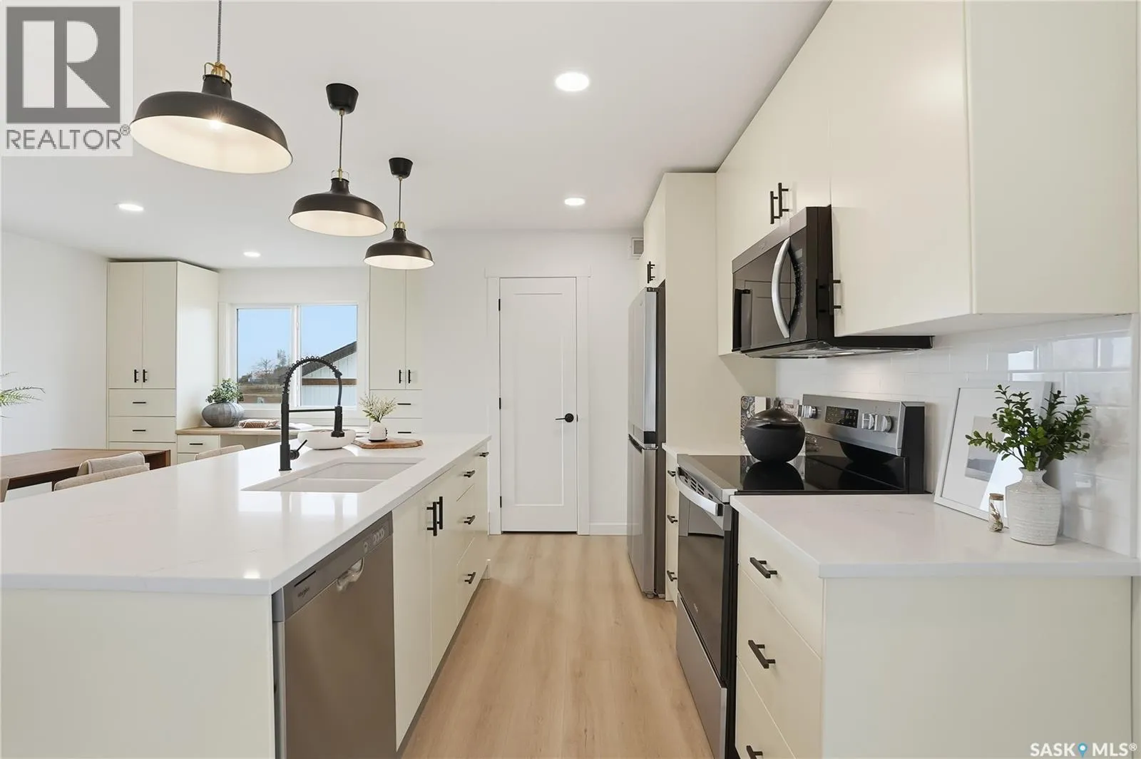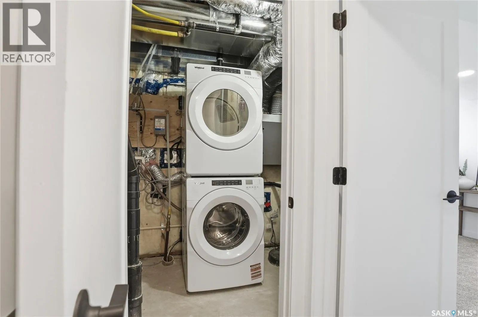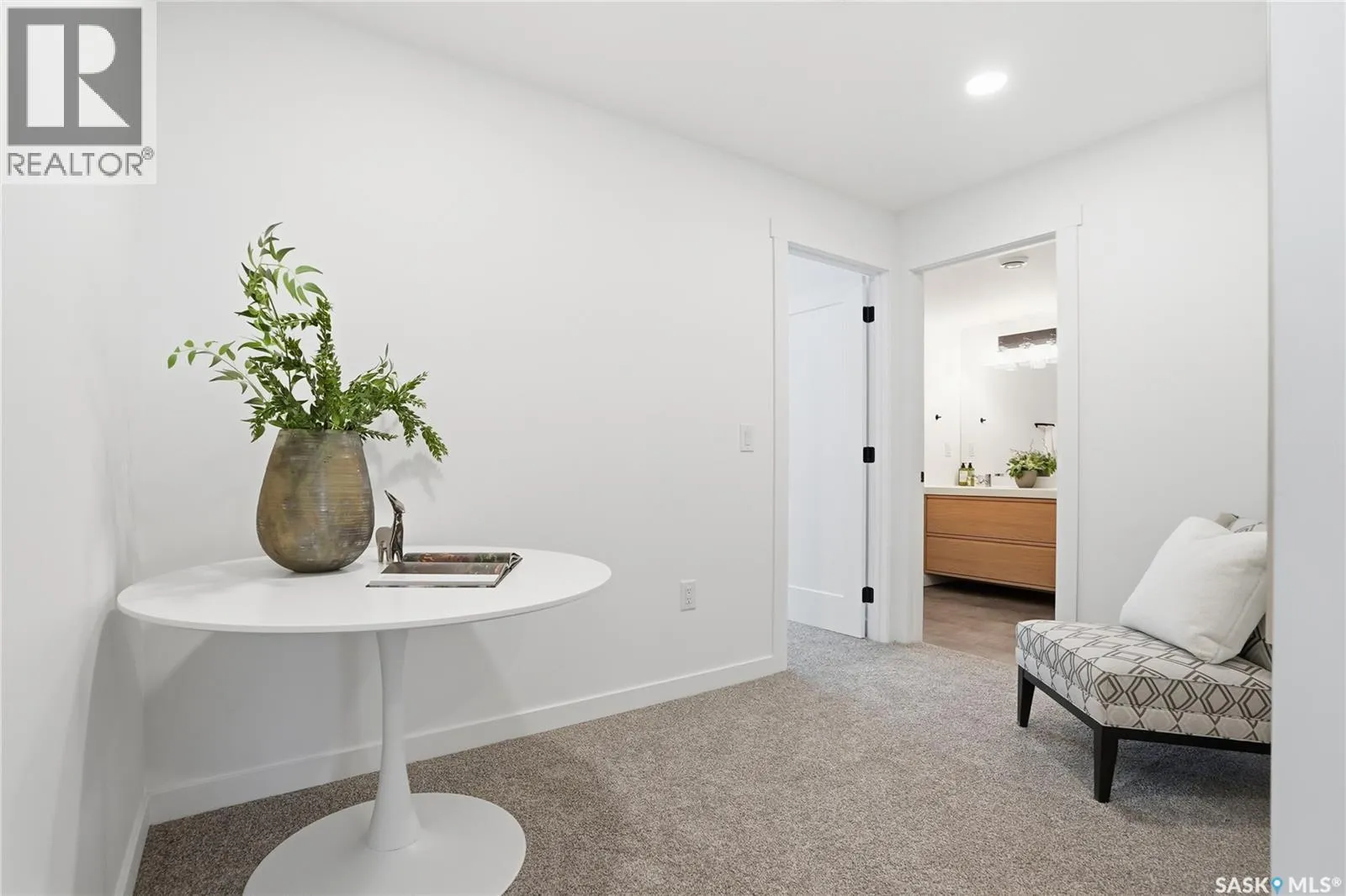 What an Opportunity! Just minutes west of Saskatoonâenjoy peaceful acreage living with city convenience! This newly constructed property sits on 3 acres and offers just over 1,700 sq. ft. of developed space (856 sq. ft. on the main level), featuring 4 beds, two baths, a fully developed basement, and an impressive heated triple detached garage (36â wide with a double overhead door). The home welcomes you home with a charming covered front porch and a functional large foyer complete with a built-in bench and a separate boot room area with floor-to-ceiling wardrobes. The open-concept main floor connects a spacious living room, dining area, and kitchen. The kitchen is a standout, showcasing an abundance of custom lacquer cabinetry, full-height pantry storage, quartz countertops, stainless steel appliances including a microwave hood fan, subway tile backsplash, and an oversized island ideal for large gatherings. The adjacent dining room easily accommodates a large table for the entire family! A convenient two-piece bath completes the main level. An open staircase leads to the bright lower level, which offers four bedrooms (one smallerâideal as a nursery, office, or den), a spacious family-style 4-piece bathroom, and a large walk-in closet in the primary bedroom. Outside, the detached 36â heated and insulated garage is a dream setupâcomplete with a workshop area and a double overhead door. The yard is unlandscaped but cleared and ready for your personal designâbring your garden plans and your green thumb. Property is built by a reputable experience Saskatoon builder. (id:27476)