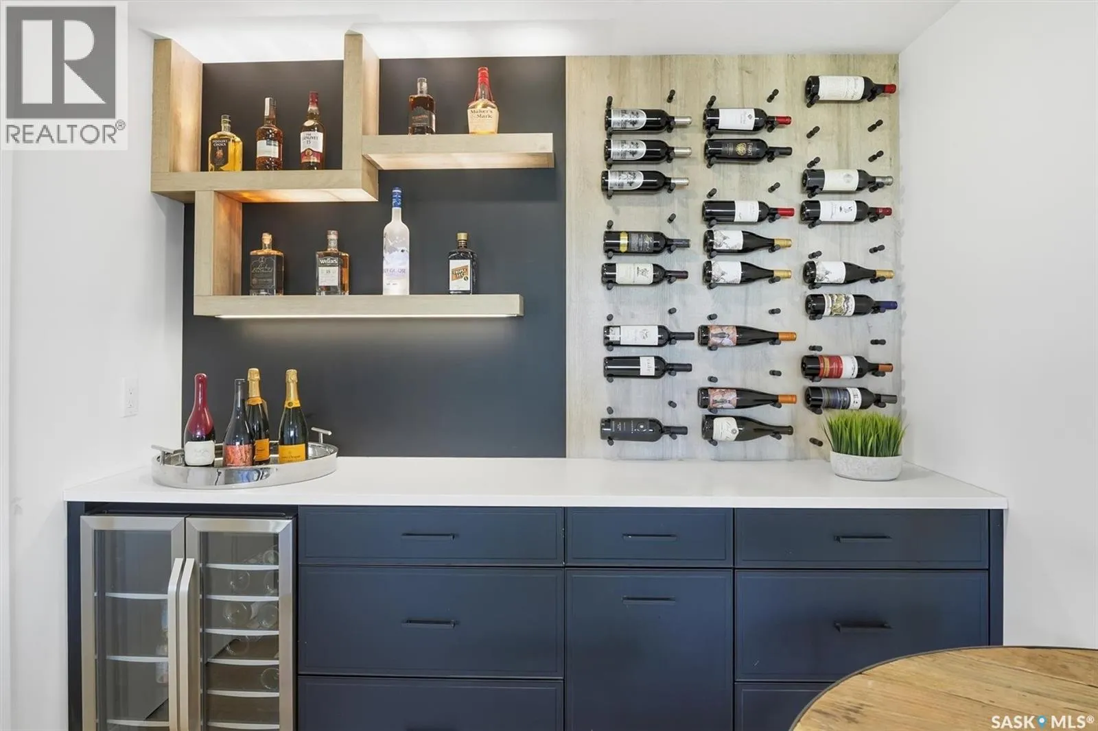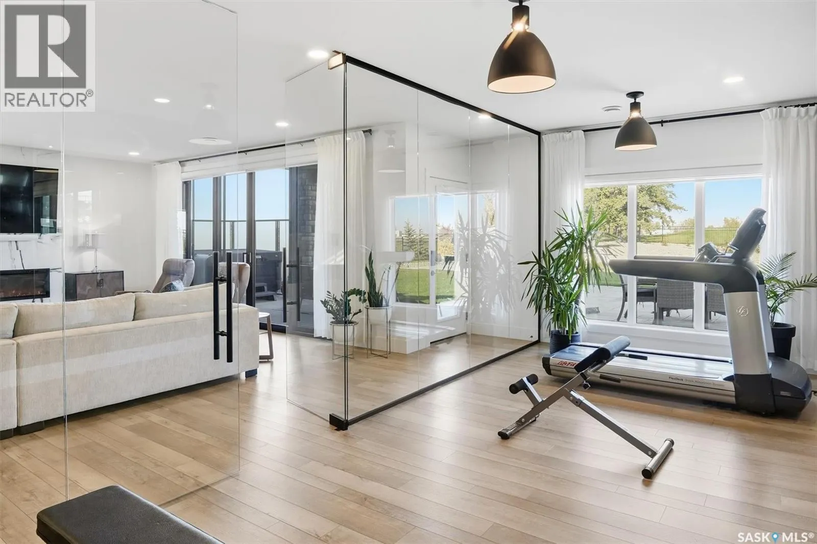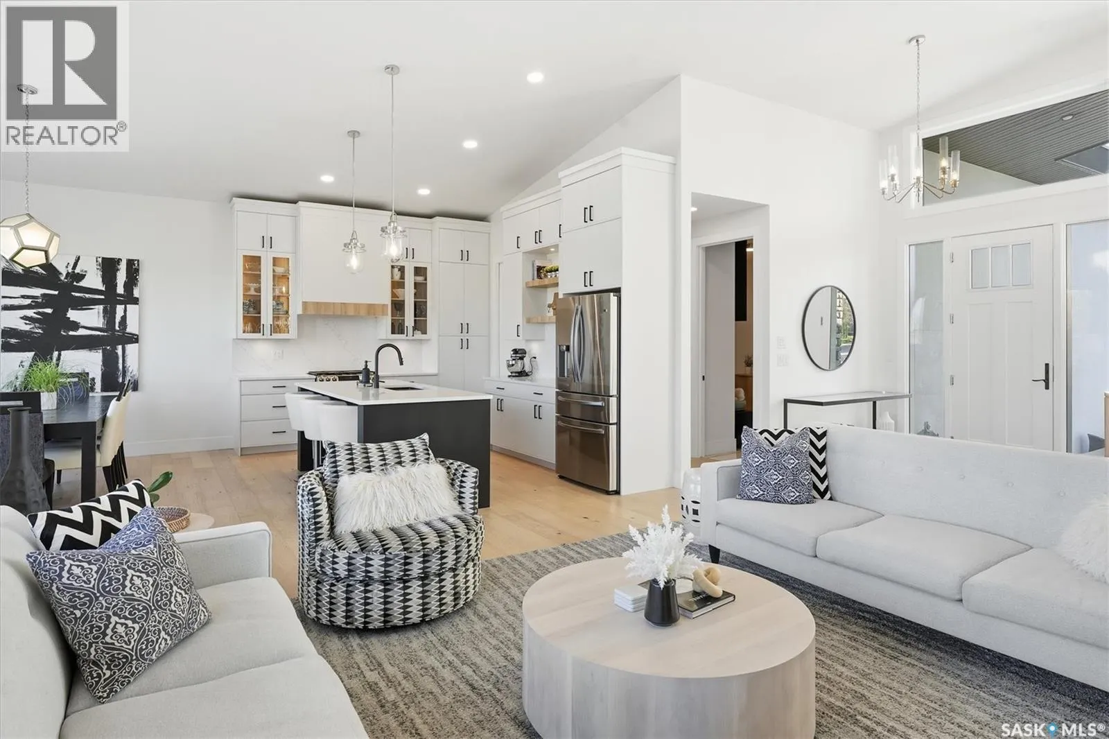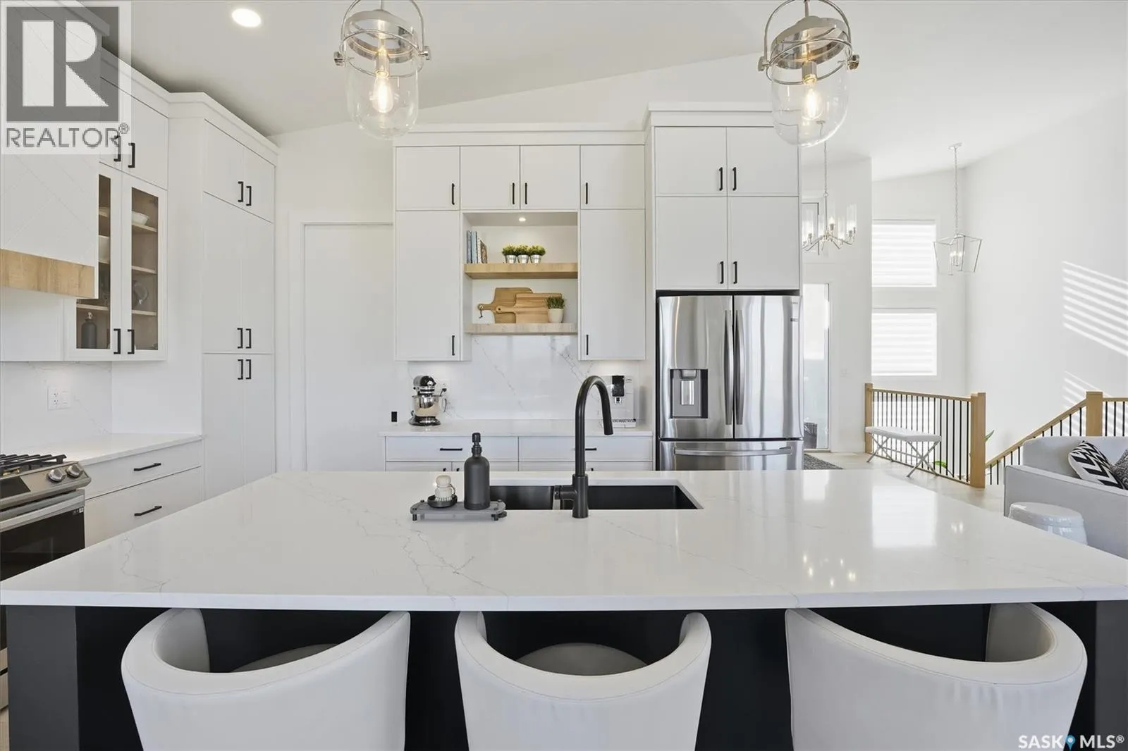 Absolute Stunner! Designer custom D&S Homes walkout bungalow, crafted with precision and showcasing an award-winning floor plan. Offering 1,694 sq ft on main plus a fully dev walkout basement, this 4-bed, 3 bath home is set on an expansive 17,000 sq ft lot backing the Greenbryre Golf Course â with no neighbouring homes in sight, only serene views of the course, a landscaped side buffer and open prairie fields. The entry opens into a breathtaking, light-filled great room with ultra-high soaring ceilings and a dramatic feature fireplace. The open-concept living, kitchen, and dining area is an entertainerâs dream, wrapped in oversized windows overlooking the course. The chefâs kitchen features soft-toned lacquer cabinetry with double-height uppers, quartz counters, full-height quartz backsplash, 5-burner gas range, walk thru pantry, a coffee bar, and a massive central island. The connected dining area is spacious enough for large gatherings and opens to a private covered deck for seamless indoor-outdoor entertaining.The main floor also includes a large boot room, a bright office, outfitted laundry room, and a luxurious primary suite complete with a fully tiled spa-style ensuite, walk-in shower, dual vanity, and walk-in. A striking custom staircase leads to the fully dev walkout level, which mirrors the quality of the main floor. This level offers a sprawling family room with a 2nd fireplace, floor to ceiling windows overlooking the show-stopping backyard, a wet bar with wine storage and seating area, and a dramatic full height glass-walled gym. 2 large bedrooms and a full bathroom complete this level. Additional highlights: ⢠Professionally landscaped grounds ⢠Heated double garage ⢠Zoned in-floor boiler plus forced-air furnace ⢠Instant hot water ⢠Central air ⢠Wired for a hot tub ⢠Underground sprinklers, oversized concrete drive A tasteful masterpiece in design and function â this Greenbryre walkout is spectacular in every detail. (id:27476)