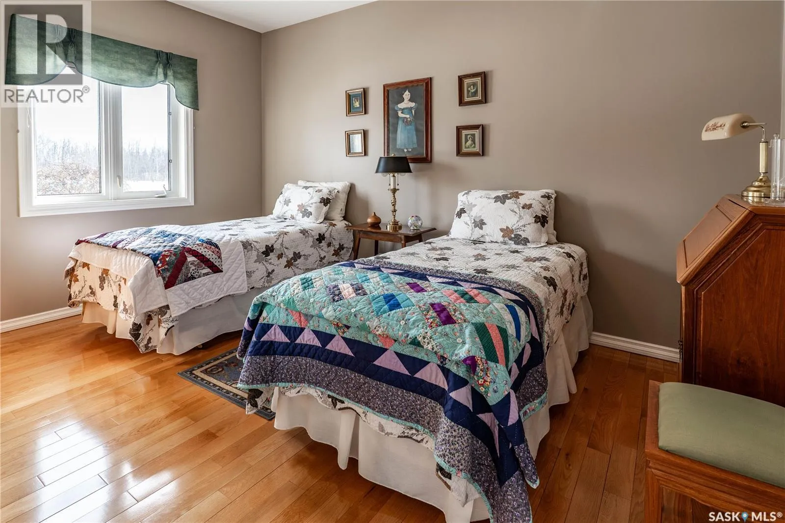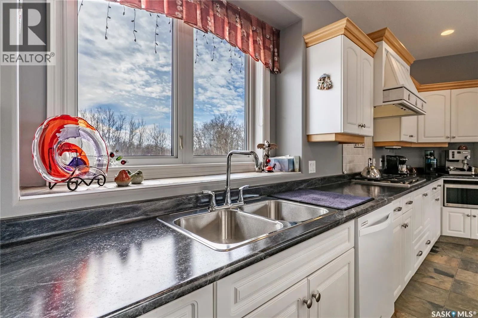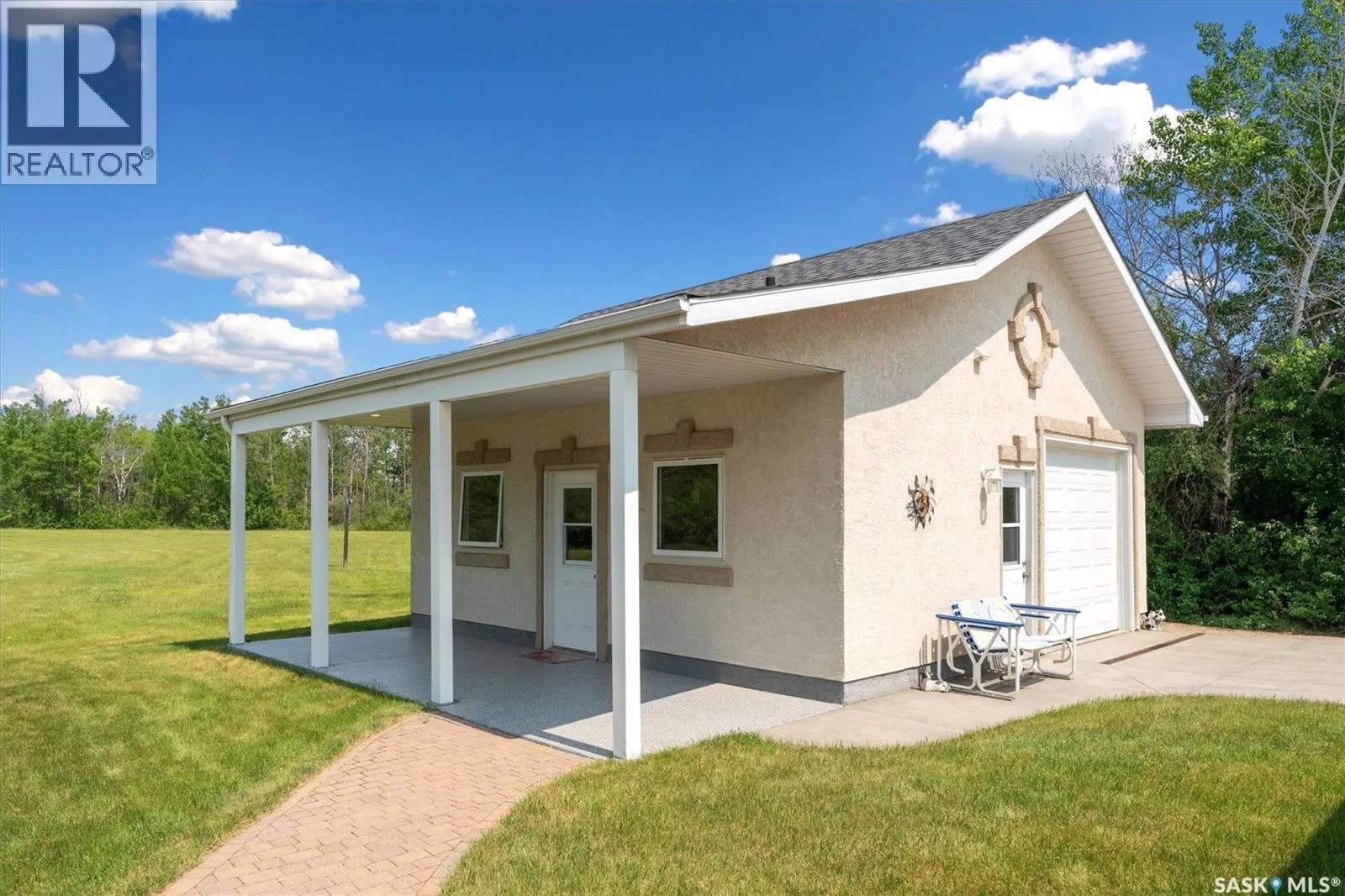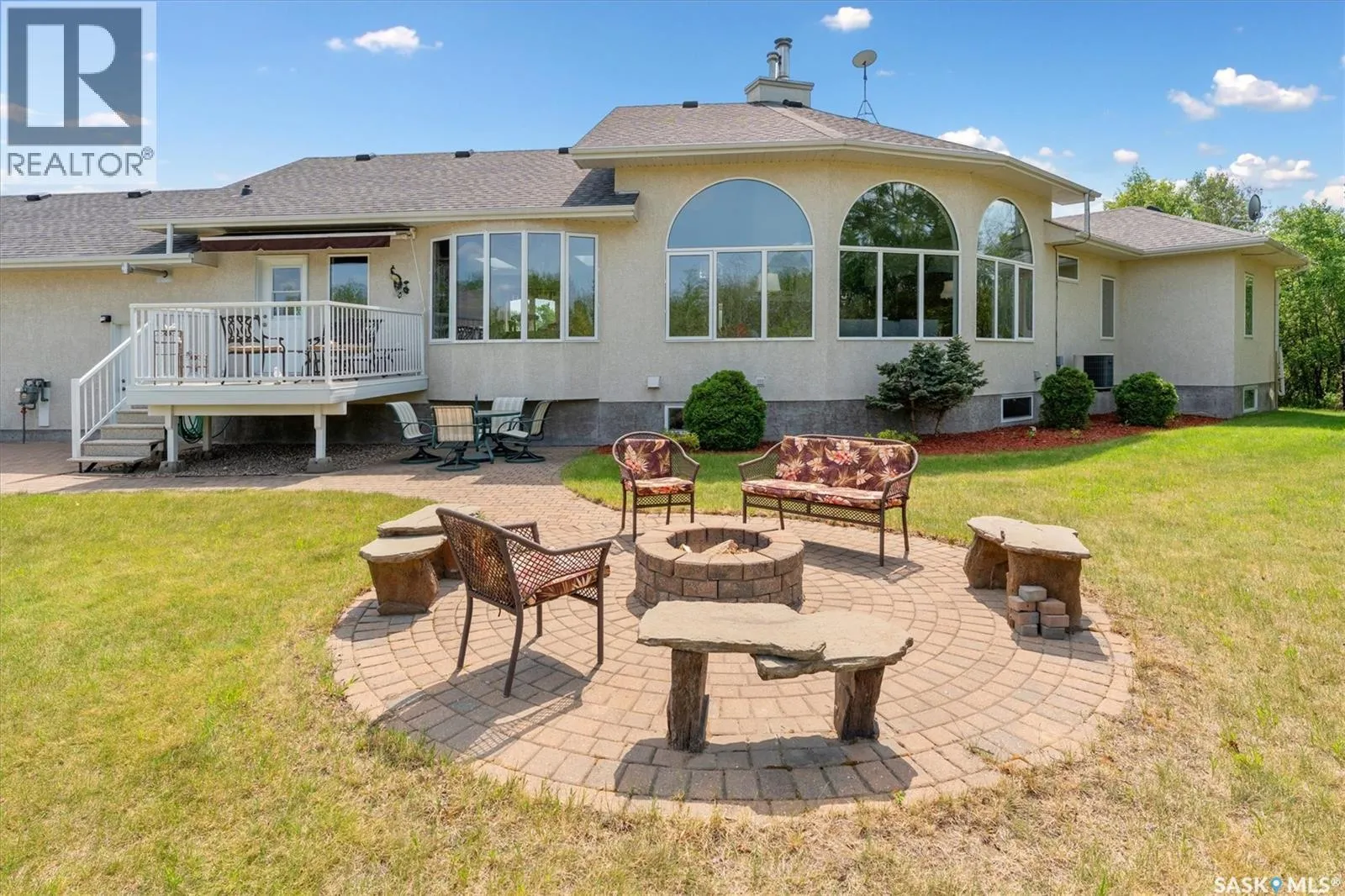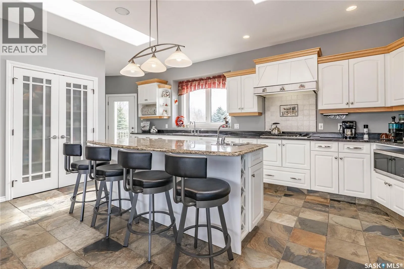 SE 07-36-04 W of 3rd Welcome to The Meadow, 80 acres of pure serenity on the southeast doorstep of Saskatoon. This peaceful paradise offers the privacy and tranquility of country living, just minutes from Costco and Greenbryre Golf & Country Club. This sprawling, custom-built Ehrenburg bungalow is designed for comfort, beauty, and connection to the nature. The grand front entry welcomes you with soaring vaulted ceilings and a sweeping sense of space. The centerpiece of the great room is a stunning wood-burning fireplace, creating a warm, inviting atmosphere enhanced by floor-to-ceiling windows that frame breathtaking views of the wilderness waiting for you out your back door. White oak hardwood gleams throughout the main floor, paired with slate tile in the foyer and kitchen. The spacious kitchen features a large 8-foot granite island, gas stove, built in oven, ample cupboard space, and easy flow into a turret-shaped sun porchâperfect for morning coffee or sunny, lazy afternoons. This south-facing gem is flooded with natural light and designed to make the most of every season. The main floor also includes laundry, three well-appointed bathrooms, and three bedrooms. The primary bedroom offers a peaceful retreat, complete with a three-piece ensuite and a private turret-shaped sunroom for year-round quiet moments of rest and reflection. Additional features include a heated double attached garage and a wide single detached garage with shower and bathroom facilitiesâan ideal workshop with ample space for storage and tons of room for any project. The full basement is ready for your custom development, with in-floor heating lines already roughed in. Whether you're looking to raise a family, escape the city, or simply enjoy life in harmony with nature, The Meadow delivers the best of all worldsâprivacy, space, and proximity to everything you need. Must be experienced to be fully appreciated. Call your favourite Realtor® to arrange a private viewing today! (id:27476)