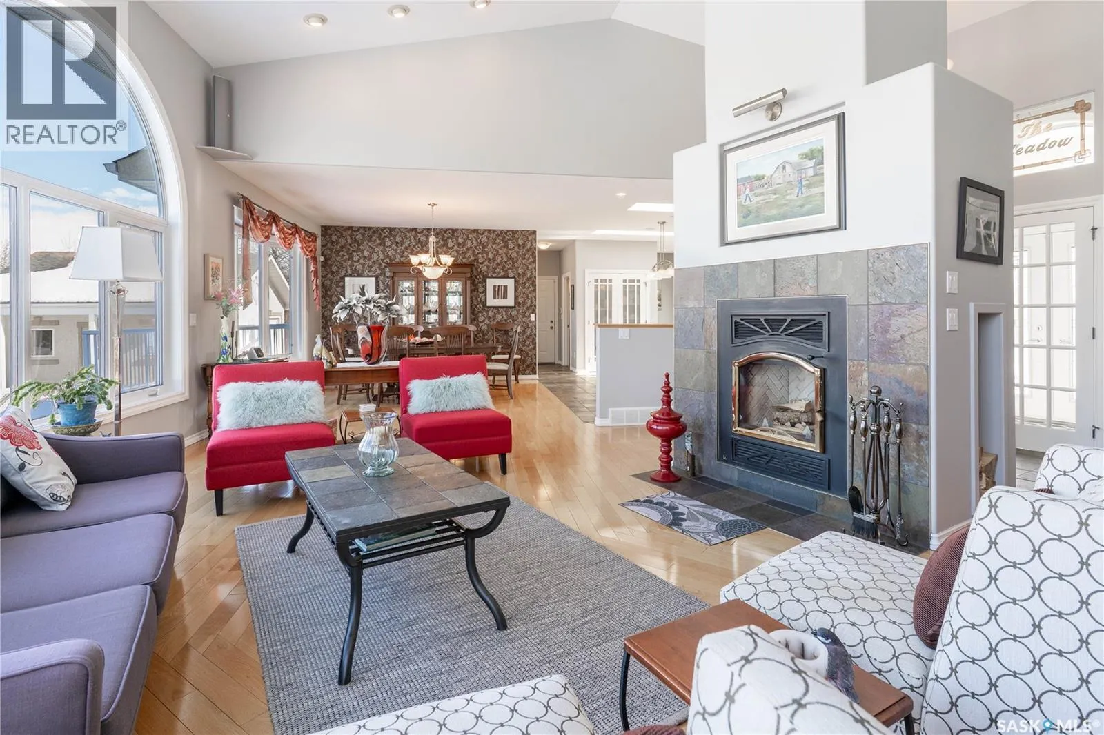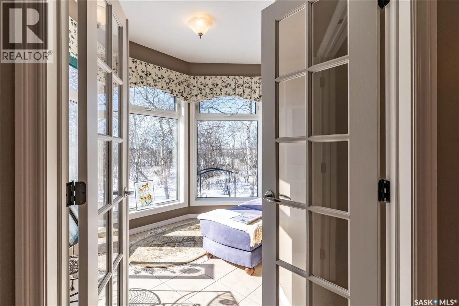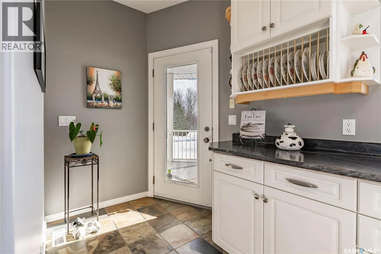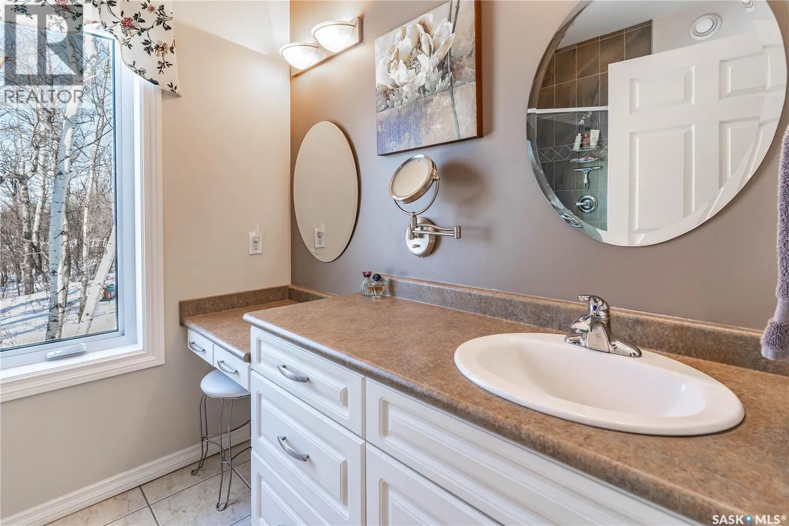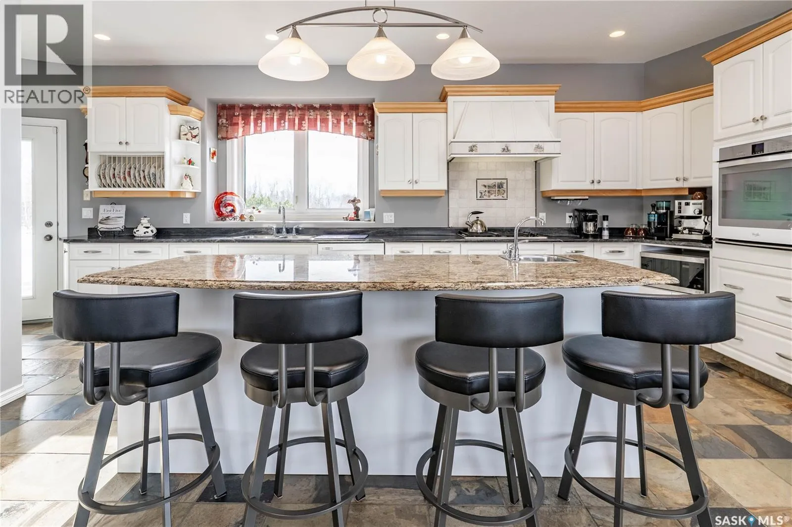 SE 07-36-04 W of 3rd Welcome to The Meadow, 80 acres of pure serenity on the southeast doorstep of Saskatoon. This peaceful paradise offers the privacy and tranquility of country living, just minutes from Costco and Greenbryre Golf & Country Club. This sprawling, custom-built Ehrenburg bungalow is designed for comfort, beauty, and connection to the nature. The grand front entry welcomes you with soaring vaulted ceilings and a sweeping sense of space. The centerpiece of the great room is a stunning wood-burning fireplace, creating a warm, inviting atmosphere enhanced by floor-to-ceiling windows that frame breathtaking views of the wilderness waiting for you out your back door. White oak hardwood gleams throughout the main floor, paired with slate tile in the foyer and kitchen. The spacious kitchen features a large 8-foot granite island, gas stove, built in oven, ample cupboard space, and easy flow into a turret-shaped sun porchâperfect for morning coffee or sunny, lazy afternoons. This south-facing gem is flooded with natural light and designed to make the most of every season. The main floor also includes laundry, three well-appointed bathrooms, and three bedrooms. The primary bedroom offers a peaceful retreat, complete with a three-piece ensuite and a private turret-shaped sunroom for year-round quiet moments of rest and reflection. Additional features include a heated double attached garage and a wide single detached garage with shower and bathroom facilitiesâan ideal workshop with ample space for storage and tons of room for any project. The full basement is ready for your custom development, with in-floor heating lines already roughed in. Whether you're looking to raise a family, escape the city, or simply enjoy life in harmony with nature, The Meadow delivers the best of all worldsâprivacy, space, and proximity to everything you need. Must be experienced to be fully appreciated. Call your favourite Realtor® to arrange a private viewing today! (id:27476)