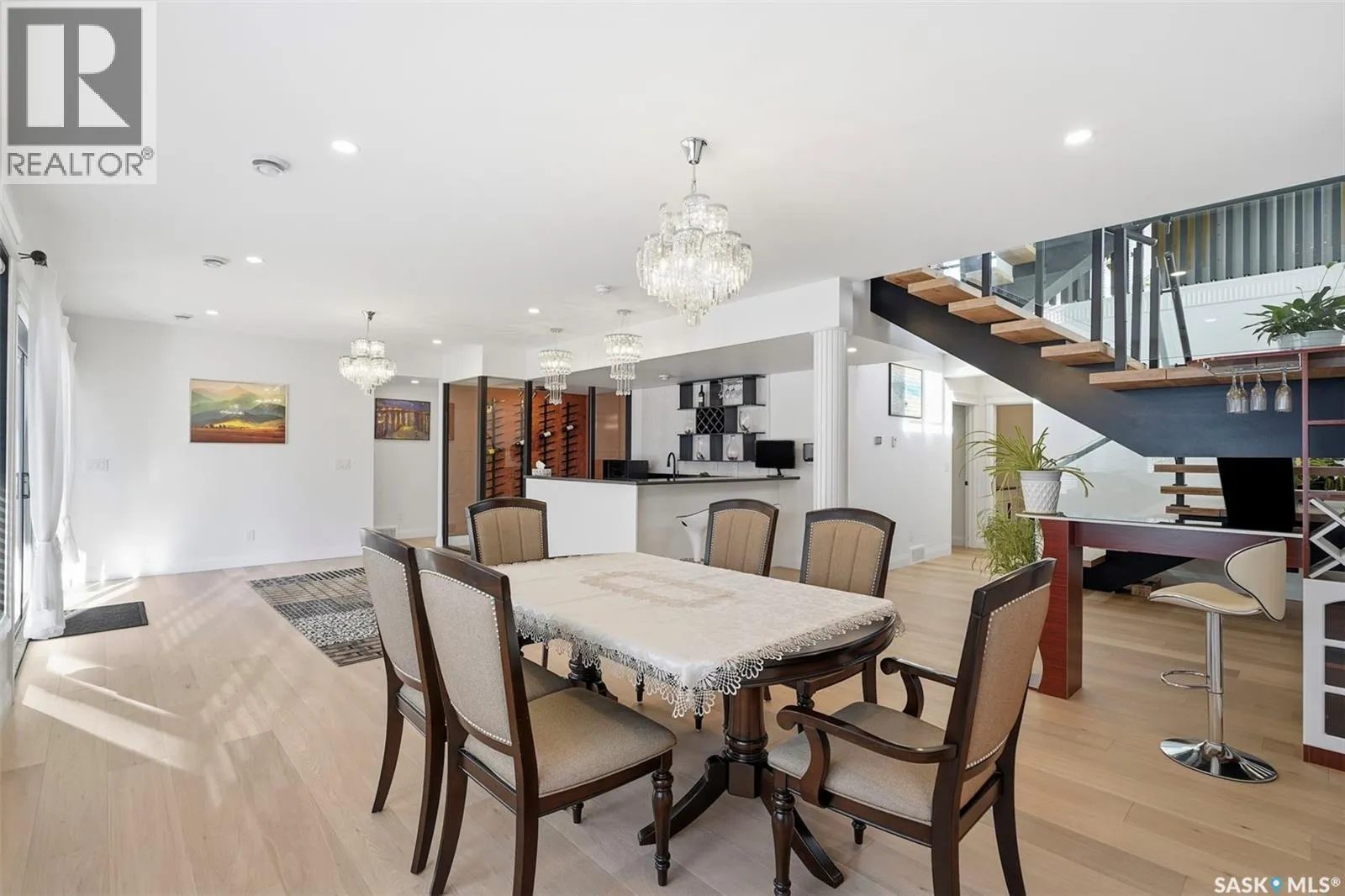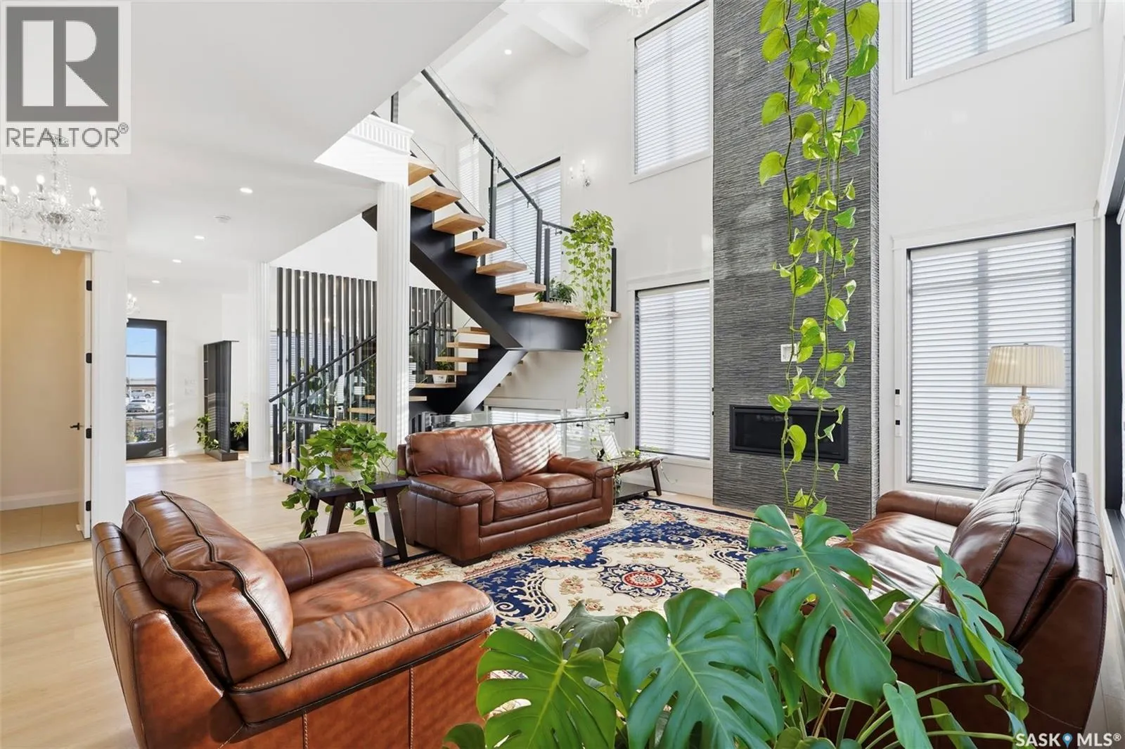 Welcome to 529 Greenbryre Bendâan exceptional walkout estate in prestigious Greenbryre Estates. Blending luxury, comfort, and modern design, this stunning home backs onto a private yard with breathtaking sunset views and abundant natural light. The main floor showcases 10-foot ceiling, expansive windows, and elegant open-concept layout. A spacious foyer leads to a den/office. The impressive living room features 22-foot soaring ceiling, gas fireplace, and panoramic views of the beautifully xeriscaped backyard. The chefâs kitchen offers floor-to-ceiling custom cabinetry, marble countertops, tile backsplash, and premium built-in Bosch appliances, complemented by a fully equipped spice kitchen with gas stove. The generous dining area opens to a covered back deck. A custom wood floating staircase with solid oak treads and glass railing leads to the upper level, highlighted by 9-foot coffered ceilings. Three spacious bedrooms each include a walk-in closet and private ensuite. A bonus room and balcony add flexible living space. The primary suite is a private retreat with electric fireplace, expansive walk-in closet with granite island, and luxurious 5-piece ensuite featuring a soaking tub, dual sinks, and premium finishes. The walkout basement offers abundant natural light, a spacious family room, luxury wine cellar, two additional bedrooms, and a spa-inspired bathroom with sauna. Premium engineered flooring and in-floor heating enhance comfort. The low-maintenance backyard features a patio and artificial turf for year-round enjoyment. Additional highlights include marble tile at the entry, marble feature walls, in-floor heating in basement and garage, triple attached garage with 5â7 car driveway, motorized blinds, custom full-height tiled bathrooms, designer lighting with crystal chandeliers, and natural Golden Sesame granite with custom stone exterior coping. This extraordinary home showcases exceptional craftsmanship, thoughtful design, and luxury finishes throughout. (id:27476)