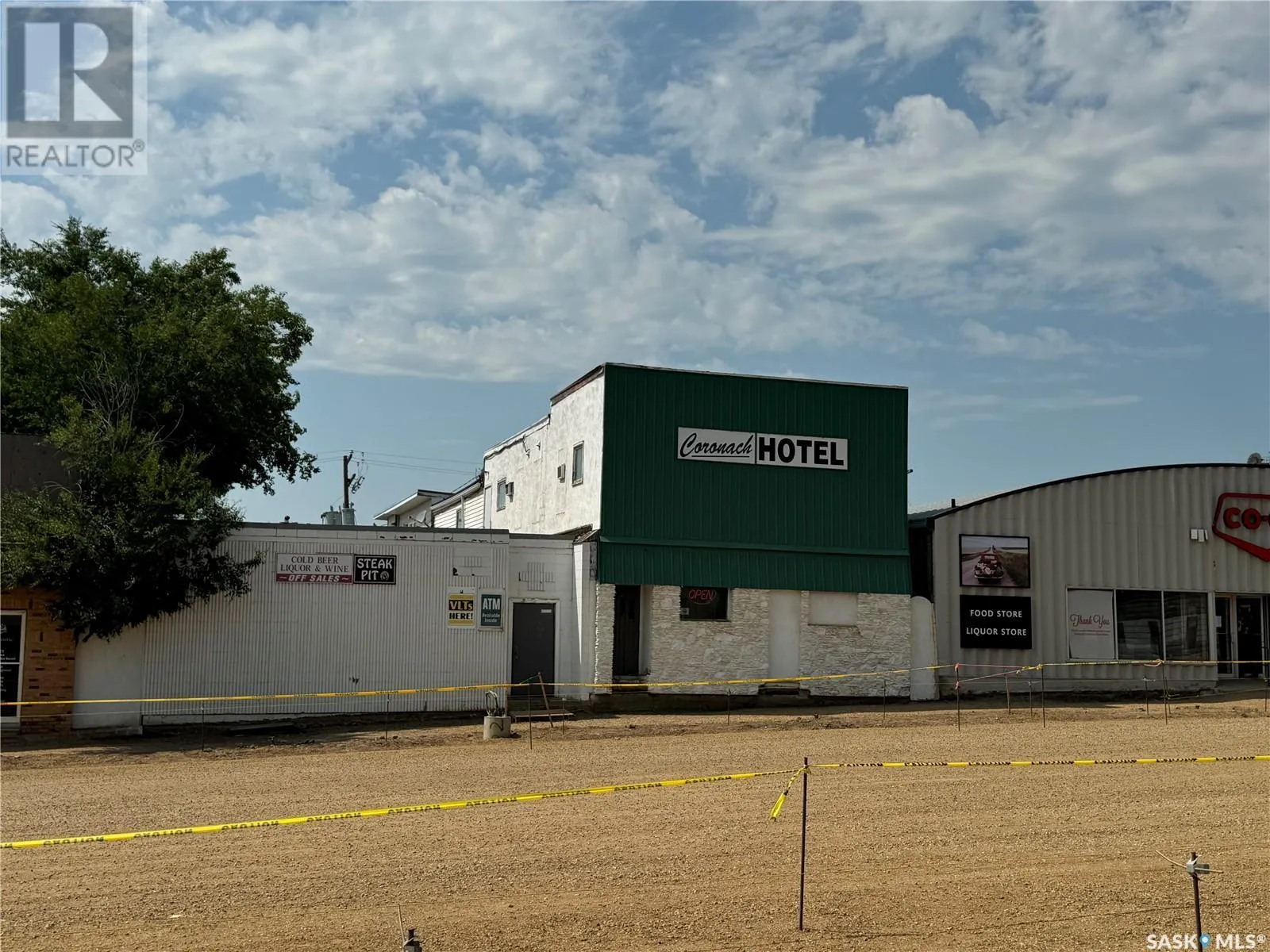 The Coronach Hotel is situated on Main Street in Coronach. Located in close proximity to the US border and the Poplar River Mine and Power Station, this 162 seat hotel features a , pool table, dance floor, Off Sale, 8 VLT's, ATM, big screen TV and a large open area for food and beverage. Each of the 4 hotel rooms have their own 3 piece bathroom and are accessible with a separate entrance. Large living quarters on the upper floor. Part of the hotel has a metal roof. Shutdown at Poplar River happens regularily and greatly increases traffic. This property is priced right to sell quickly. Contact for financial information and further details available to serious buyers. New walk in cooler. Upgraded eavestroughing. This is a great business in a busy town. Check it out! (id:27476)