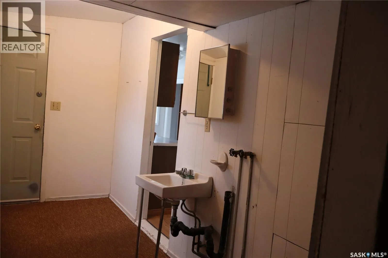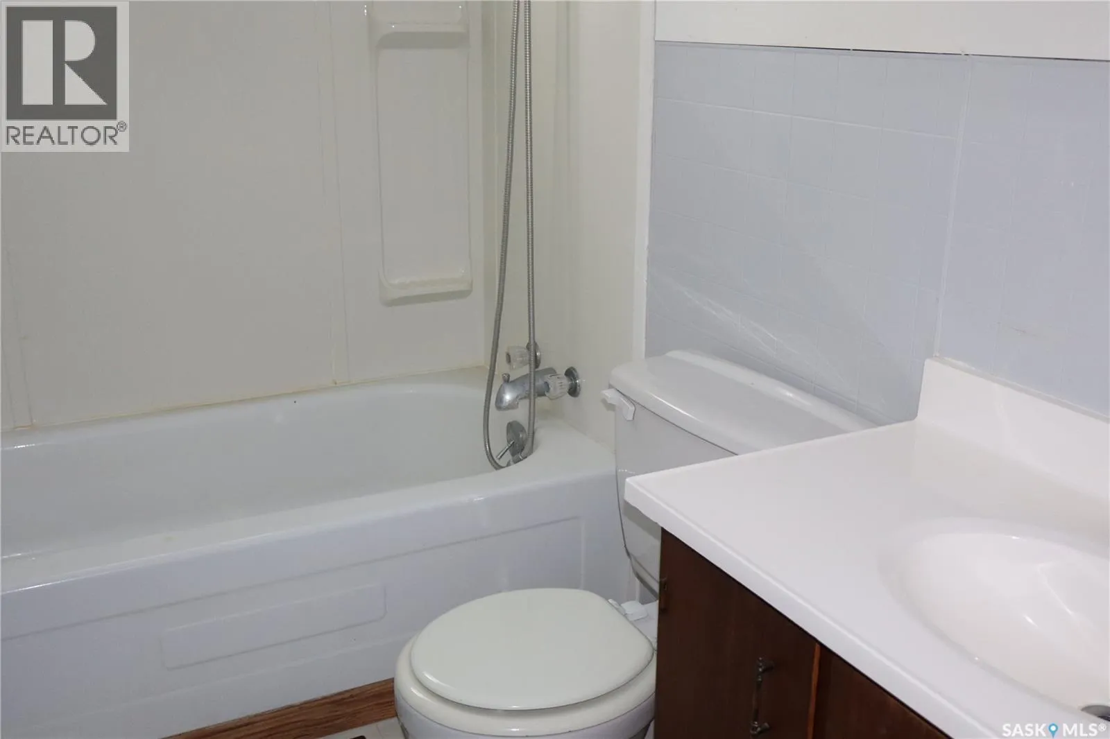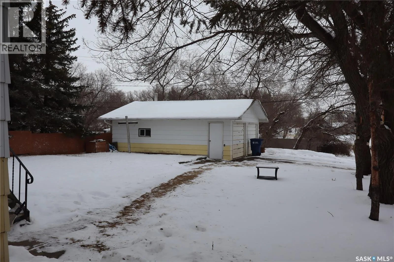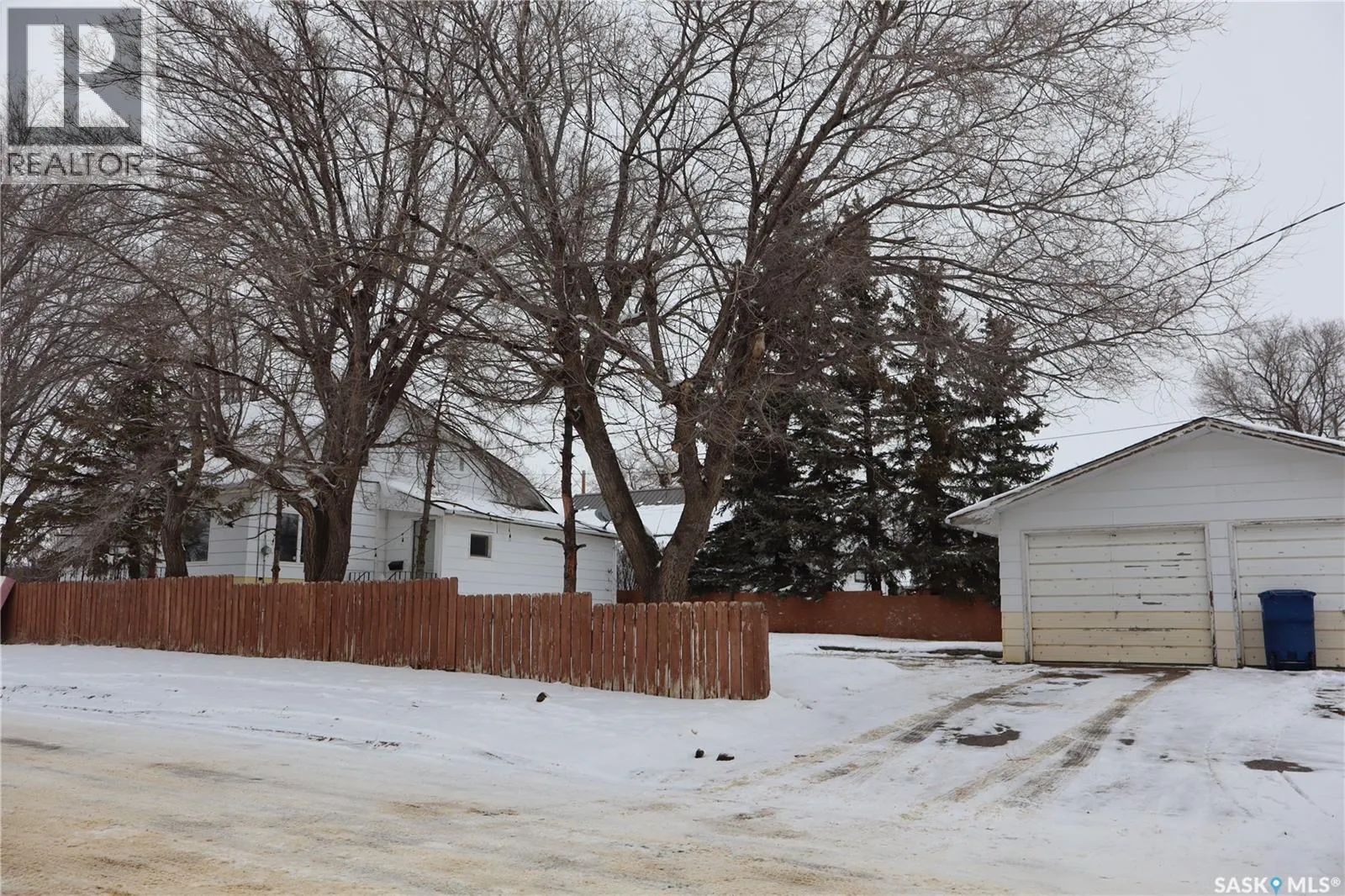 Situated in the Town of Coronach, this well-maintained family residence offers a desirable location. The main floor features a spacious area with two bedrooms and a full bathroom. The kitchen is equipped with oak cabinetry, and all windows have been upgraded. A heated porch provides main floor laundry facilities and a storage room. The upper level contains two additional bedrooms. While the basement remains unfinished, it houses the furnace, water softener, and water heater. The property boasts a tastefully landscaped yard and includes a heated double detached garage with new shingles. This home provides generous living space and has been carefully maintained. All appliances and most furnishings are included in the offering (id:27476)