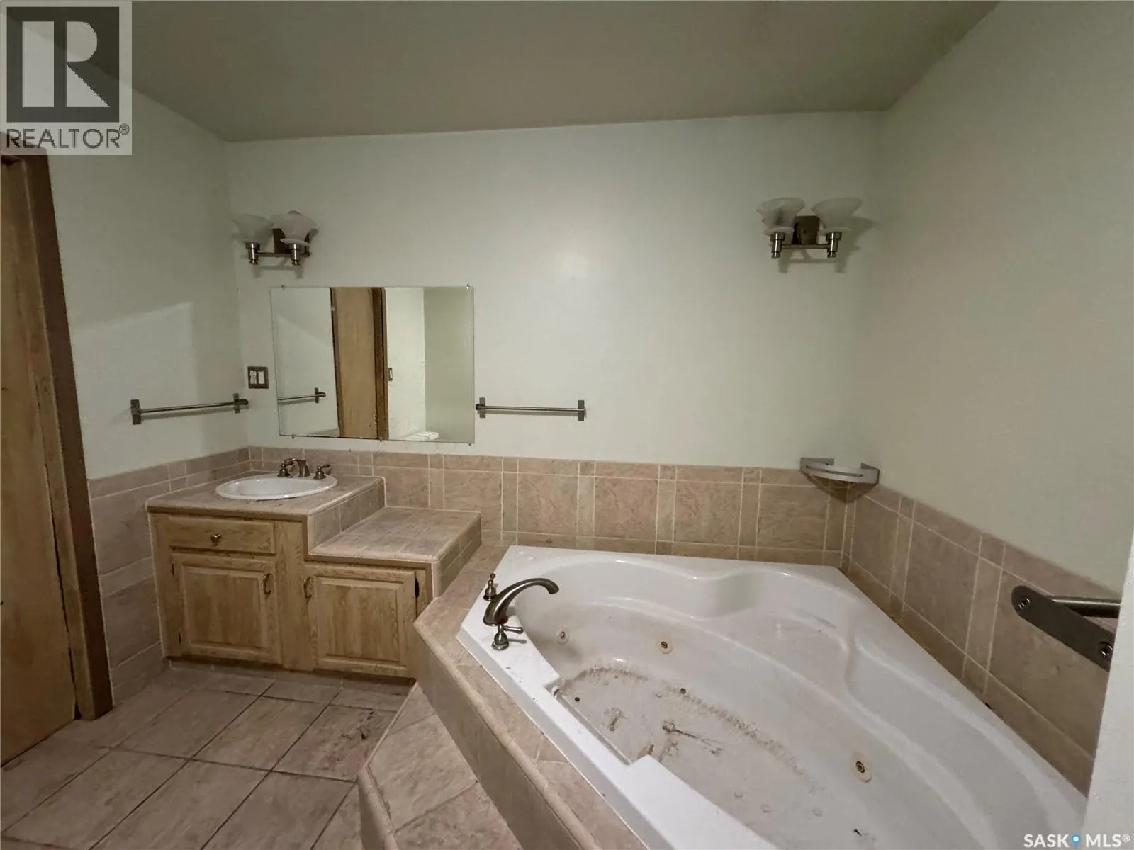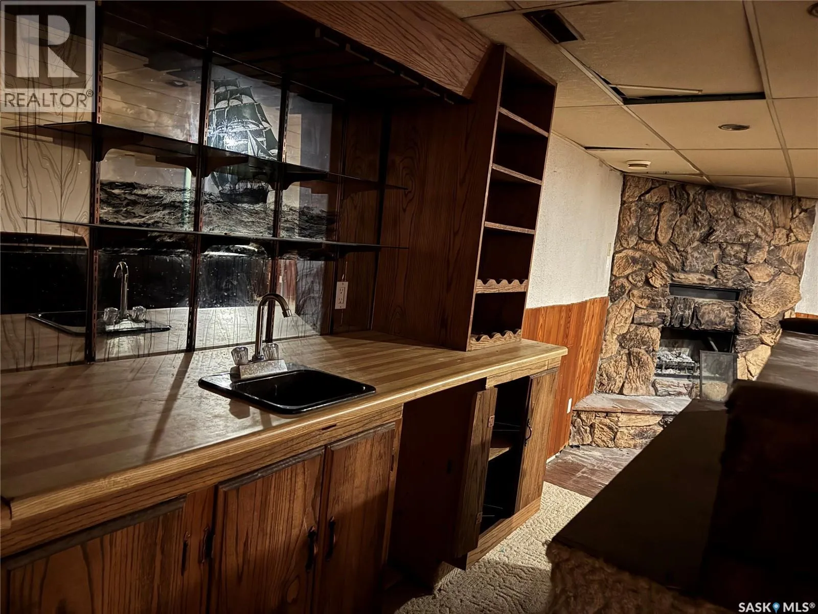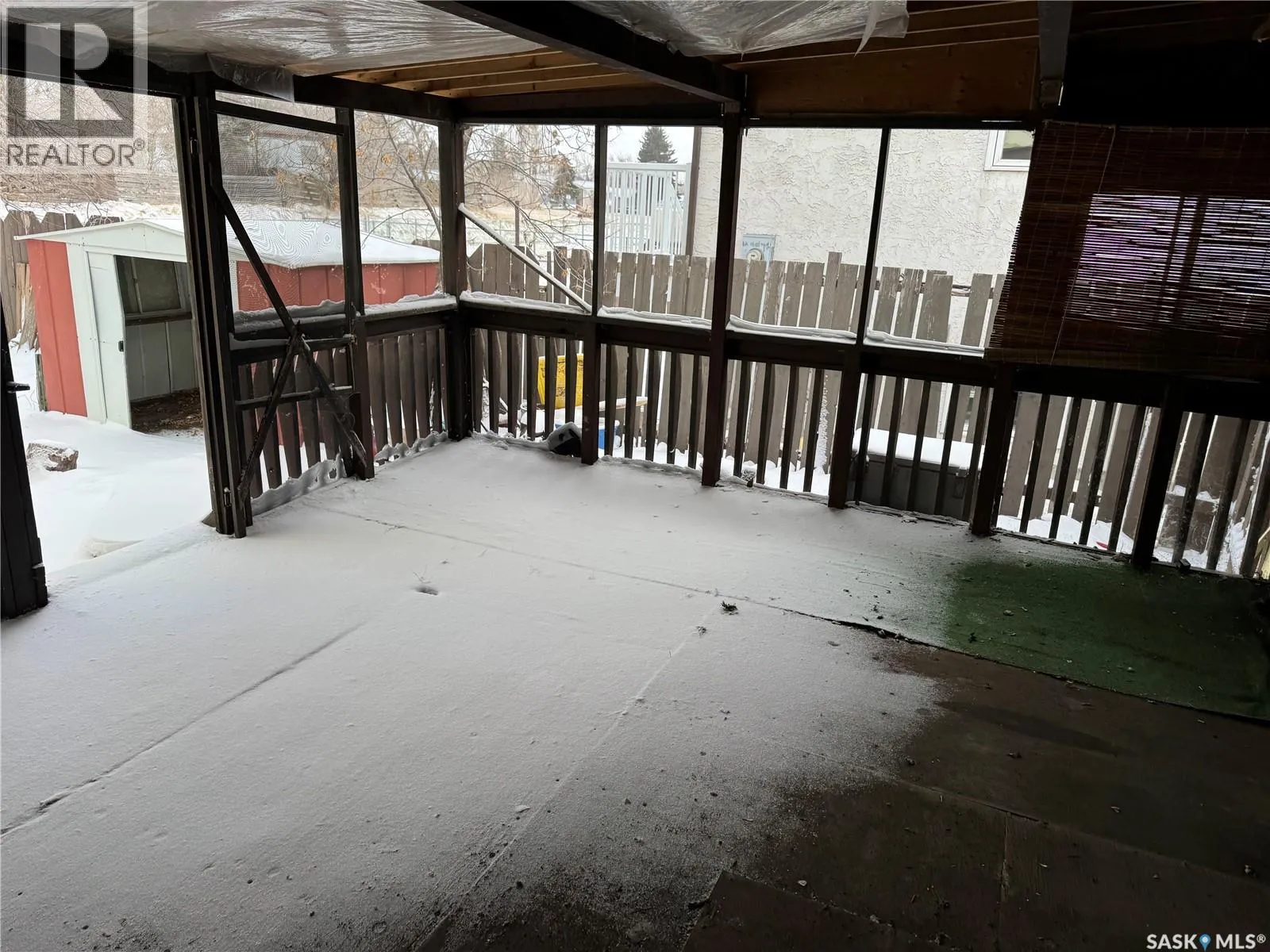 This three-level family home in Coronach offers spacious living, hardwood floors in key areas, a covered deck with garden door access, and an attached garage with in-floor heat (untested). Heat is provided by a high-efficient natural gas furnace. The basement bedrooms and storage room feature tall ceilings. Schedule a viewing today. (id:27476)