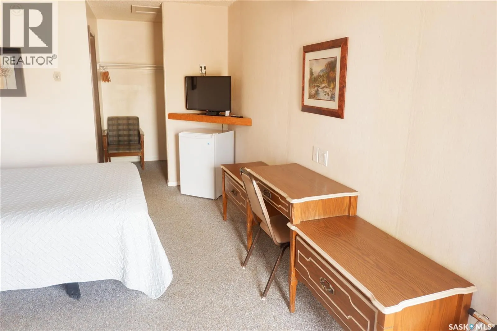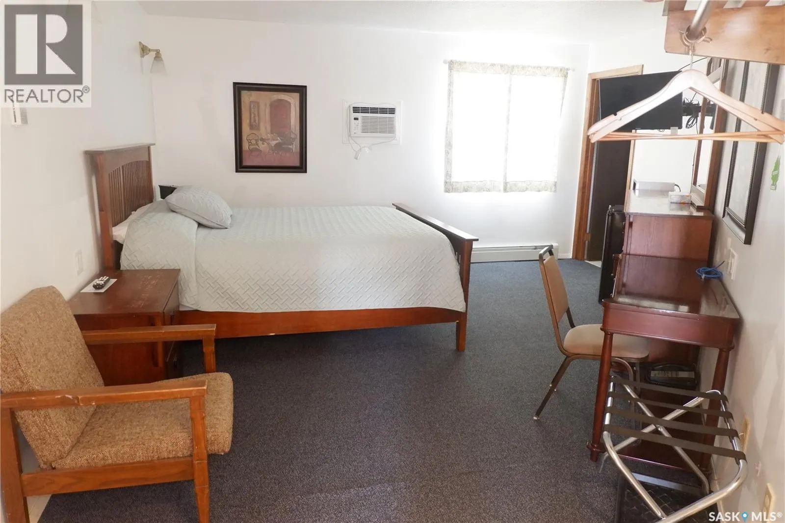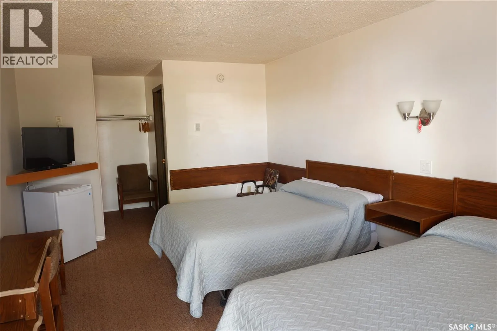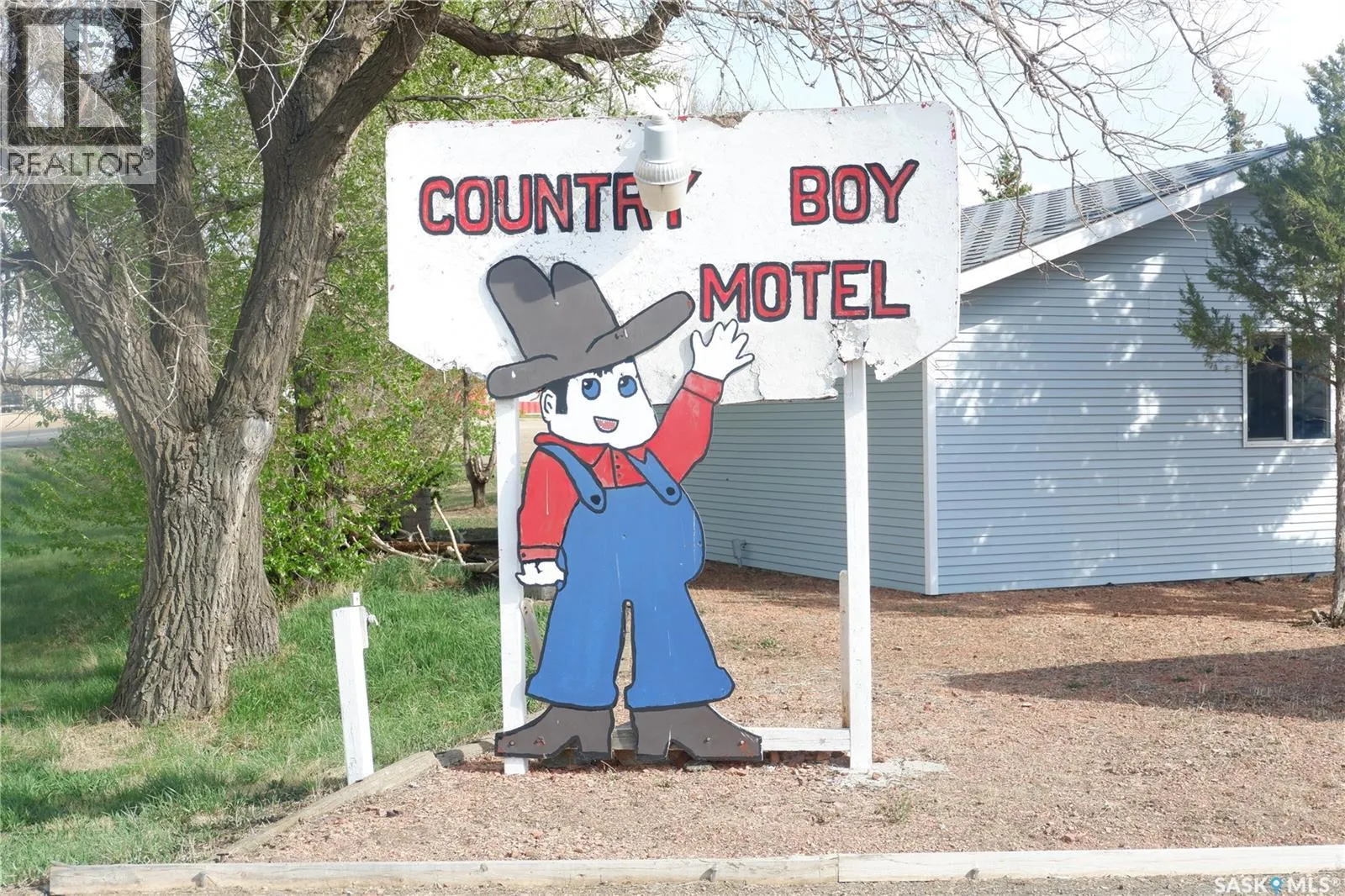 The Country Boy Motel in Coronach offers 25 rooms and a two-bedroom owner's suite. The property is clean, well maintained, sits on over an acre with ample parking, and has shown strong returns in previous years. Each room includes a fridge, microwave, air conditioner, cable TV, and a full bathroom. Living quarters feature an open kitchen/living area and direct lobby access. The double detached garage provides owner parking and storage; the boiler and shingles have been recently replaced. A separate addition serves as a snack and storage room, previously used as truck shower facilities. Room breakdown: 13 singles, 8 doubles, 4 deluxe. Please allow time to set up showings. Coronach is in South Central Saskatchewan, 15 minutes from the US/Canada border. (id:27476)