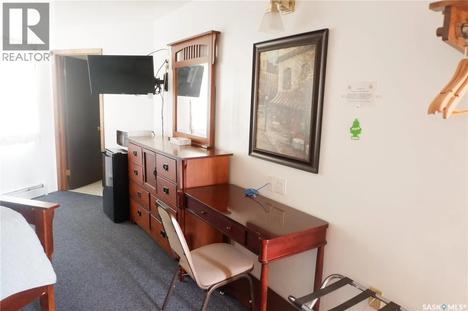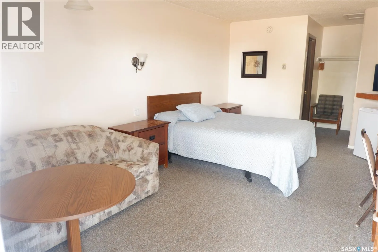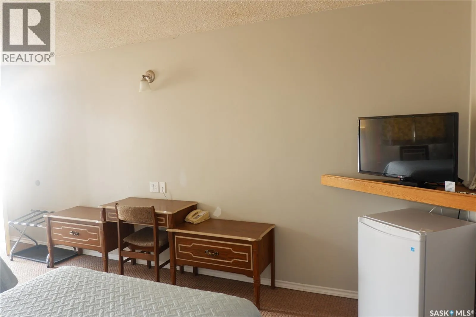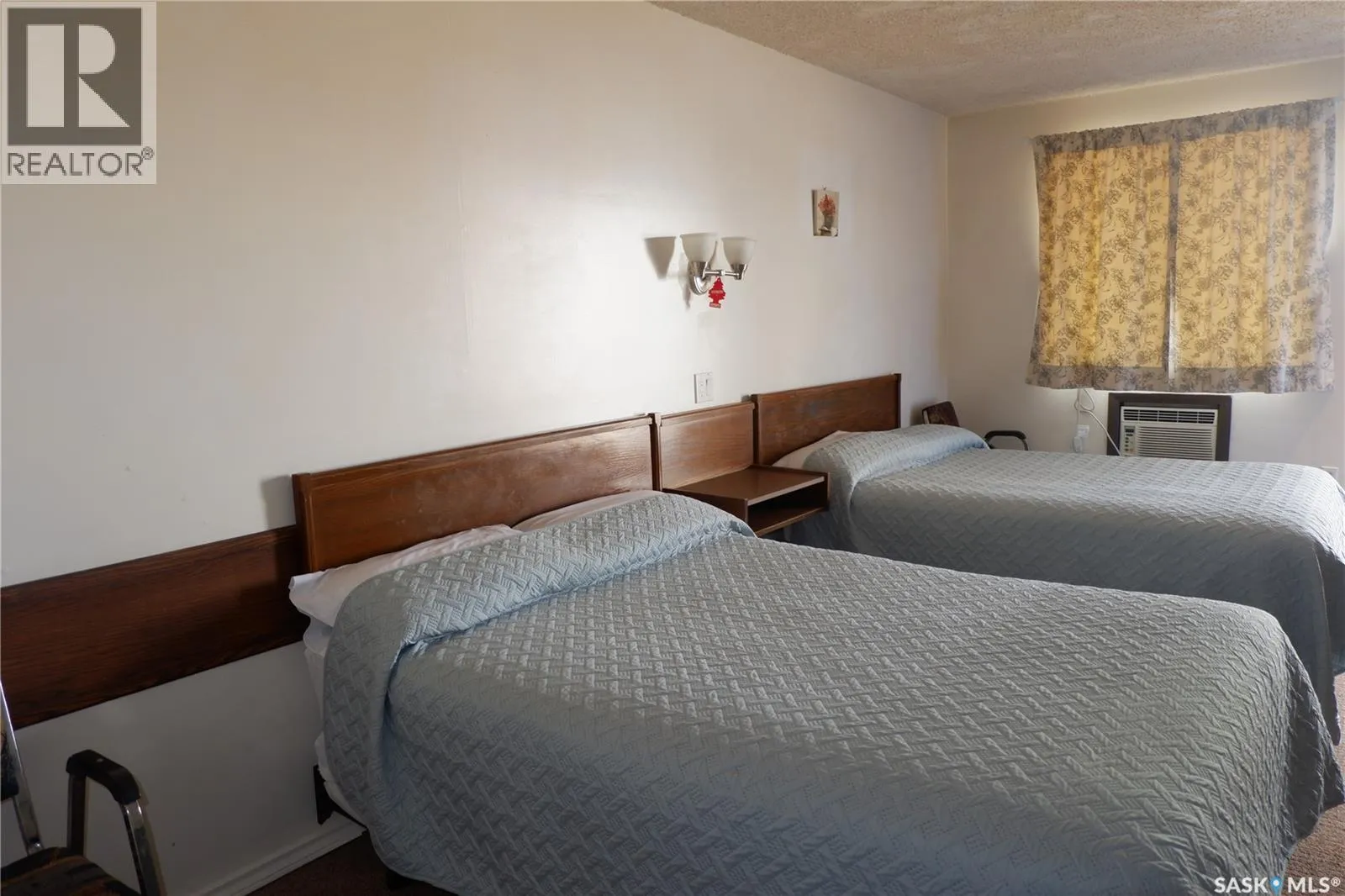 The Country Boy Motel in Coronach offers 25 rooms and a two-bedroom owner's suite. The property is clean, well maintained, sits on over an acre with ample parking, and has shown strong returns in previous years. Each room includes a fridge, microwave, air conditioner, cable TV, and a full bathroom. Living quarters feature an open kitchen/living area and direct lobby access. The double detached garage provides owner parking and storage; the boiler and shingles have been recently replaced. A separate addition serves as a snack and storage room, previously used as truck shower facilities. Room breakdown: 13 singles, 8 doubles, 4 deluxe. Please allow time to set up showings. Coronach is in South Central Saskatchewan, 15 minutes from the US/Canada border. (id:27476)
