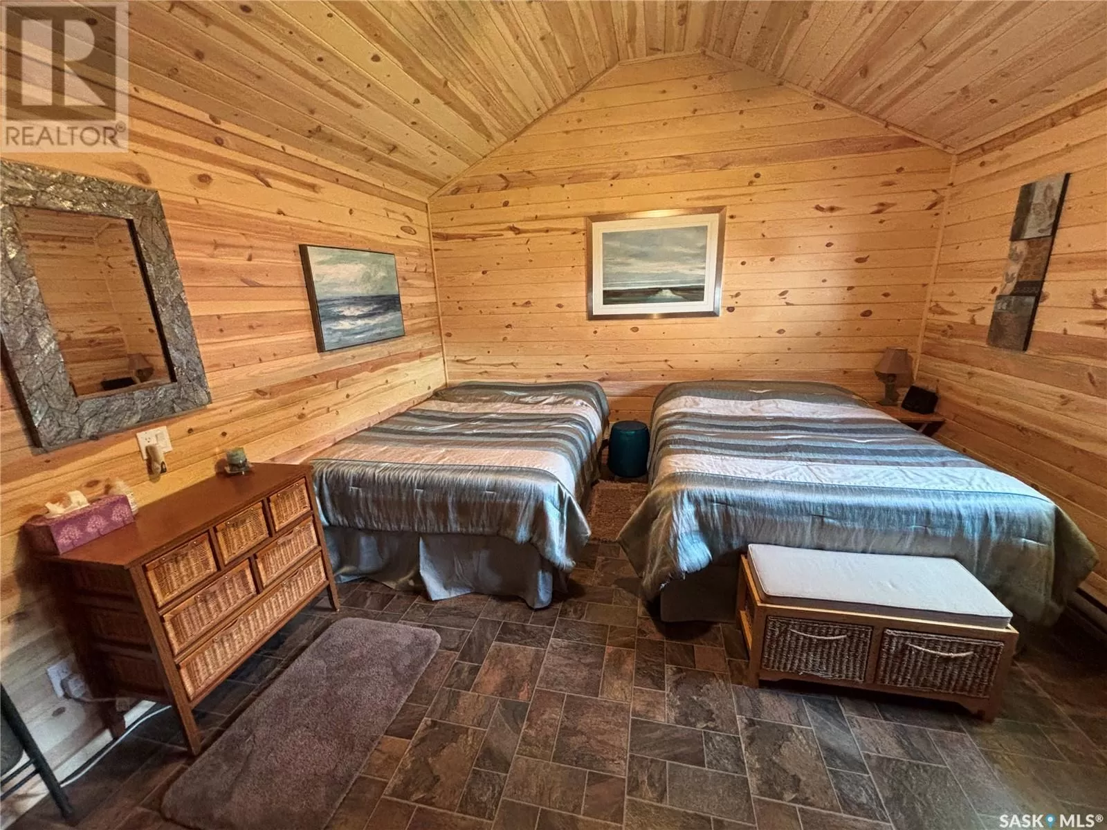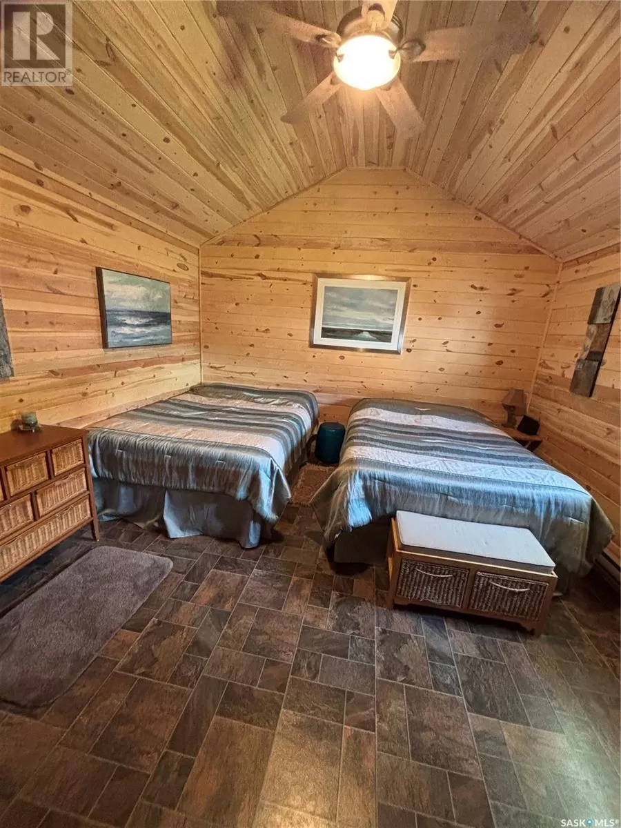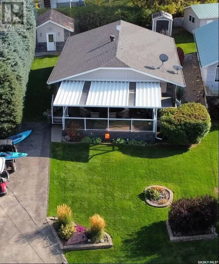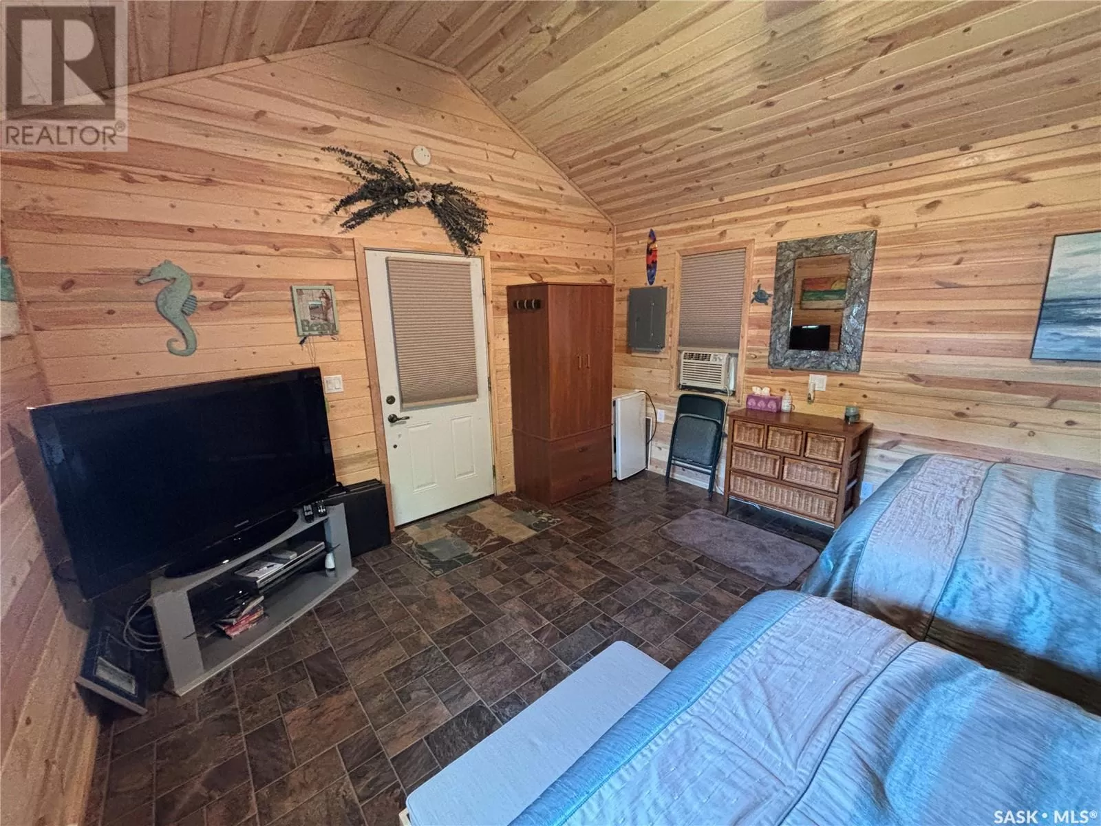 Charming Year-Round Lake Retreat! Welcome to this inviting 1,049 sq ft cabin, built in 2001, designed for comfort & gatherings. Featuring 3 bedrooms & 2 bathrooms, this home offers a spacious open-concept layout with vaulted ceilings in the living room, seamlessly connecting the kitchen and dining areas-perfect for entertaining. In 2021 the main living areas were refreshed with new vinyl flooring and a fresh coat of paint, creating a bright, modern feel. The 2 piece bathroom shares the back mud-room which is accessible from the cabin as well as direct access to back-yard, fire-pit area and bunkhouse! We have a video tour available! Step outside onto the impressive covered deck(approx 700 sq ft!!), complete with durable rubber flooring, massive seating area for everyone and hot tub for pure relaxation! Out back, discover the 235 sq ft, fully furnished bunkhouse, sitting on concrete slab, completely insulated and finished, equipped with baseboard heating & window A/C for added comfort on hot summer days, bar fridge & TV for entertaining on rainy days and after long days in the sun! Underground sprinklers & drip lines keep the yard lush, while the firepit area is ideal for getting together with friends & family on summer & cool nights. This property is being offered mostly furnished so pack your bags, grab some groceries, the kids and the dog and get ready to head to the lake! Seller's also own a lot & 40' X 64' pole shed in nearby Dunblane with workbench and built in shelving that they will sell for an additional cost, a definite bonus for storage for yourself & possibly a neighbor or two! Please inquire! Whether you're looking for a full-time residence, peaceful retreat or a place to make cherished memories with family & friends, this cabin will be the perfect choice! We have a video tour available! (id:27476)