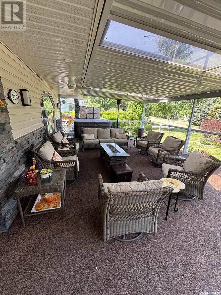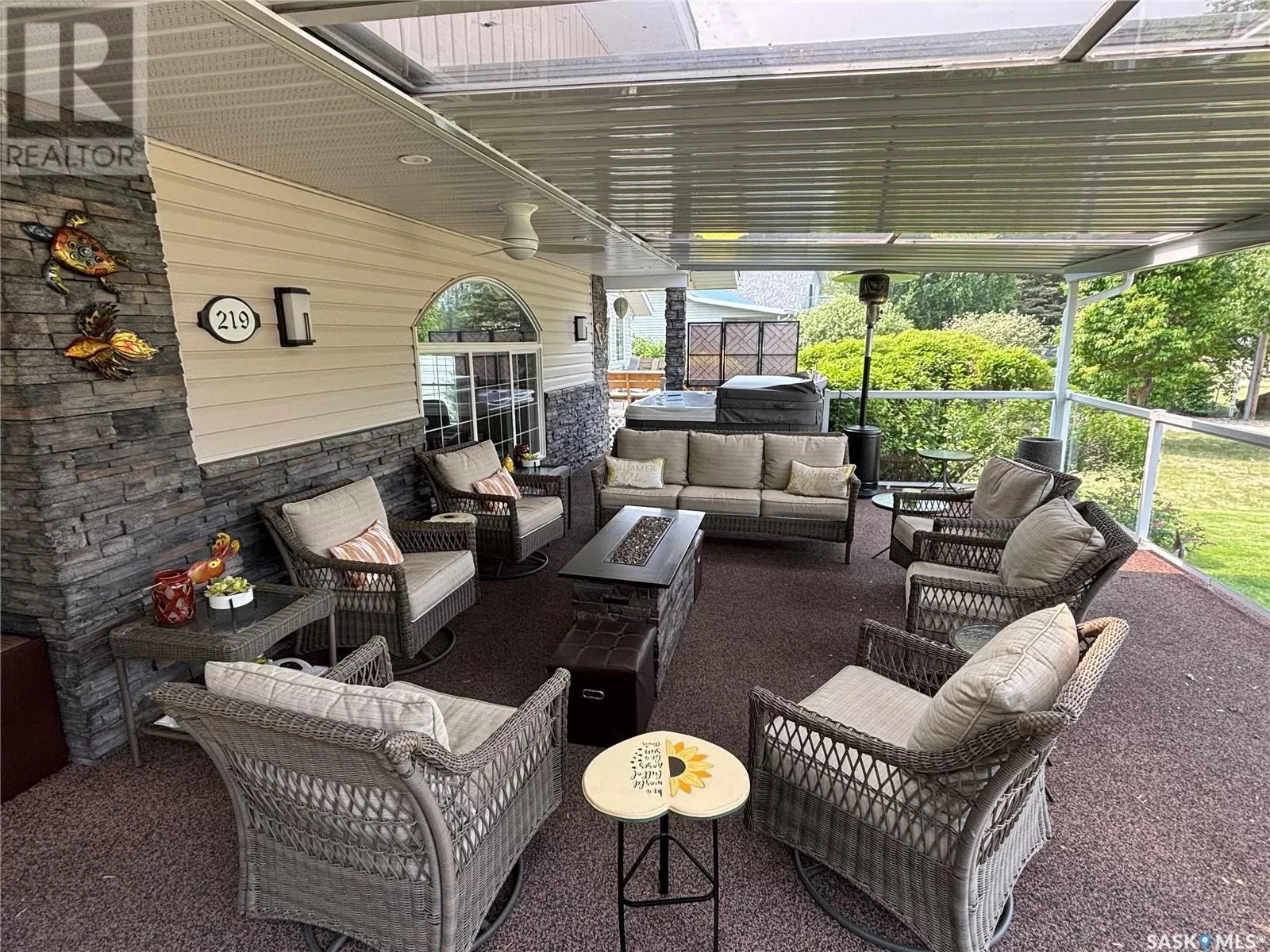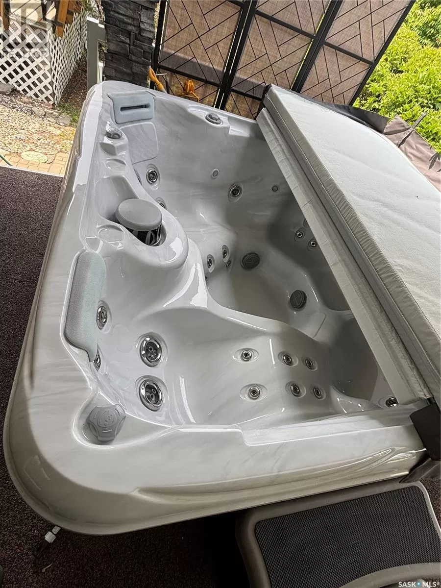 Charming Year-Round Lake Retreat! Welcome to this inviting 1,049 sq ft cabin, built in 2001, designed for comfort & gatherings. Featuring 3 bedrooms & 2 bathrooms, this home offers a spacious open-concept layout with vaulted ceilings in the living room, seamlessly connecting the kitchen and dining areas-perfect for entertaining. In 2021 the main living areas were refreshed with new vinyl flooring and a fresh coat of paint, creating a bright, modern feel. The 2 piece bathroom shares the back mud-room which is accessible from the cabin as well as direct access to back-yard, fire-pit area and bunkhouse! We have a video tour available! Step outside onto the impressive covered deck(approx 700 sq ft!!), complete with durable rubber flooring, massive seating area for everyone and hot tub for pure relaxation! Out back, discover the 235 sq ft, fully furnished bunkhouse, sitting on concrete slab, completely insulated and finished, equipped with baseboard heating & window A/C for added comfort on hot summer days, bar fridge & TV for entertaining on rainy days and after long days in the sun! Underground sprinklers & drip lines keep the yard lush, while the firepit area is ideal for getting together with friends & family on summer & cool nights. This property is being offered mostly furnished so pack your bags, grab some groceries, the kids and the dog and get ready to head to the lake! Seller's also own a lot & 40' X 64' pole shed in nearby Dunblane with workbench and built in shelving that they will sell for an additional cost, a definite bonus for storage for yourself & possibly a neighbor or two! Please inquire! Whether you're looking for a full-time residence, peaceful retreat or a place to make cherished memories with family & friends, this cabin will be the perfect choice! We have a video tour available! (id:27476)