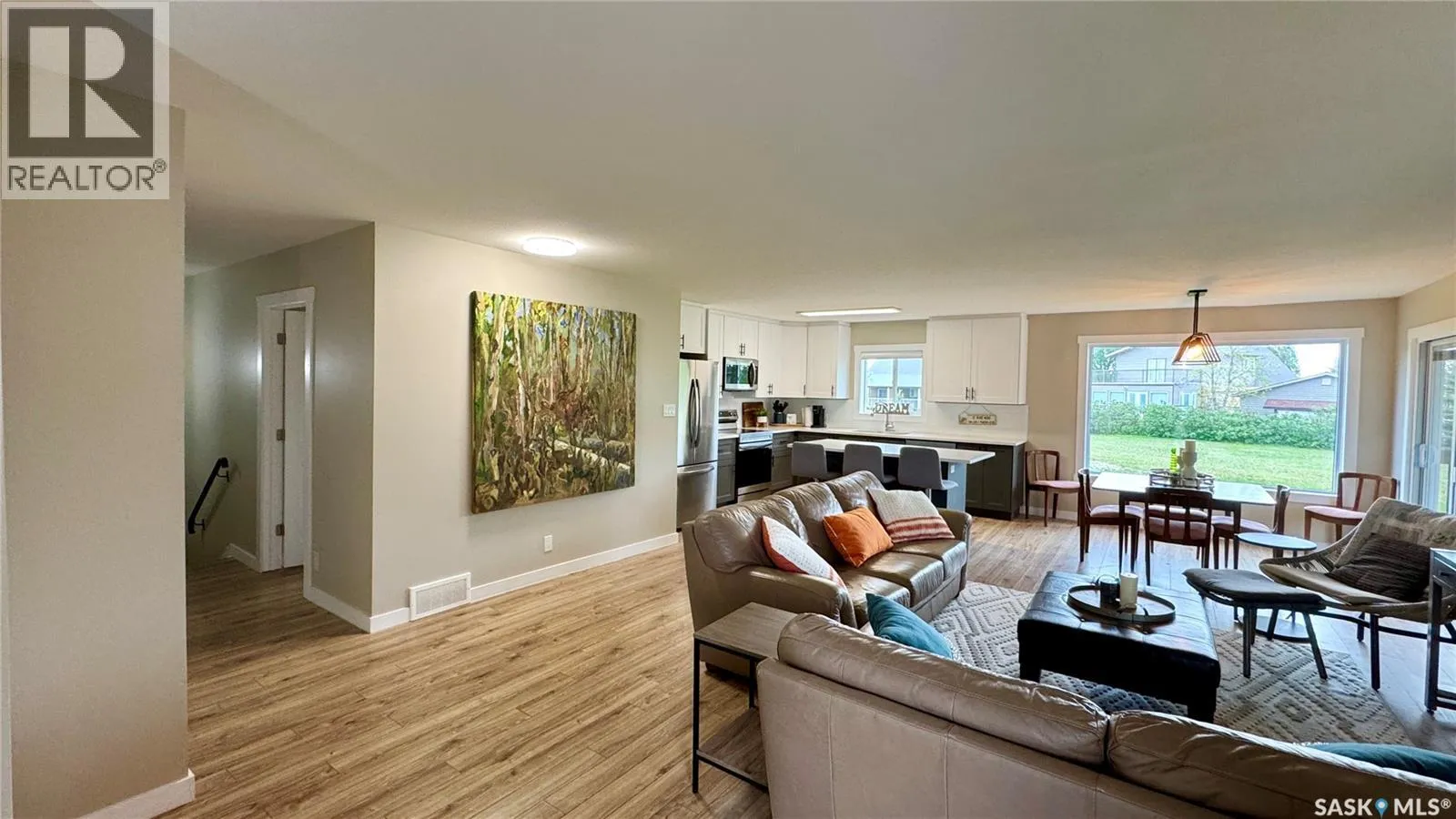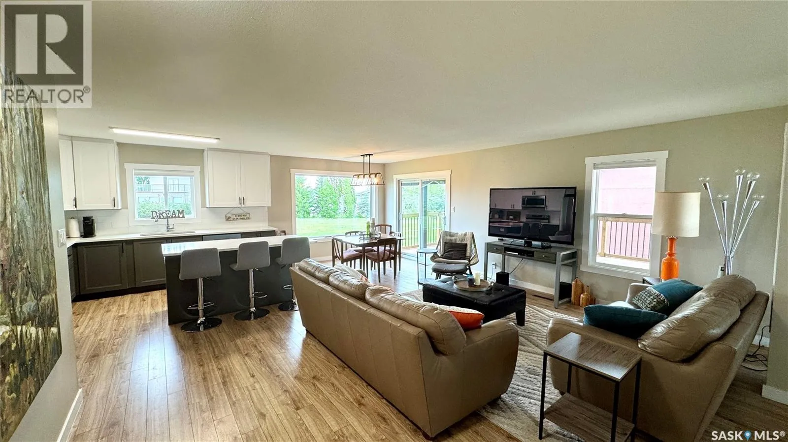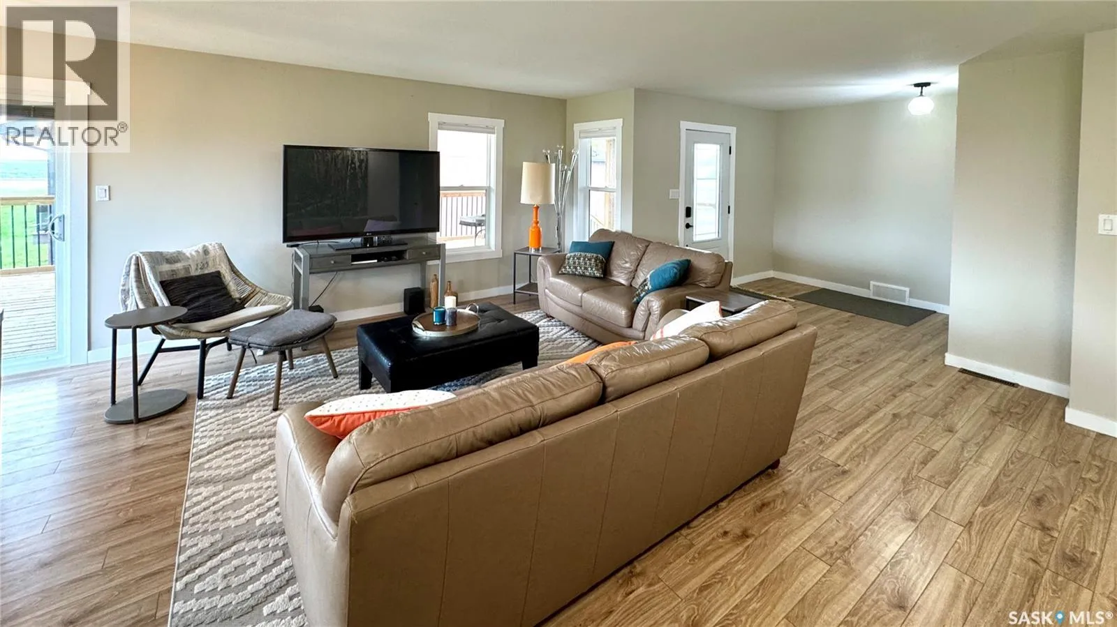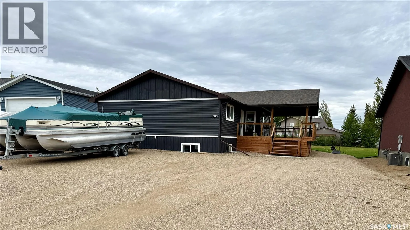 Welcome to 205 Ruby Drive, a BEAUTIFULLY UPDATED raised bungalow located in Hitchcock Bay at LAKE DIEFENBAKER. Originally built in 1975 as a church rectory in Luseland, SK, the home was relocated to Hitchcock Bay in 2020/2021 and placed on a preserved wood basement, spray-foamed and ready for future development. With 1,452 sq ft on the main floor and an unfinished basement of equal size, the home offers excellent space and flexibility. Inside, you'll find a BRIGHT OPEN LAYOUT with large windows and modern finishes throughout. The kitchen features 42â white uppers, charcoal grey lowers, QUARTZ COUNTERTOPS, stainless steel appliances, and a built-in dishwasher. The living and dining areas open to a covered 14' x 32' deck (completed in 2021) with partial LAKE VIEWS and a backyard that backs onto greenspace, with added storage under the deck. The main floor includes three large bedrooms, a primary suite with 3-piece ensuite, and main floor laundry. UPGRADES include new siding with rigid foam insulation, a new furnace and hot water heater (2022), updated windows, trim, paint, fixtures, and flooring. The basement is open for development, with drawing plans available for a 30â x 30â garage. This FOUR SEASON HOME includes a 1,600-gallon septic tank, treated potable water from a Class 3 system, summer irrigation water, underground sprinklers, and a large driveway with ample parking. High-speed internet is available. Located just 45 minutes from Outlook, 90 minutes from Saskatoon, and around 2 hours from Regina, Hitchcock Bay offers an incredible lake lifestyle with a public boat launch, beaches, swimming platform, fish filleting shack, mini-golf, golf course, pickleball and basketball courts, community shack, washroom facilities, and swimming lessons for kids. With friendly neighbors and year-round appeal, this is the perfect spot for a family getaway, full-time home, or vacation retreat. Donât miss your chance to own a piece of lake life - call today! (id:27476)