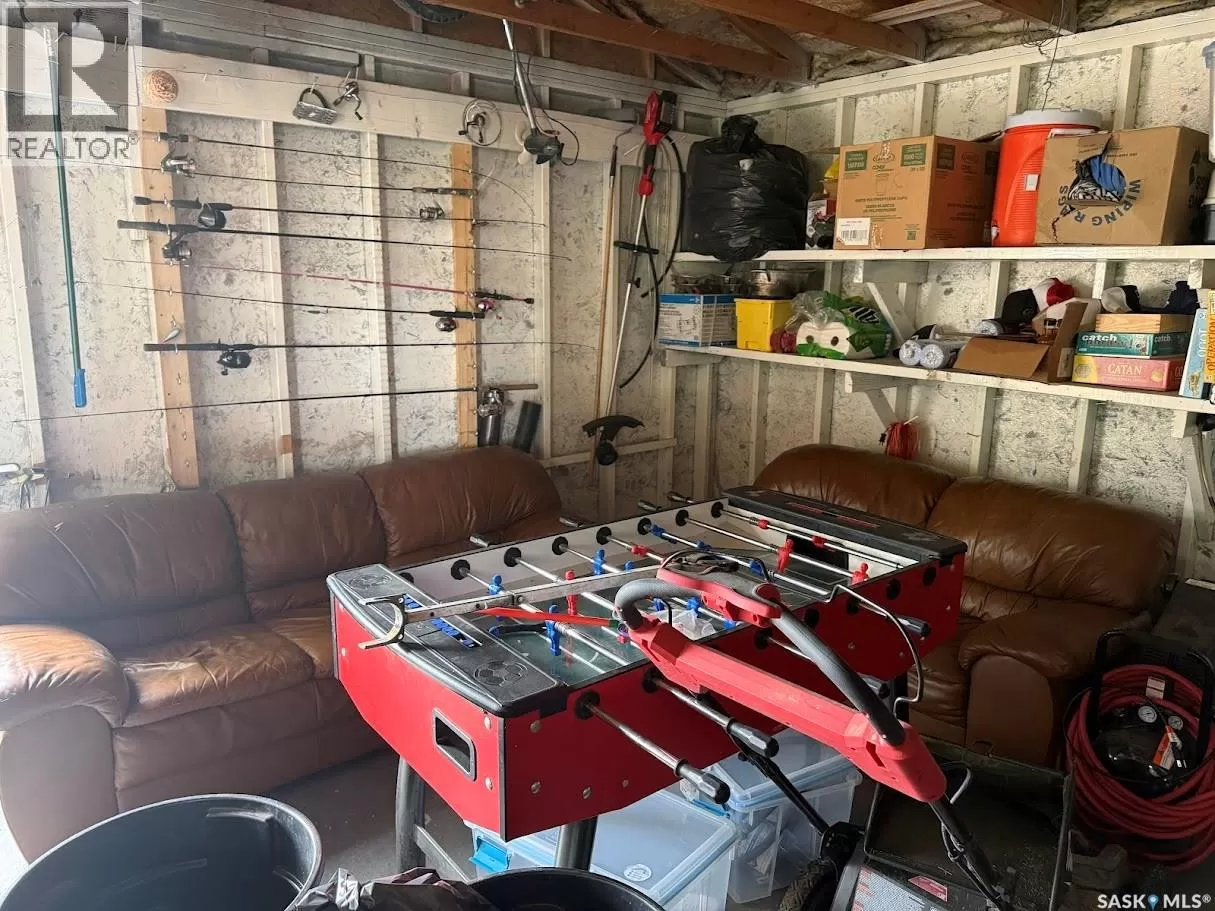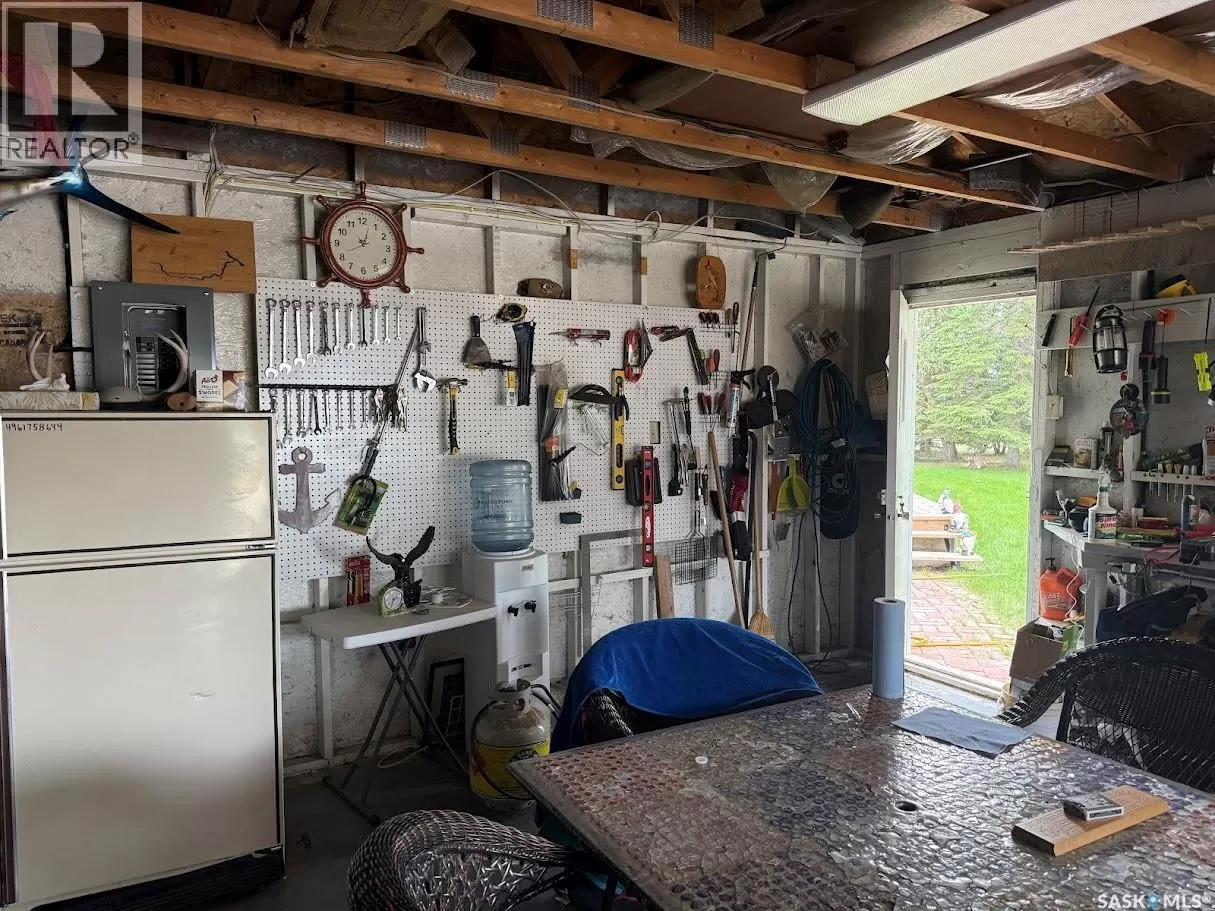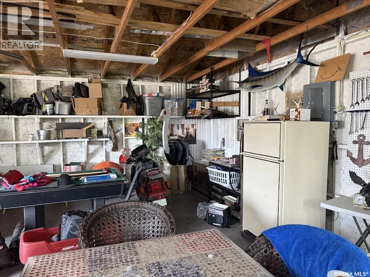 Lakefront Living on Lake Diefenbaker â Your Retreat Awaits! Enjoy breathtaking views and unbeatable access to the water with this lakefront gem on beautiful Lake Diefenbaker! This cabin could return to being a year-round cabin again and with the natural gas service to the property for future comfort and convenience. The cabin features 2 bedrooms, a spacious entry room/laundry, bathroom and large kitchen with dining area. perfect for lake gear or extra lounging, and Step outside and you'll love the large outdoor kitchenâideal for entertaining family and friends while enjoying the lake breeze. The double garage expands your living space and offers plenty of room to store all your lake toys. There is a spot to have your boat in the sheltered bay just in front of the cabin, what a dream to just walk out and jump on your boat! Whether you're looking to relax, entertain, or play, this property is set up for it all. Donât miss this rare opportunity to own a piece of the lakefront lifestyle! (id:27476)