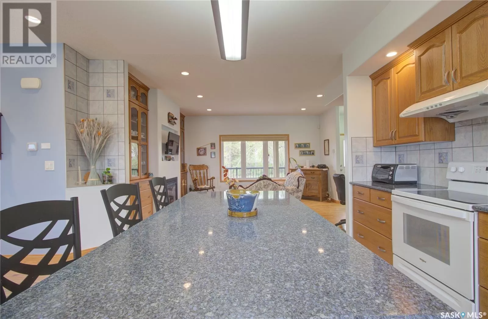 Small Town living at its BEST! Escape to this beautifully designed home nestled in serene rural Saskatchewan, just a quick 10 minute drive to the boat launch at Hitchcock Bay and the shores of Lake Diefenbaker! Offering a perfect blend of modern design and rustic charm, this home is ideal for those seeking a tranquil lifestyle without sacrificing luxury. The open floor plan creates a spacious and inviting atmosphere, with a bright, airy living room flowing seamlessly into a contemporary kitchen perfect for entertaining. Granite countertops, solid oak cabinetry, ceramic tile floor, central island with seating/storage and a butlers baking pantry make this kitchen a chef's dream! A generously sized primary bedroom showcases the ensuite with walk-in shower and the spacious walk-in closet! The basement features a finished 3pc bathroom and storage/cold room, providing a great opportunity to add additional bedrooms or a rec room to suit your needs. Saving the best for last, the HEATED 30' X 35' attached garage, the perfect versatile work/parking space! No detail spared on this build....main floor laundry, heated ceramic floors (bathrooms/mudroom), triple-pane windows, high efficiency furnace/water heater, surge protector, water filtration system, wheelchair accessible design, Underground sprinklers/drip lines, concrete drive, decks front/back, A/C ,central vac and Hunter Douglas TDBU window coverings! Come see it for yourself, Call today for your personal tour! (id:27476)
