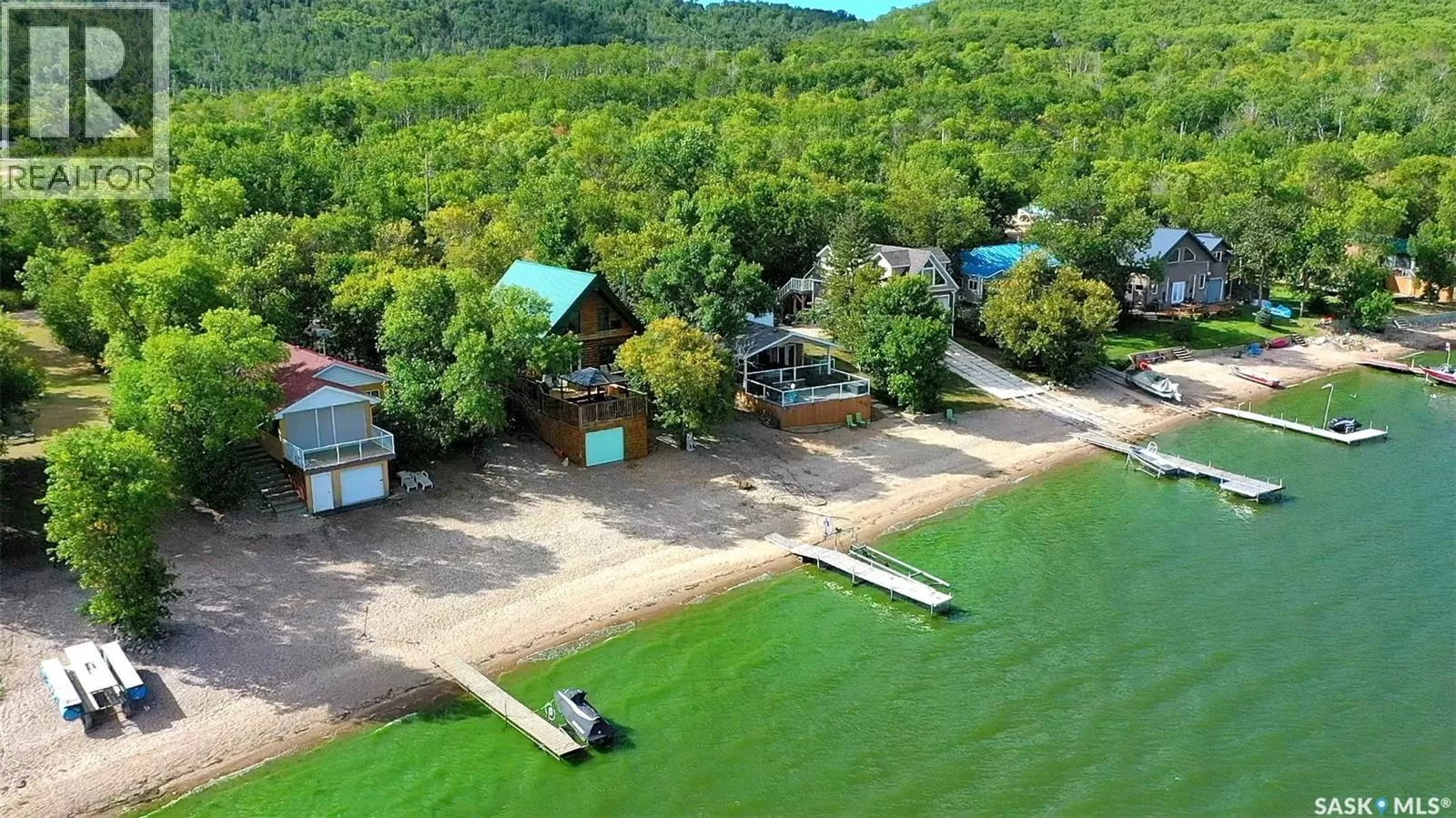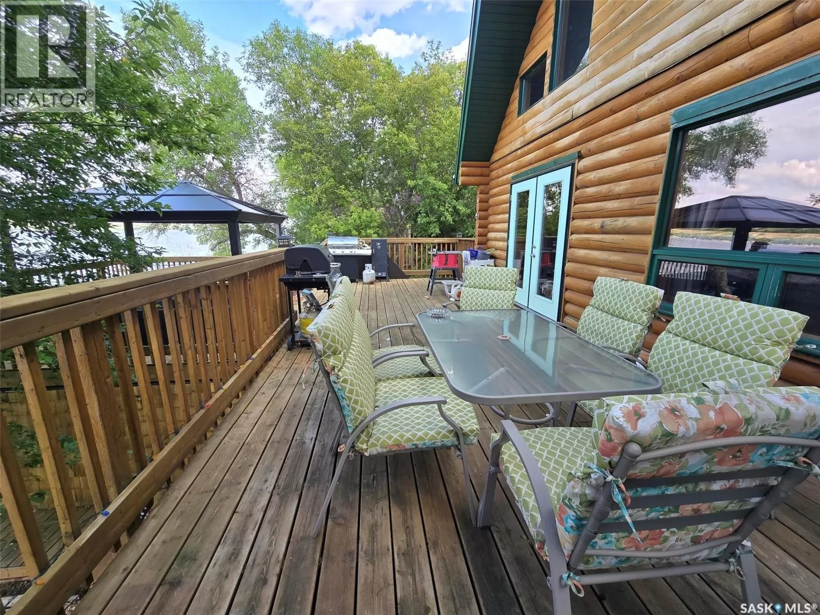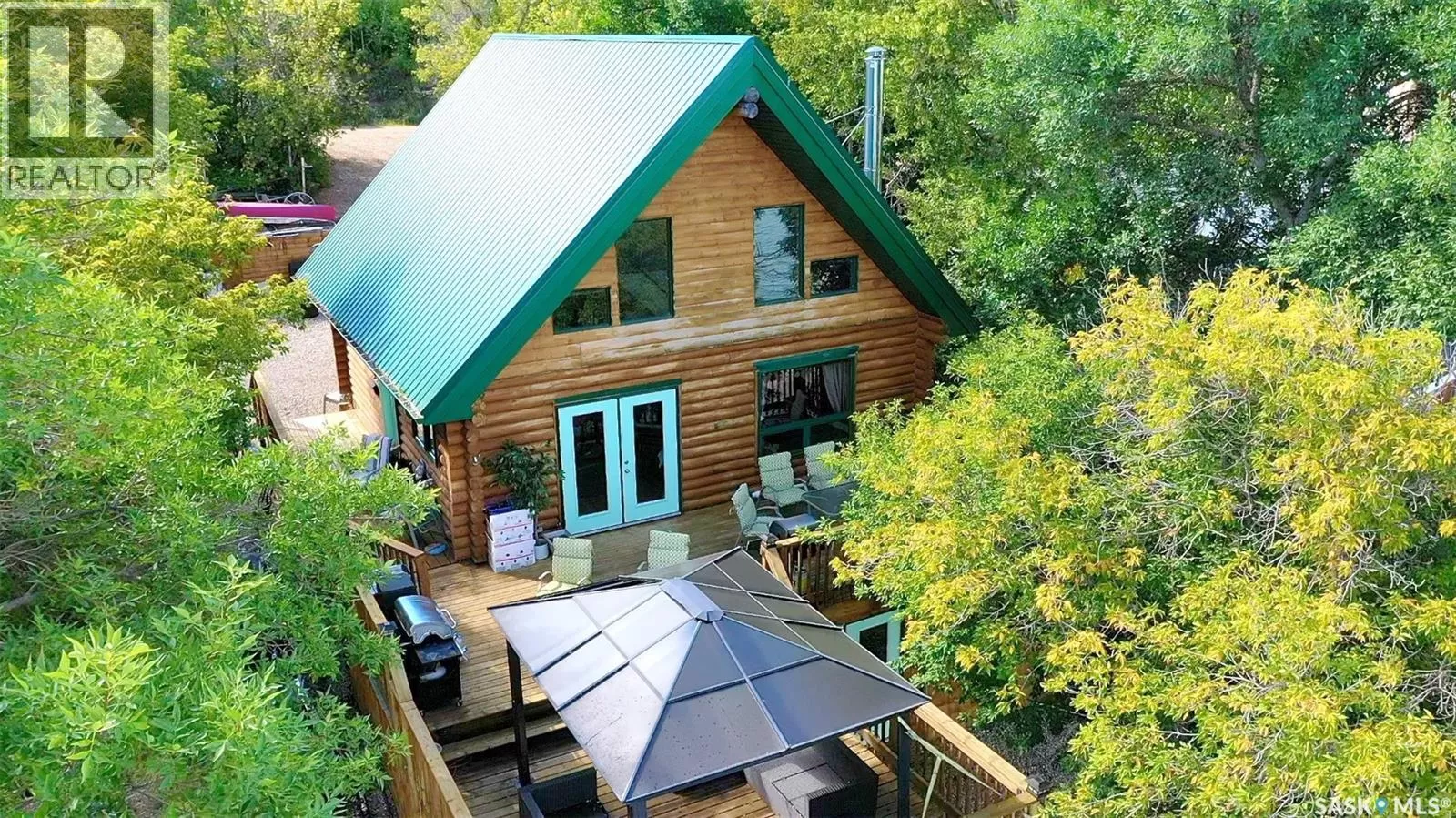 Tranquil water front lake life , living in a log home all year round is what Lot 14 Poplar Trail provides. On the quiet side of Crooked Lake , find this 2004 "A Frame" Swedish Cove Log home with a combined living space of 1710 sq ft to include the walk out basement and master loft. The lake frontage is 50' x 147 , with Xeriscape yard and sandy beach. Large 2 sided decking with views of the sunset can be enjoyed and covered gazebo to relax under. The master bedroom is located in the loft with a views of the lake. Main floor living provides an entertainment space in the living room with garden doors to front deck, a kitchen /dining area, 3 piece bath with laundry. Walk out basement has a rec space, 2nd bedroom , a utility room and dry bar area. Relax in the hot tub under the deck with entry from the basement. Stone epoxy flooring makes this space very durable and easy to maintain. One owner home and is looking for a new owner whether you want to be seasonal or 4 season , this property provides comfort with a wood stove and propane forced air furnace (2024)with central air. Metal roof was new in 2015, power vent propane hot water heater, 1000 concrete septic, couple sources of water systems, 200 amp service, boat house great for storage, dog kennel and dog run , 1 road entry and access to the water , are some of the features. Pier and gazebo included in the purchase. Stainless steel fridge, stove and DI washer included as well as the washer and dryer. Owner just finished staining the exterior. Good opportunity to have a unique lake front home. Close to the boat launch and huge children's playground , campgrounds and Great neighbours. Lease due end of Dec - 2024 was $2781 Tax due end of Sept - 2024 $1683.55 (id:27476)