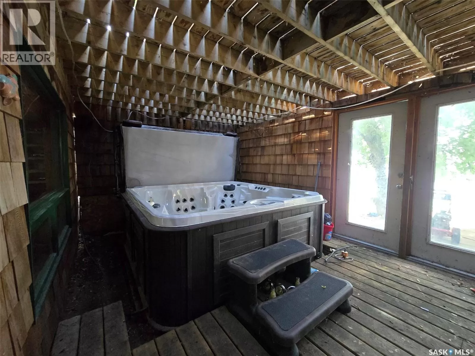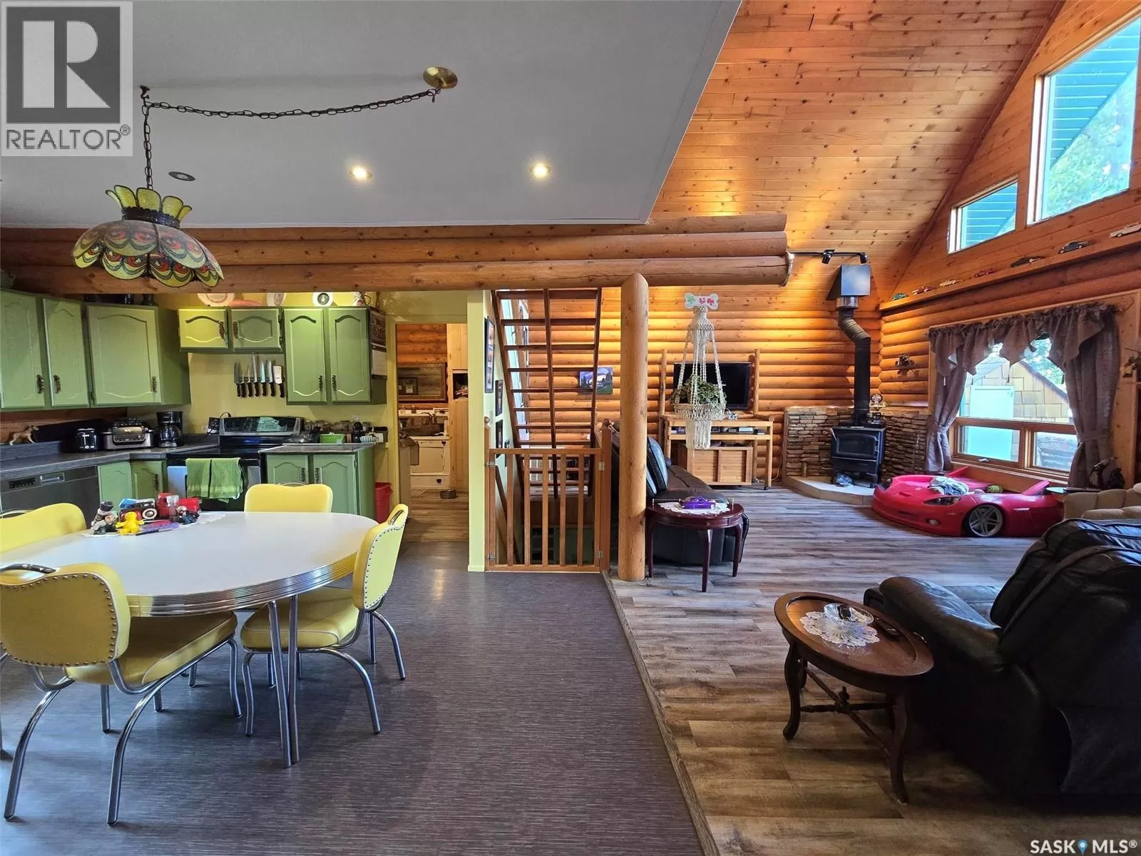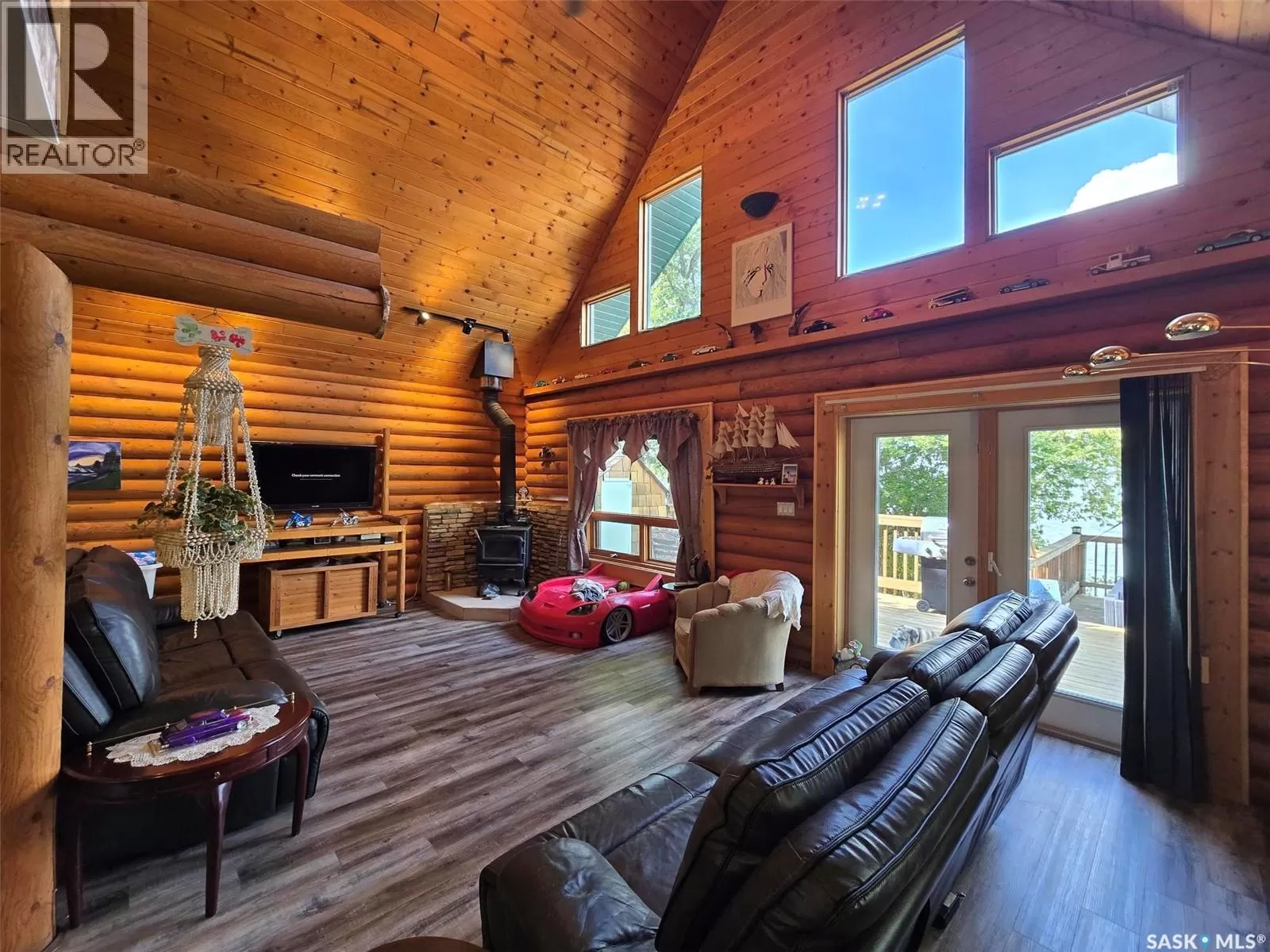 Tranquil water front lake life , living in a log home all year round is what Lot 14 Poplar Trail provides. On the quiet side of Crooked Lake , find this 2004 "A Frame" Swedish Cove Log home with a combined living space of 1710 sq ft to include the walk out basement and master loft. The lake frontage is 50' x 147 , with Xeriscape yard and sandy beach. Large 2 sided decking with views of the sunset can be enjoyed and covered gazebo to relax under. The master bedroom is located in the loft with a views of the lake. Main floor living provides an entertainment space in the living room with garden doors to front deck, a kitchen /dining area, 3 piece bath with laundry. Walk out basement has a rec space, 2nd bedroom , a utility room and dry bar area. Relax in the hot tub under the deck with entry from the basement. Stone epoxy flooring makes this space very durable and easy to maintain. One owner home and is looking for a new owner whether you want to be seasonal or 4 season , this property provides comfort with a wood stove and propane forced air furnace (2024)with central air. Metal roof was new in 2015, power vent propane hot water heater, 1000 concrete septic, couple sources of water systems, 200 amp service, boat house great for storage, dog kennel and dog run , 1 road entry and access to the water , are some of the features. Pier and gazebo included in the purchase. Stainless steel fridge, stove and DI washer included as well as the washer and dryer. Owner just finished staining the exterior. Good opportunity to have a unique lake front home. Close to the boat launch and huge children's playground , campgrounds and Great neighbours. Lease due end of Dec - 2024 was $2781 Tax due end of Sept - 2024 $1683.55 (id:27476)