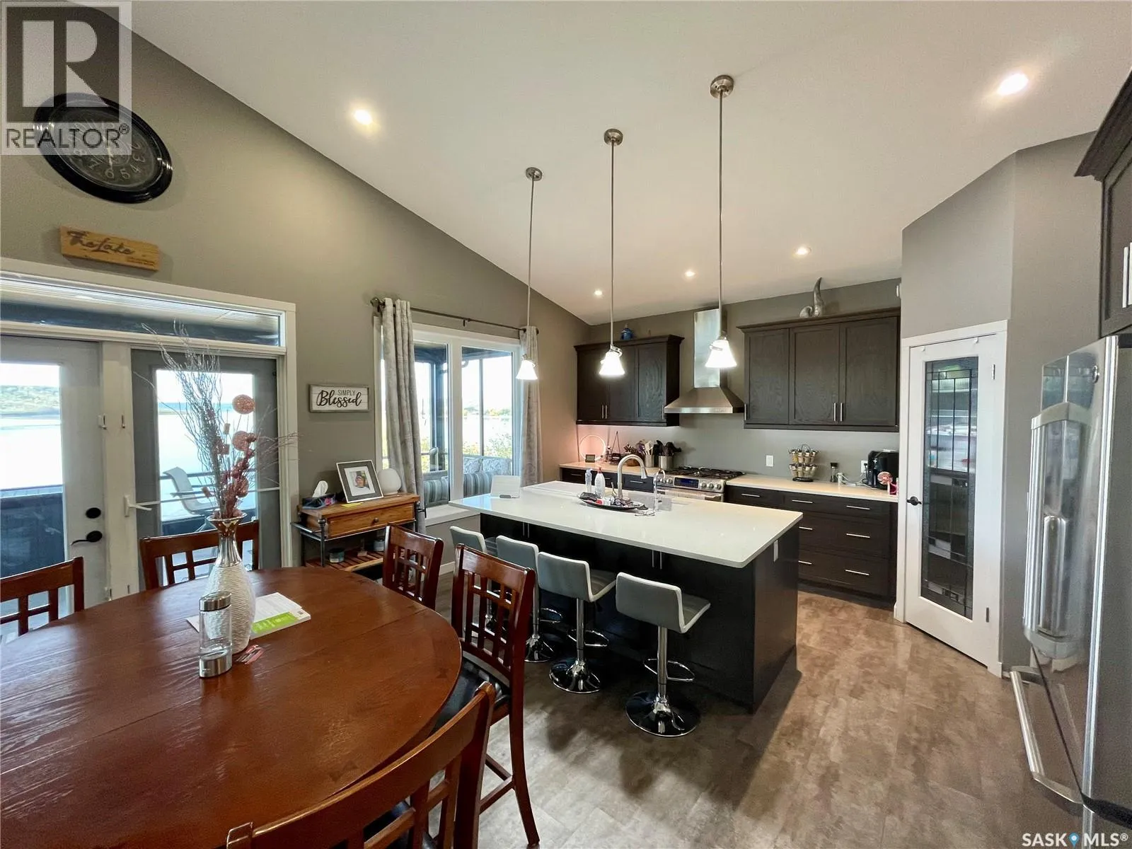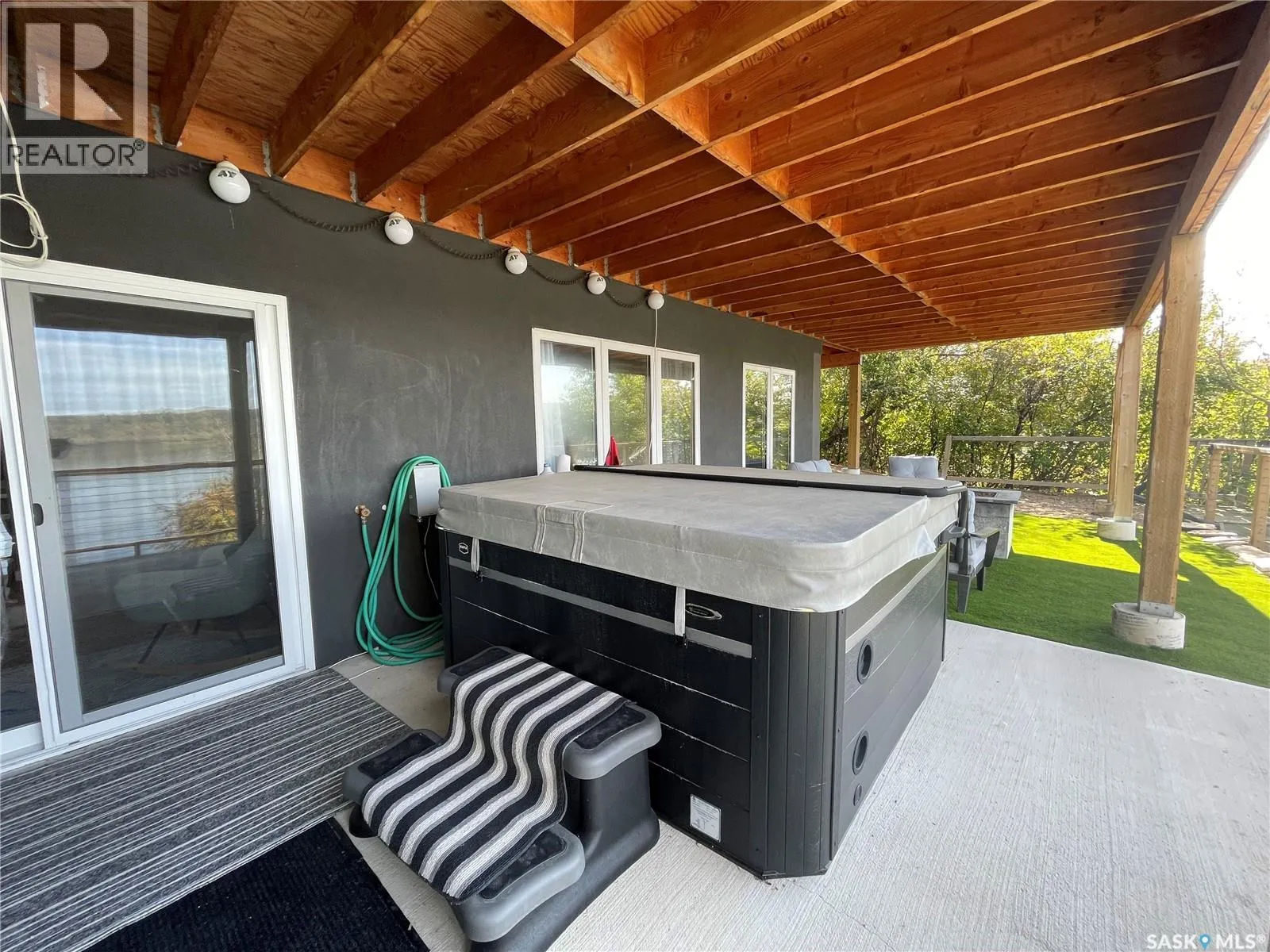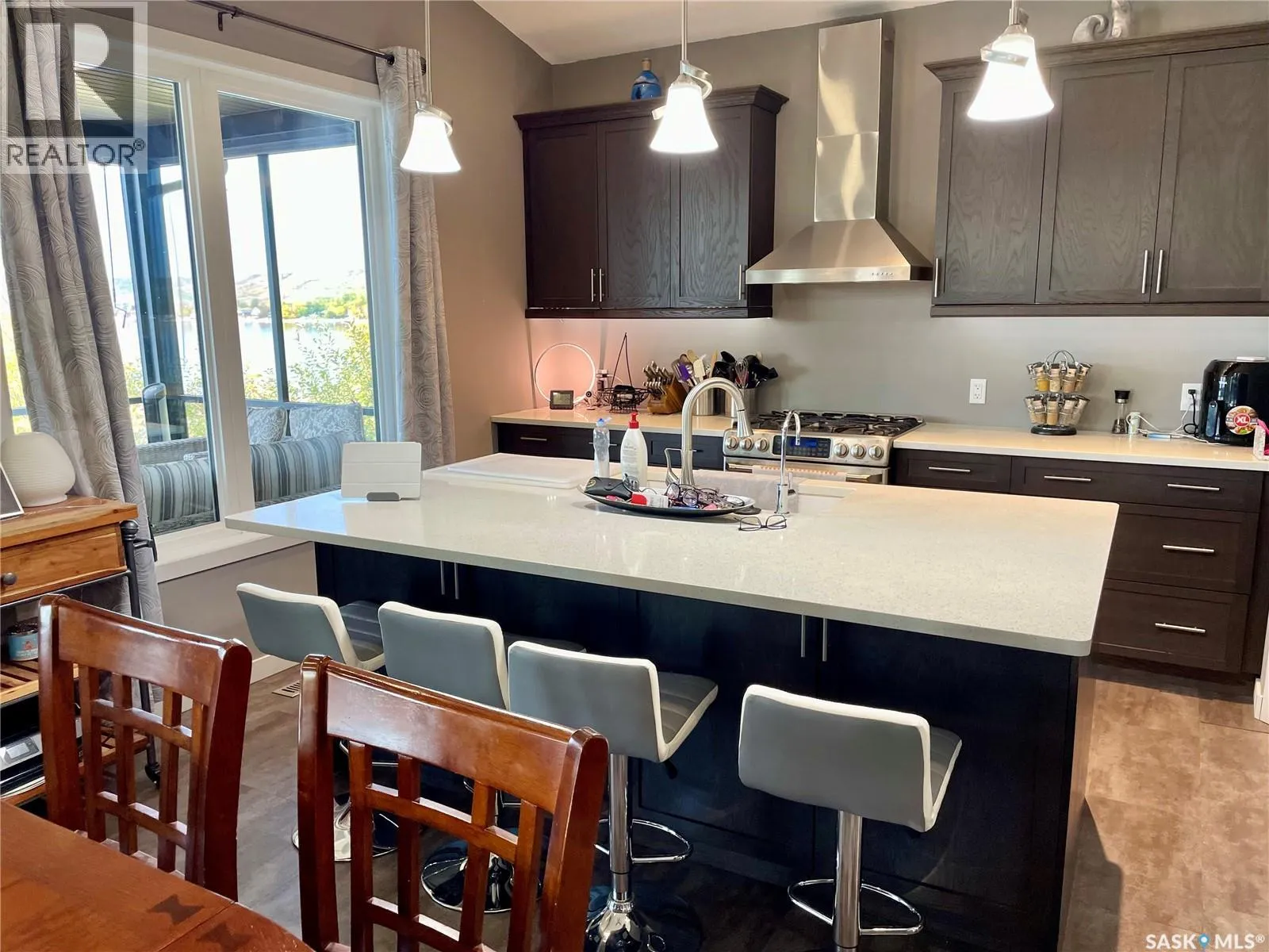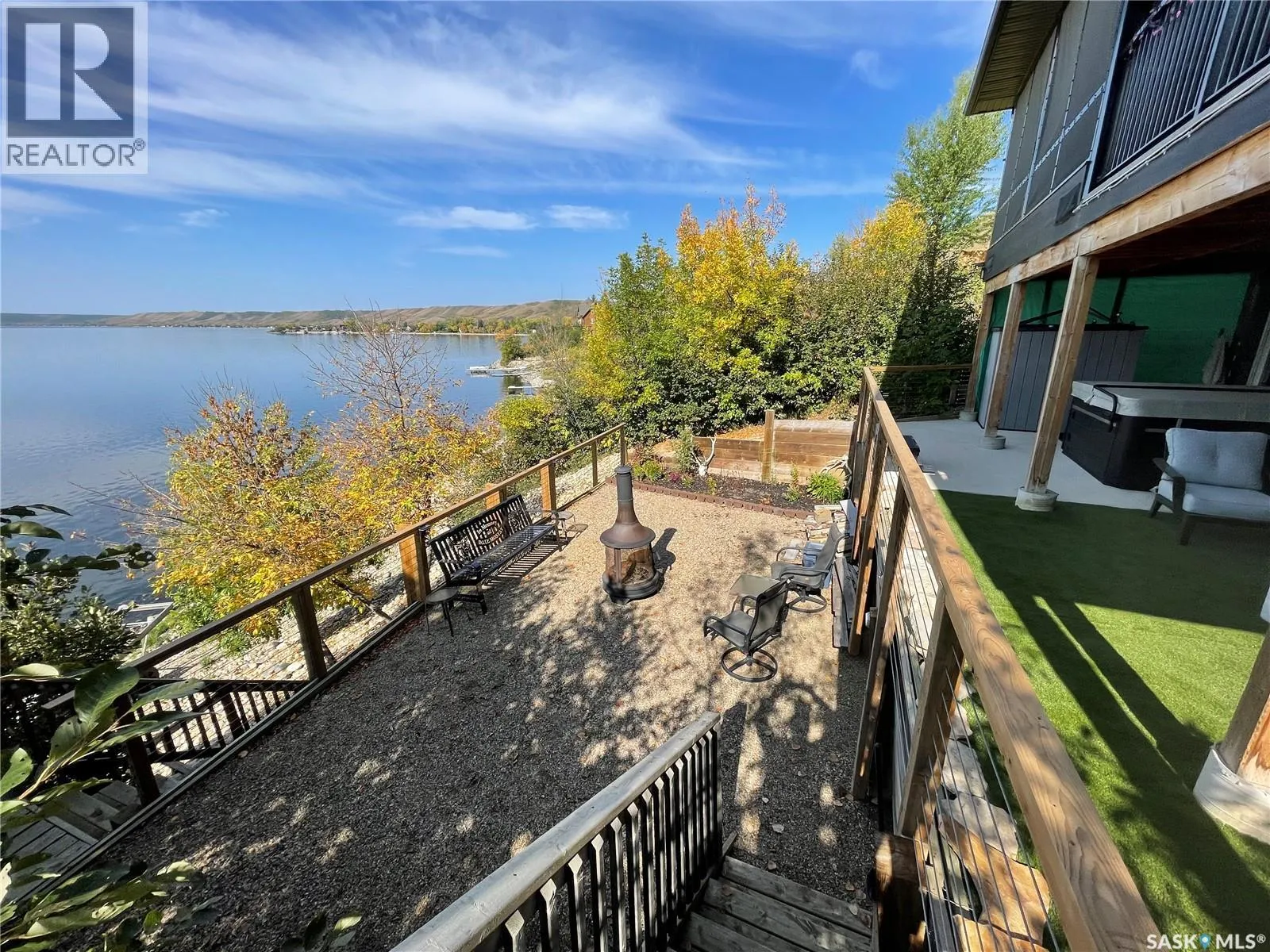 Welcome to 402 Abel Dr. located at Crooked Lake Sk. Don't let this one pass you by, you truly have to view to fully appreciate the layout and pride in ownership. ENJOY lake front living at its best year round with this beautiful walkout bungalow that offers approx. 1,996 sq. f. of total living space, that doesn't even include the huge double attached heated garage that feels more like part of the house then an actual garage (which has a 3 piece bathroom and laundry area). This open concept layout with its large island kitchen has breath taking views of the lake from one end to the other. There is 3 total bedrooms / 3 bathrooms, with the master suite on the walkout level. Outside this home there is numerous places to relax and enjoy the amazing lake views from the screened in sunroom off the main level or the hot tub and sitting area off the walkout level. Seller states the well is approx. 140-150 feet deep and septic tank 1000 gal. (id:27476)