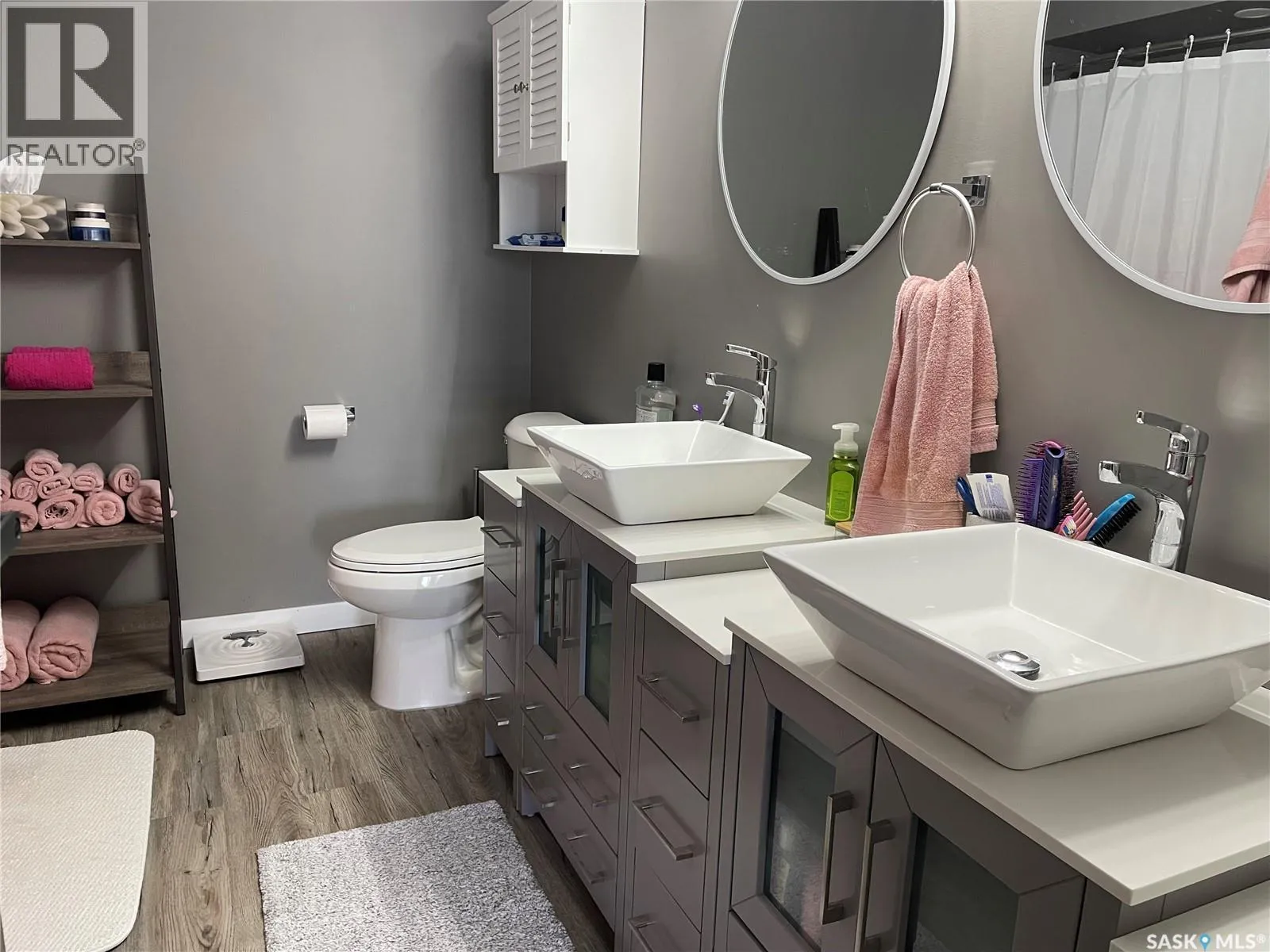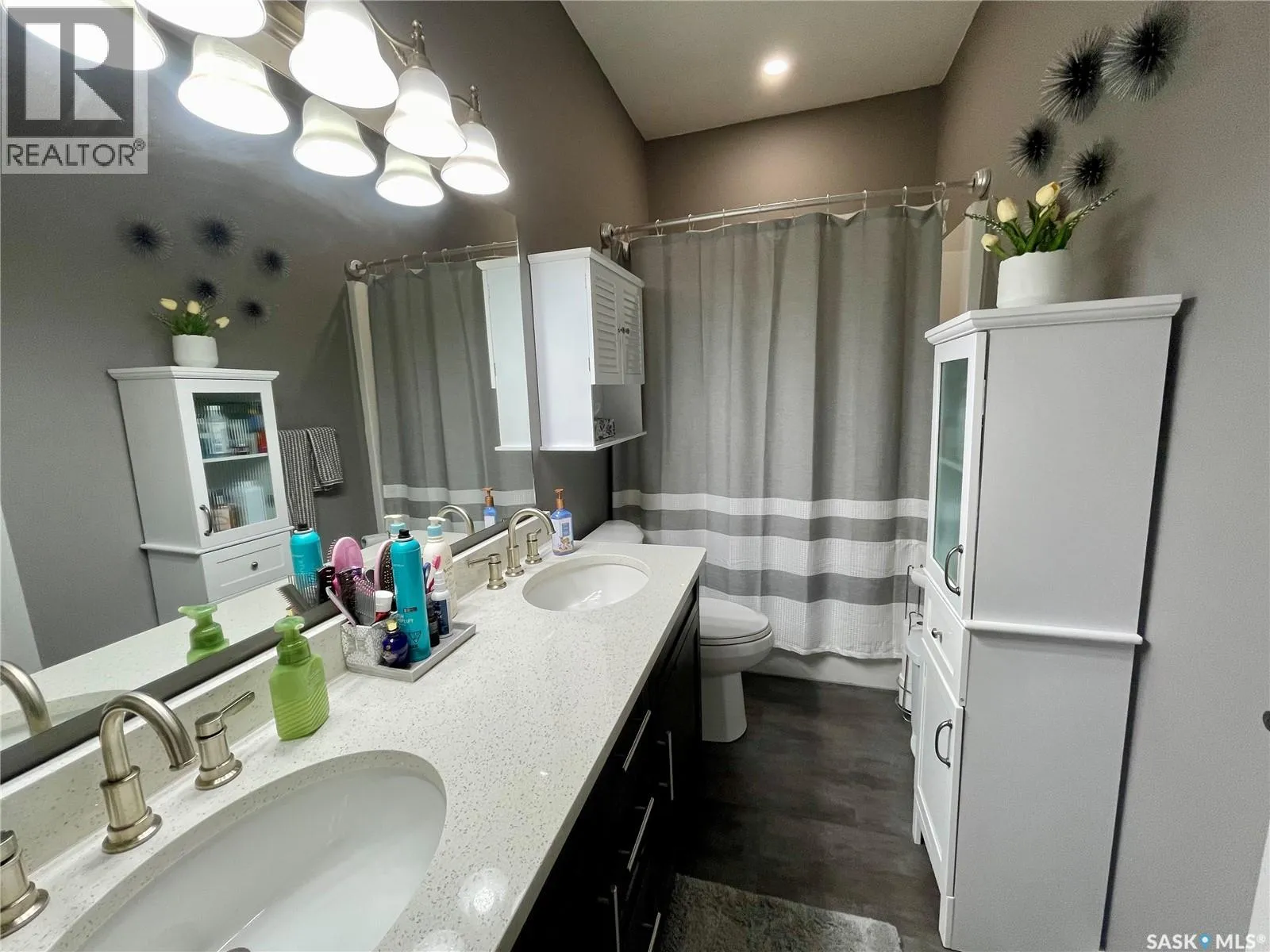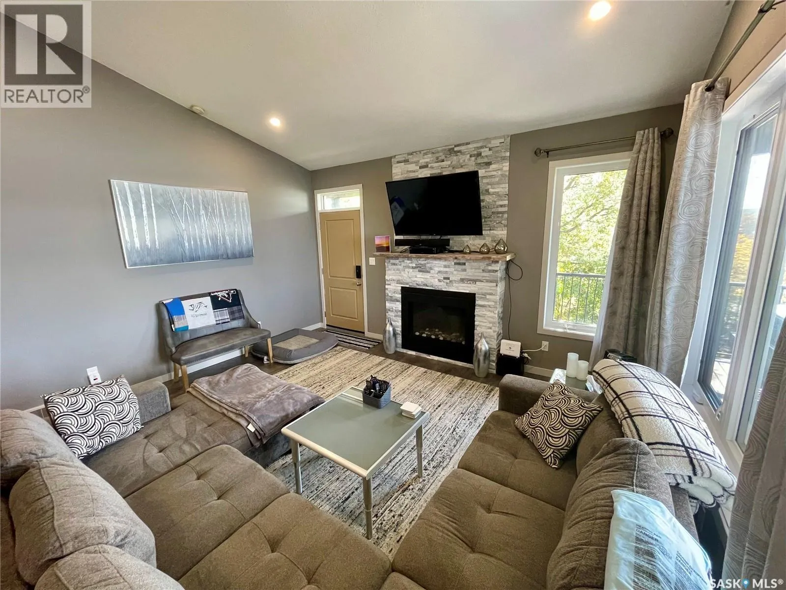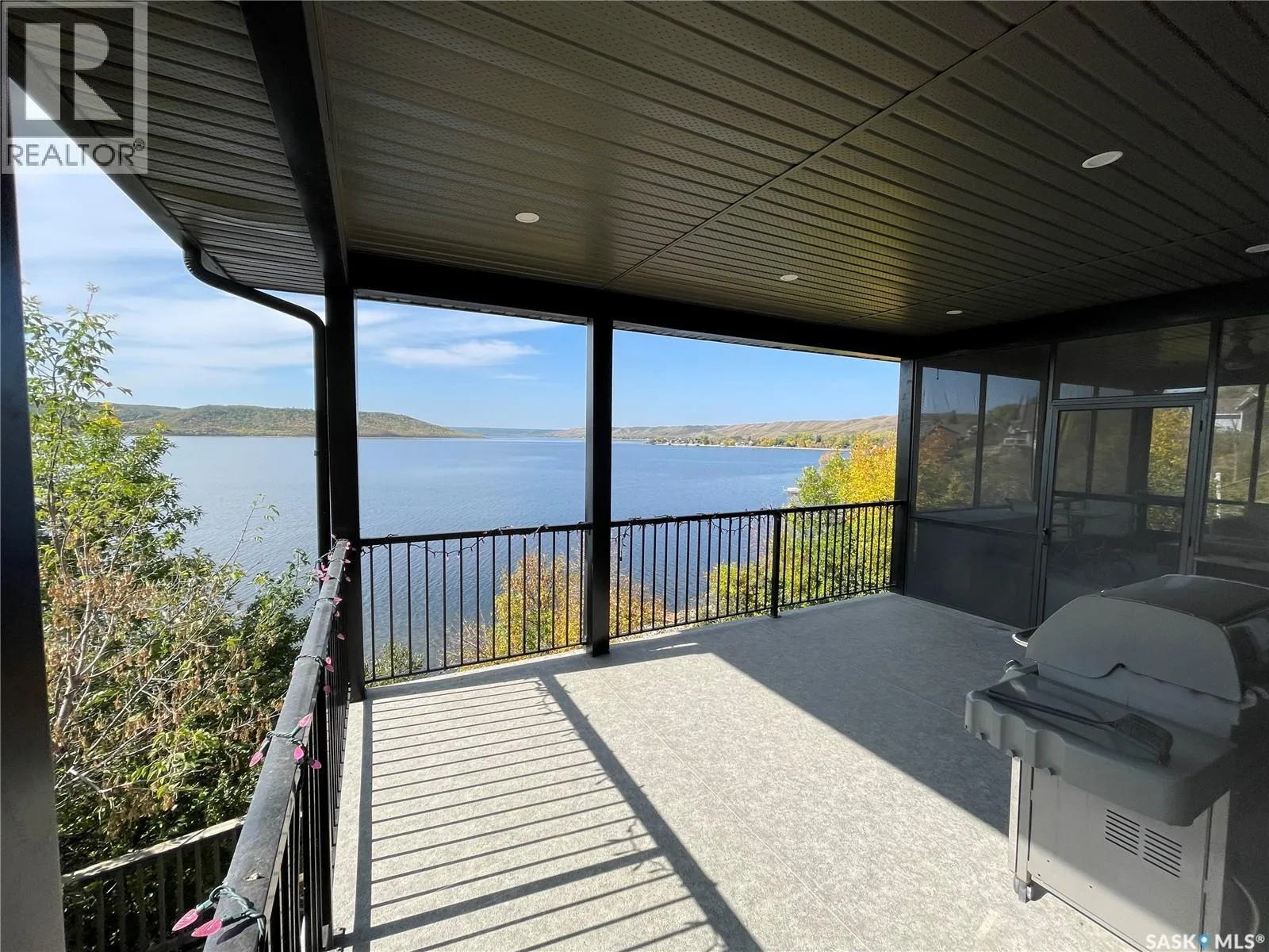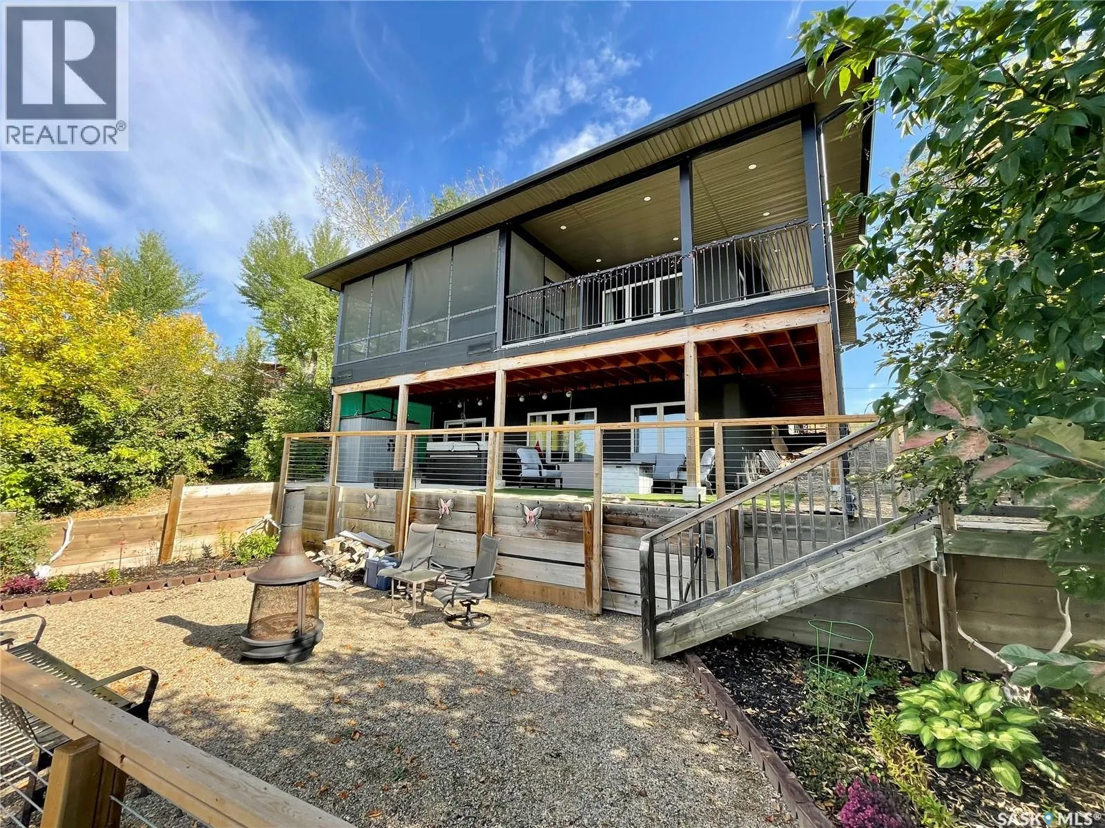 Welcome to 402 Abel Dr. located at Crooked Lake Sk. Don't let this one pass you by, you truly have to view to fully appreciate the layout and pride in ownership. ENJOY lake front living at its best year round with this beautiful walkout bungalow that offers approx. 1,996 sq. f. of total living space, that doesn't even include the huge double attached heated garage that feels more like part of the house then an actual garage (which has a 3 piece bathroom and laundry area). This open concept layout with its large island kitchen has breath taking views of the lake from one end to the other. There is 3 total bedrooms / 3 bathrooms, with the master suite on the walkout level. Outside this home there is numerous places to relax and enjoy the amazing lake views from the screened in sunroom off the main level or the hot tub and sitting area off the walkout level. Seller states the well is approx. 140-150 feet deep and septic tank 1000 gal. (id:27476)