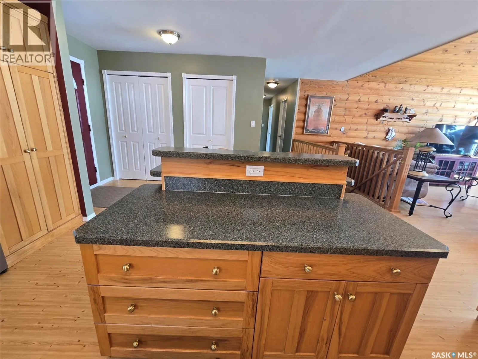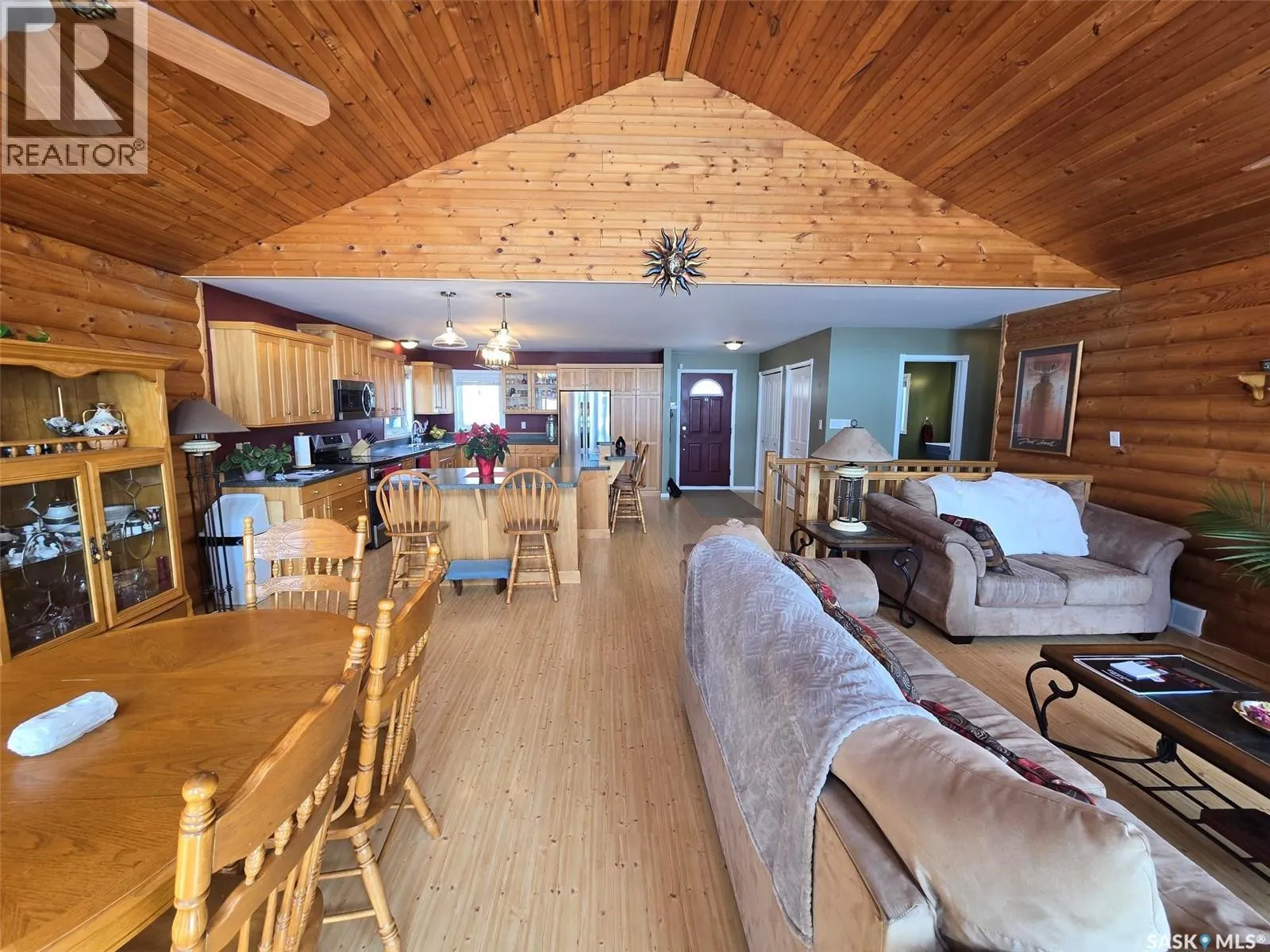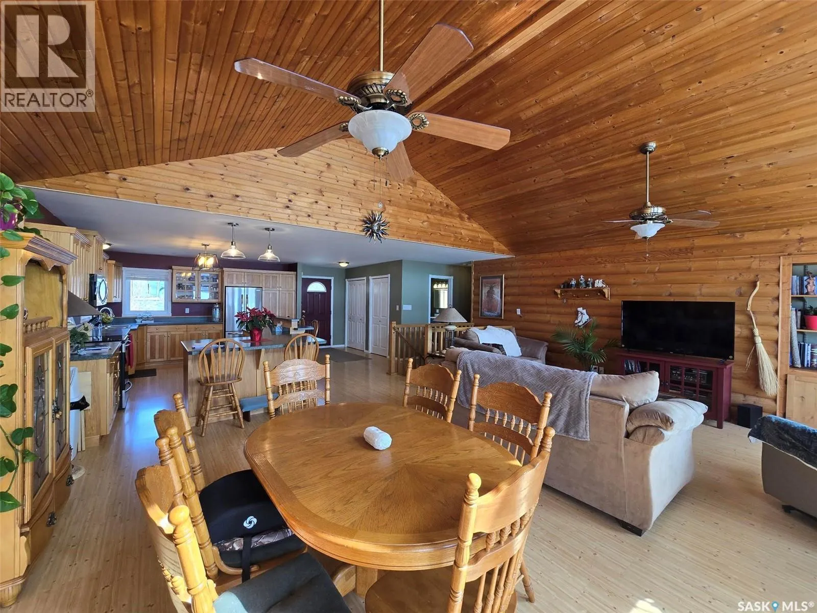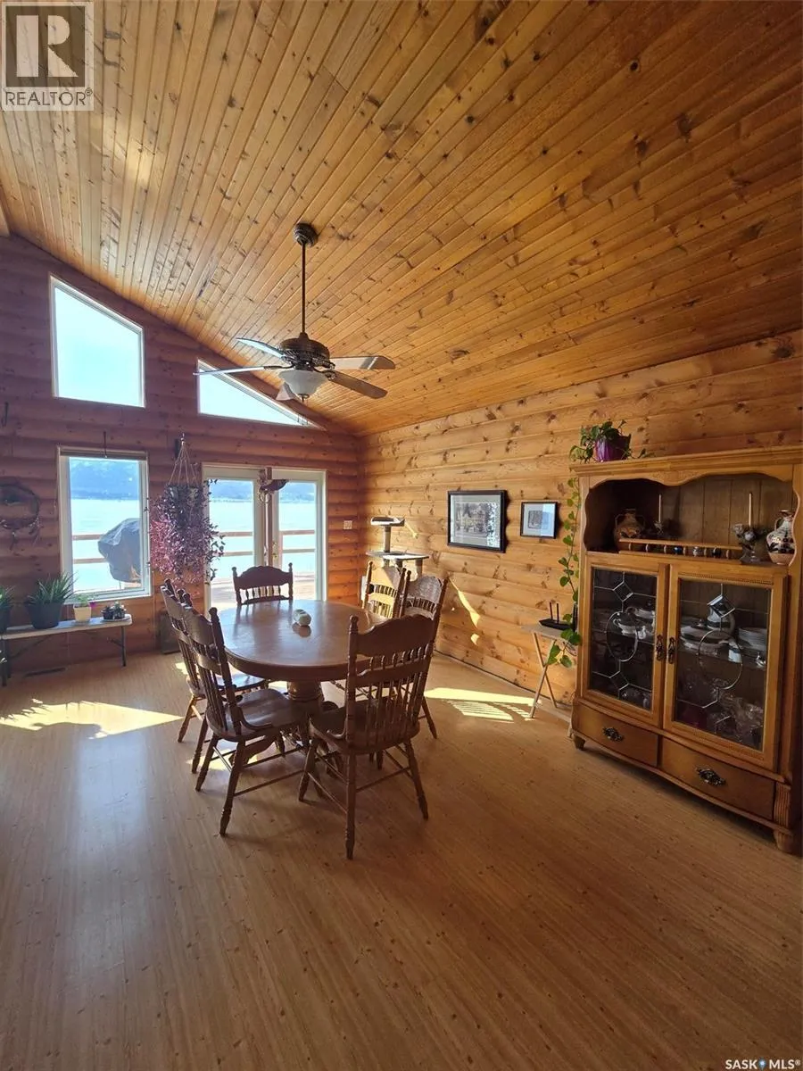 Sunsets are breathtaking at 104 Elk Road , Crooked Lake in this 3 bedroom plus 2 bath all season home with a combined total of just over 3000 sq ft. This property offers more than that though with lake front lifestyle in a log style bungalow built in 2002 with an amazing yard. Be close to nature with no direct neighbours on either side on this leased lot. The home boasts vaulted ceilings in the front living room, with south west windows allowing natural light to filter through all day. The kitchen is massive for all the company that lake life brings. There are 2 islands, one with a breakfast bar area and one is moveable with seating. Birch cabinets warm the space and provide lots of storage. Stainless steel appliances are quite new to include the BI dishwasher, fridge, stove, and microwave hood fan. Lighting has been updated. The 3 piece bath down the hall is spacious and has been renovated. Main floor laundry is situated in the Jack n' Jill bathroom off the Primary bedroom. This 4 piece bath has a jet tub and walk in shower. Wake up to the view of the lake in the Primary room , lots of closet space. Across the hall , a second bedroom. The walk out basement will be a great area to set up a gym, a rec space, extra family room , and hosts a 3rd bedroom. Boat house access on this level or turn it into a "Man Cave" , a place to set up a work shop. This sale will include a Hydo- pool Hot tub approx 6 years old, currently being used with minerals. There is a change room/ lean-to beside. Large storage shed found on the back side by the parking area. Lake life is all about the outdoors, and the bottom deck and balcony will be your favorite location. Septic - 1200 Concrete, Eco green Tank for propane, comes with dock and track. Lease is $2838 due in Dec and tax is $3106 due in Sept. Financing is available with terms and conditions . Water is delivered to home and stored in poly tank. This property is on a "No Through Road" come check it out before summer disappears. (id:27476)