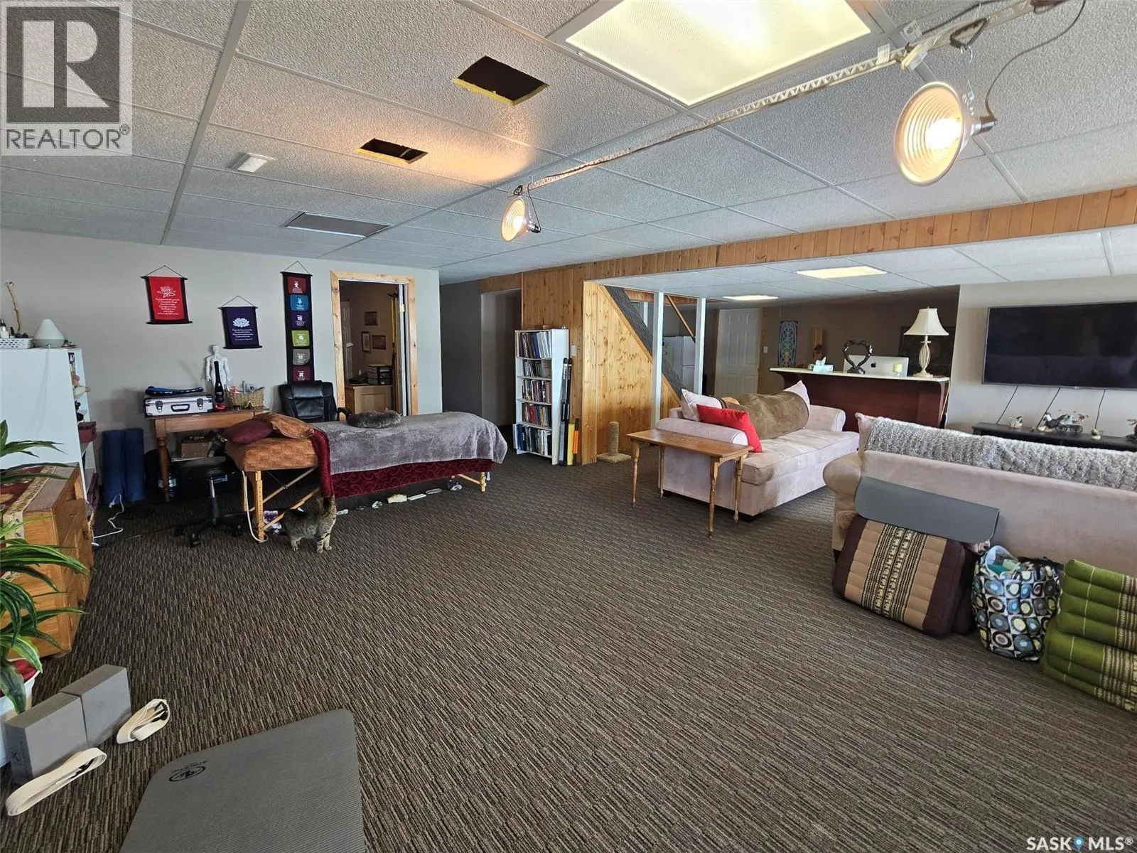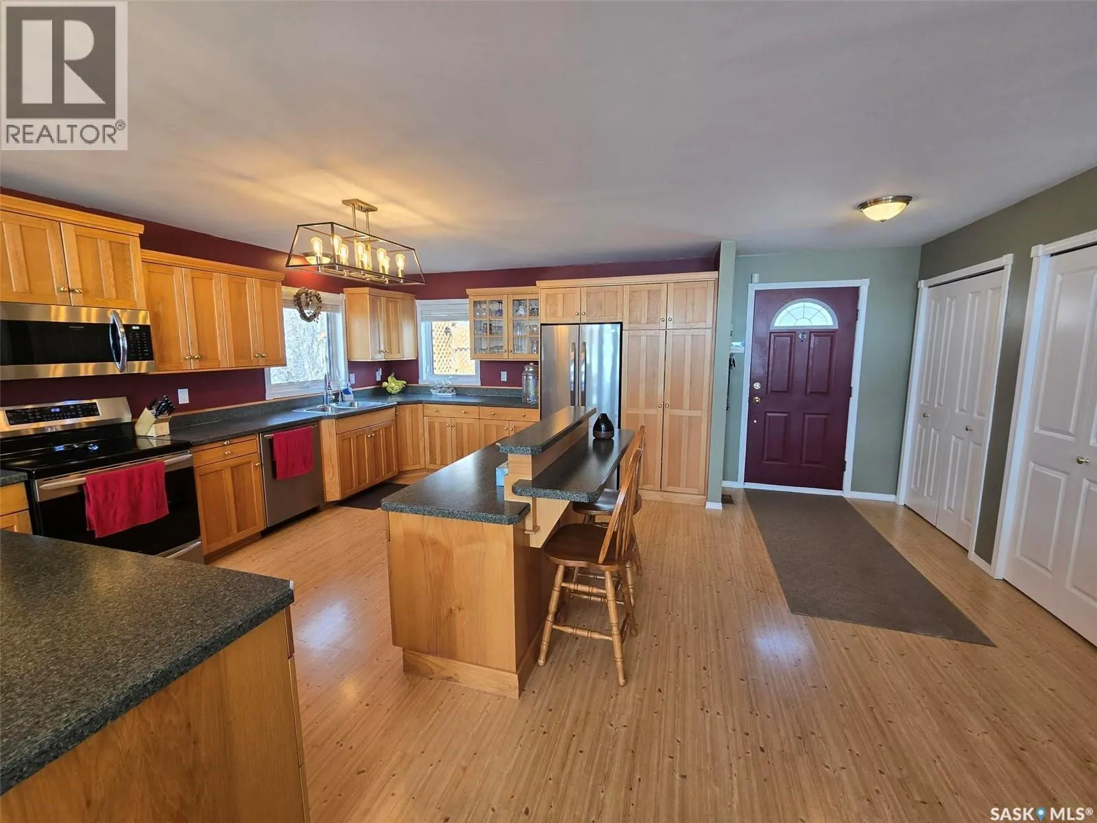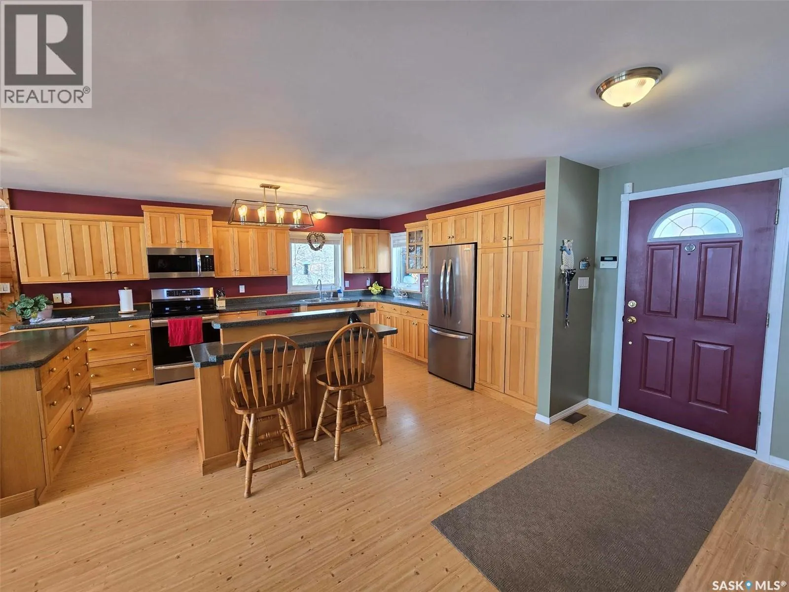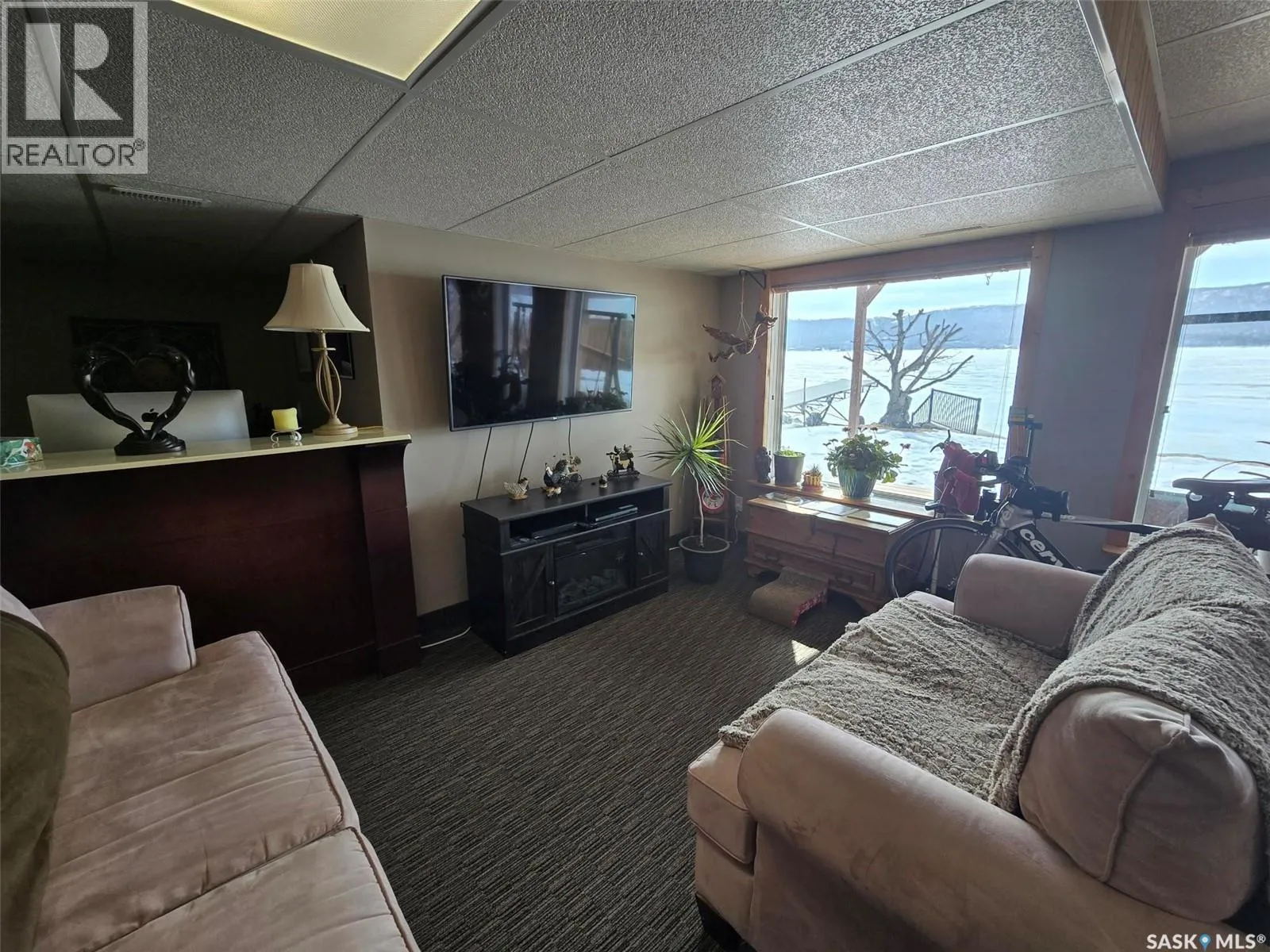 Sunsets are breathtaking at 104 Elk Road , Crooked Lake in this 3 bedroom plus 2 bath all season home with a combined total of just over 3000 sq ft. This property offers more than that though with lake front lifestyle in a log style bungalow built in 2002 with an amazing yard. Be close to nature with no direct neighbours on either side on this leased lot. The home boasts vaulted ceilings in the front living room, with south west windows allowing natural light to filter through all day. The kitchen is massive for all the company that lake life brings. There are 2 islands, one with a breakfast bar area and one is moveable with seating. Birch cabinets warm the space and provide lots of storage. Stainless steel appliances are quite new to include the BI dishwasher, fridge, stove, and microwave hood fan. Lighting has been updated. The 3 piece bath down the hall is spacious and has been renovated. Main floor laundry is situated in the Jack n' Jill bathroom off the Primary bedroom. This 4 piece bath has a jet tub and walk in shower. Wake up to the view of the lake in the Primary room , lots of closet space. Across the hall , a second bedroom. The walk out basement will be a great area to set up a gym, a rec space, extra family room , and hosts a 3rd bedroom. Boat house access on this level or turn it into a "Man Cave" , a place to set up a work shop. This sale will include a Hydo- pool Hot tub approx 6 years old, currently being used with minerals. There is a change room/ lean-to beside. Large storage shed found on the back side by the parking area. Lake life is all about the outdoors, and the bottom deck and balcony will be your favorite location. Septic - 1200 Concrete, Eco green Tank for propane, comes with dock and track. Lease is $2838 due in Dec and tax is $3106 due in Sept. Financing is available with terms and conditions . Water is delivered to home and stored in poly tank. This property is on a "No Through Road" come check it out before summer disappears. (id:27476)