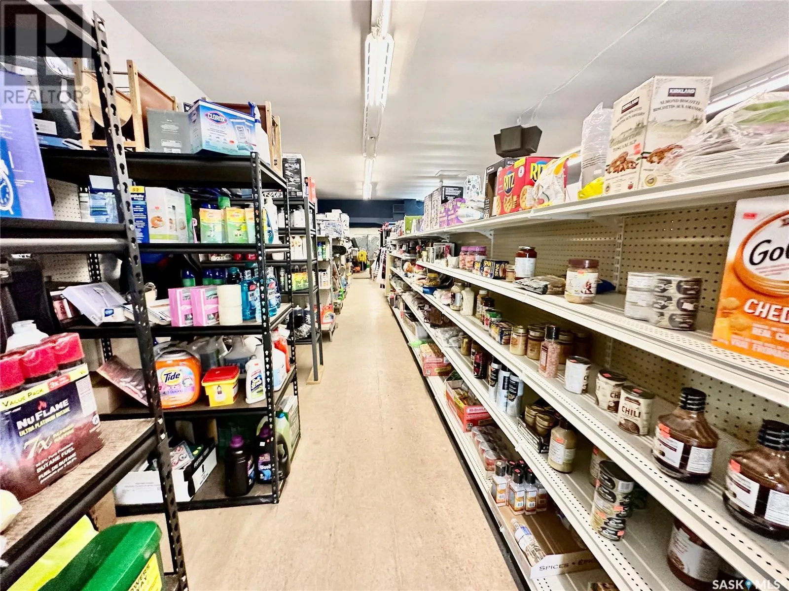 A lucrative business opportunity in the vibrant Town of Cudworth, just 80km less than 50 mins driving from Saskatoon. This popular grocery store / liquidation centre (Clearance Distributor of Costco Wholesale with very stable inventory supplies) draws a large clientele base from several towns in the area. This popular outlet has been in business for many years and it always has great cash flow. The building boasts great retail and warehouse space, garage in the rear of building and one LIVING QUARTER (1 bedroom, 1 living room with wet bar and 3pc bath). The furnace was replaced in 2015 and shingles was replaced in 2020. Inventory is not included. Easy to manage and great potential to growth. Don't pass this one up! (id:27476)