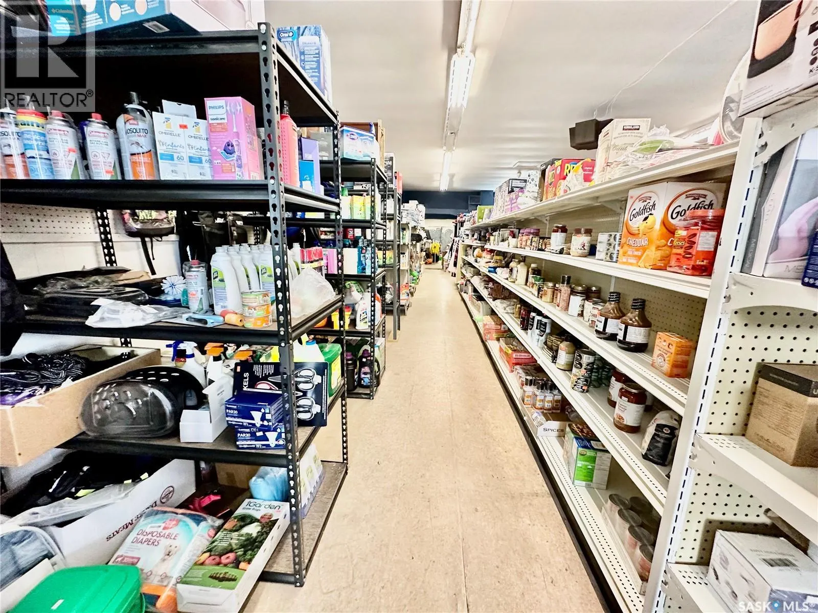 A lucrative business opportunity in the vibrant Town of Cudworth, just 80km less than 50 mins driving from Saskatoon. This popular grocery store / liquidation centre (Clearance Distributor of Costco Wholesale with very stable inventory supplies) draws a large clientele base from several towns in the area. This popular outlet has been in business for many years and it always has great cash flow. The building boasts great retail and warehouse space, garage in the rear of building and one LIVING QUARTER (1 bedroom, 1 living room with wet bar and 3pc bath). The furnace was replaced in 2015 and shingles was replaced in 2020. Inventory is not included. Easy to manage and great potential to growth. Don't pass this one up! (id:27476)