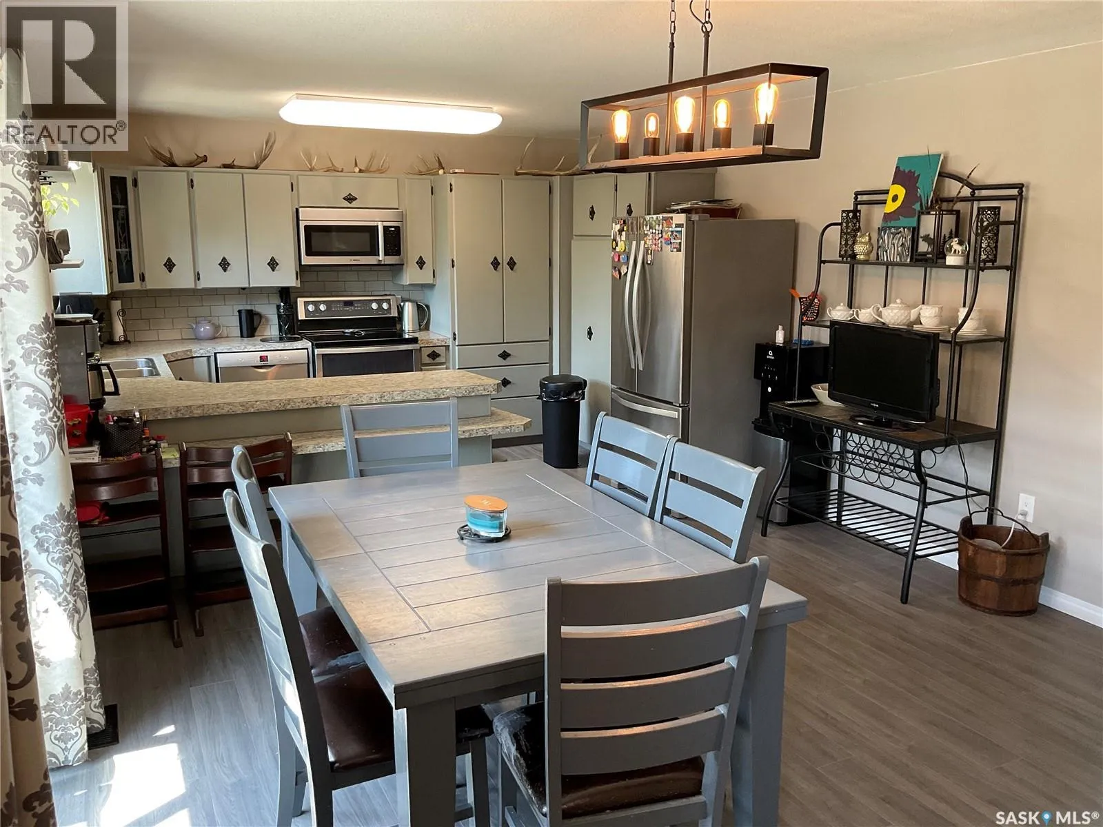 Welcome to Cudworth! A small town in between Saskatoon, Humboldt, Melfort, and Prince Albert. Take a look at this renovated 1386 sq ft bungalow on a huge corner lot. With 3 bedrooms, 1 bathroom and an en-suite upstairs, you will find 2 bedrooms and a 4 piece bathroom downstairs. The sunk in living has large North facing windows with a wood burning fireplace, perfect for the cool evenings to warm up in. The kitchen has a lot of counter space and cupboards with new stainless steel appliances. Downstairs is an amazing space for the kids, entertaining or simple a larger family space with an area that has a countertop, sink and cupboards. It will be hard to find a property like this with over 1/3 of an acre. A brand new deck off the back door and a triple detached garage with over 10 parking spaces. You have to see this house to appreciate it. (id:27476)