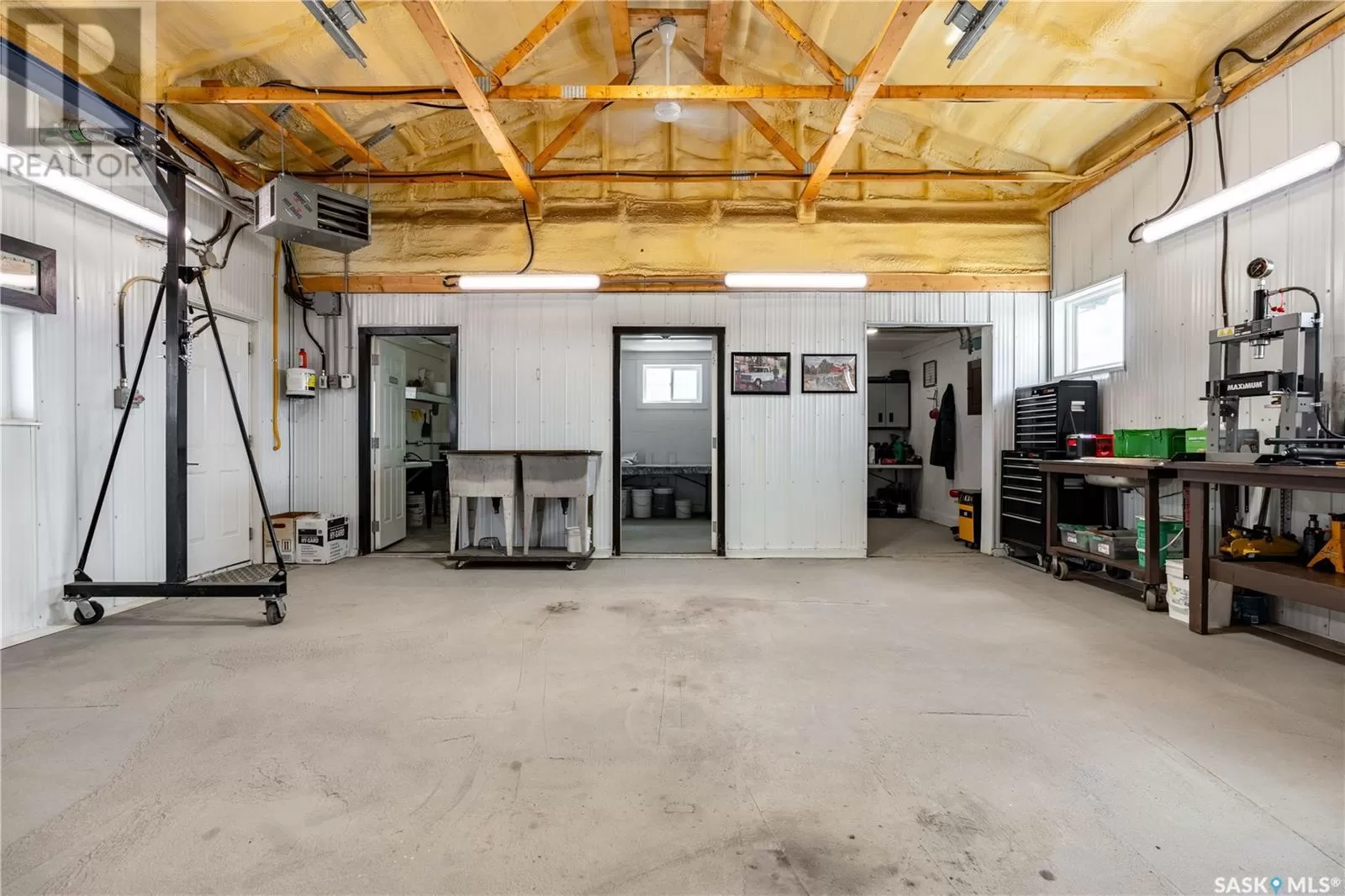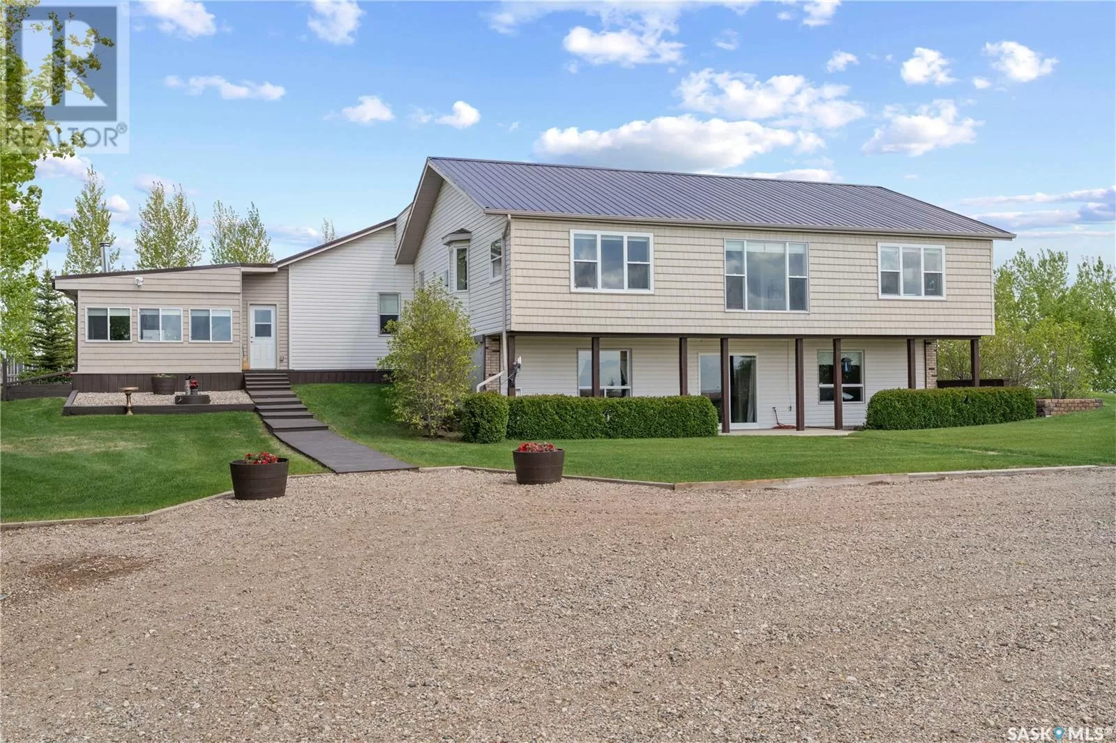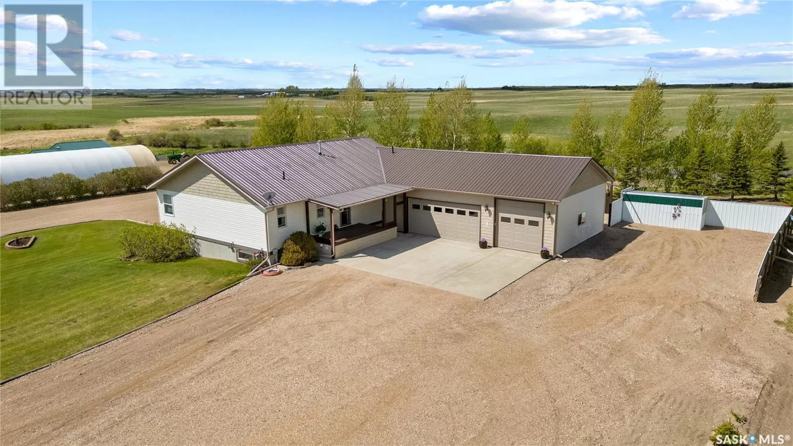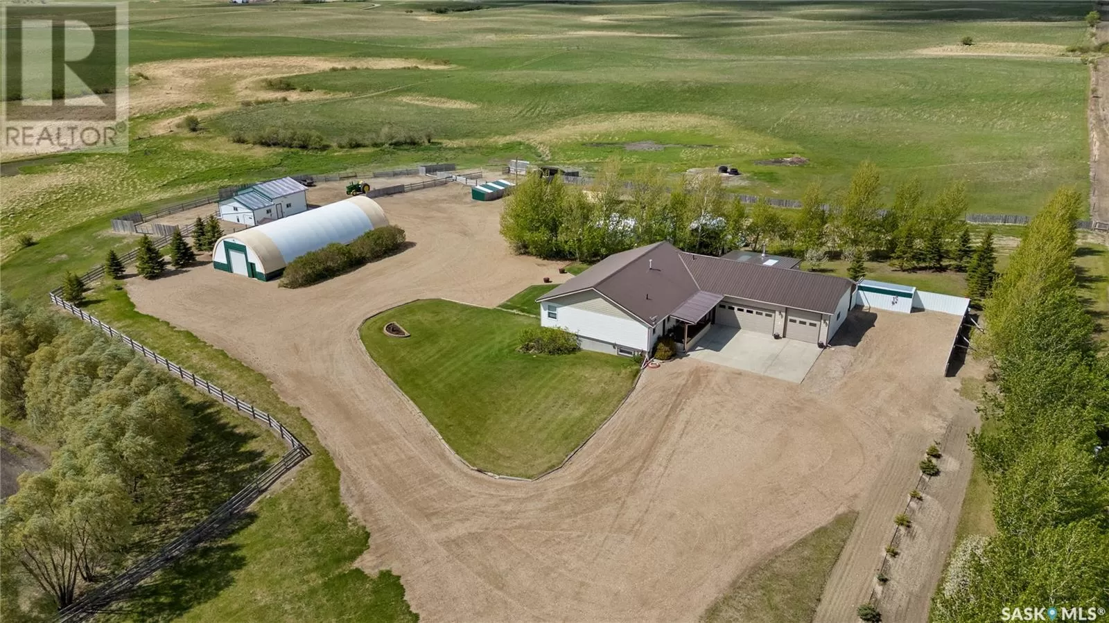 Approximately 50 km from Regina city limits is where you will find this awesome property of approx 20 acres, well established shelter belt, garden area and variety of fruit trees. Excellent 2007 built bungalow with a great walk out basement. Features Include, large front entry, very open floor plan. Large south facing windows overlooking the yard. Kitchen has ample cabinet space and corner pantry, Primary bedroom on the main floor with 5 piece ensuite, and also on the main floor is the laundry and 1/2 bath. In the bright walk-out basement is the family room with gas fireplace, den/office, 2 large bedrooms, 4 piece bath and mechanical area. Direct entry from the main floor into the 25x40 heated garage which also has the cold room in it and off the back of the garage is the bonus room with wood burning stove. The out buildings include 30x70 Coverall building with chain hoist overhead doors at each end, 24x36 heated shop(propane furnace)insulated with spray foam, 3 additional metal clad sheds(one insulated with spray foam), wood storage shed and garden shed. Utilities to the house; natural gas, power, private well, septic tank with surface pump out current owners use shaw for TV and explore net for internet. Just 10 miles to Southey which offers elementary and high school(bussing from property), grocery, fuel, health centre, RCMP as well as many other services. www.southey.ca (id:27476)
