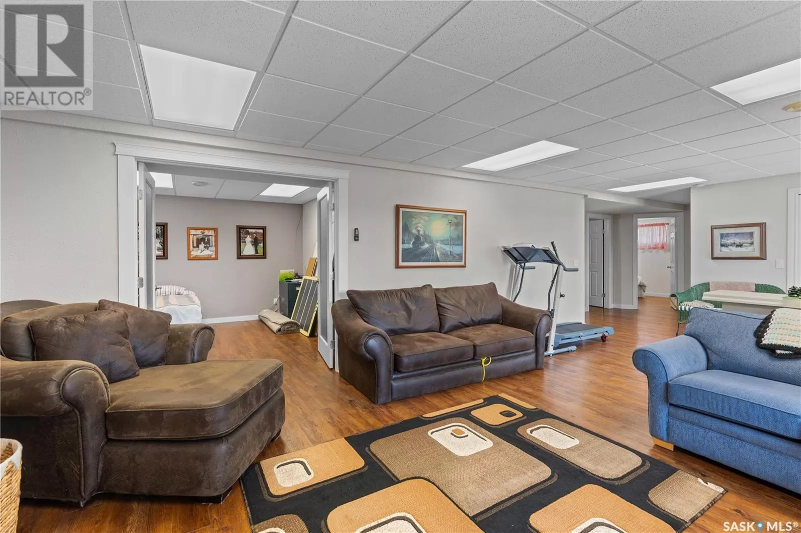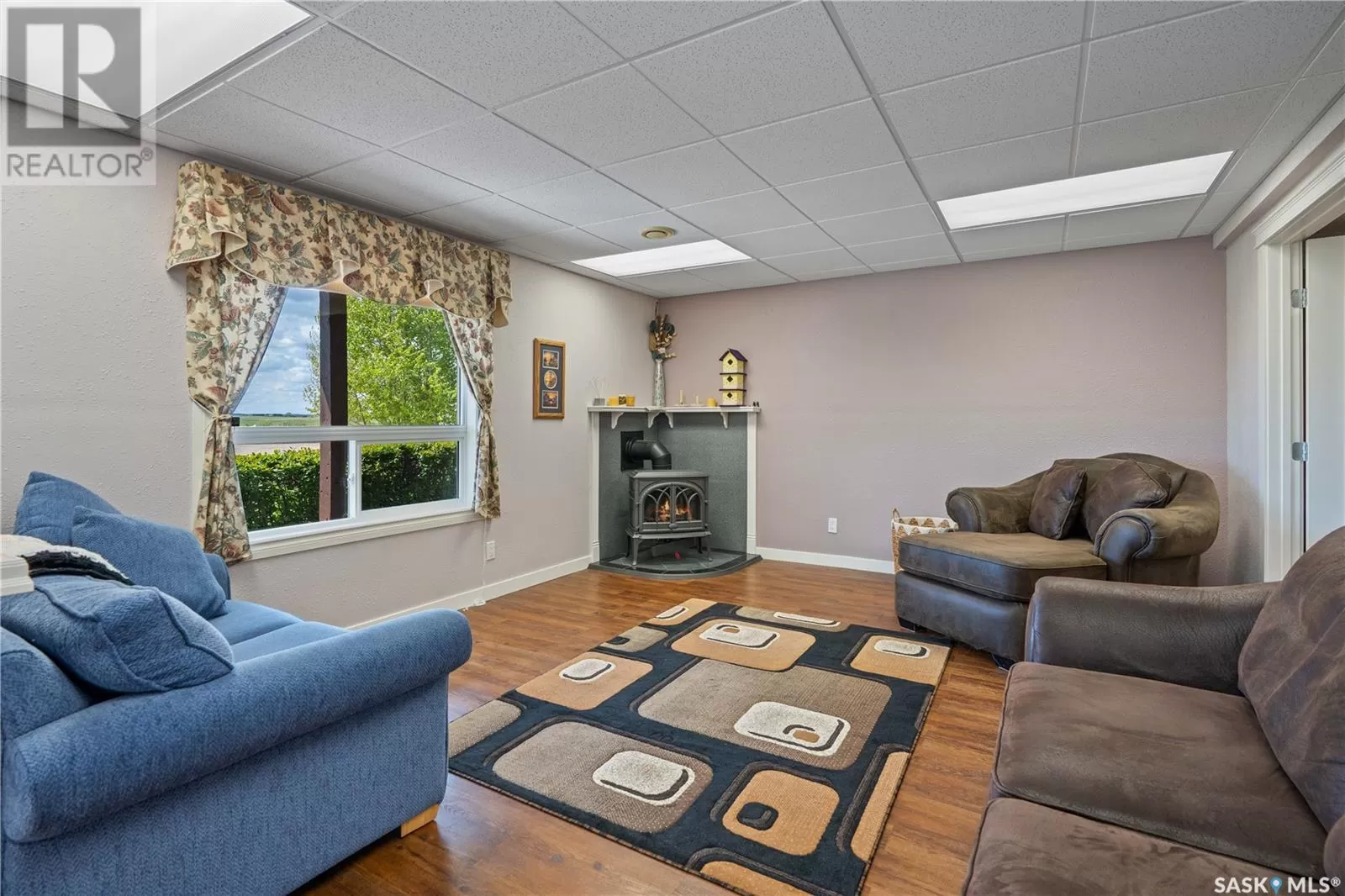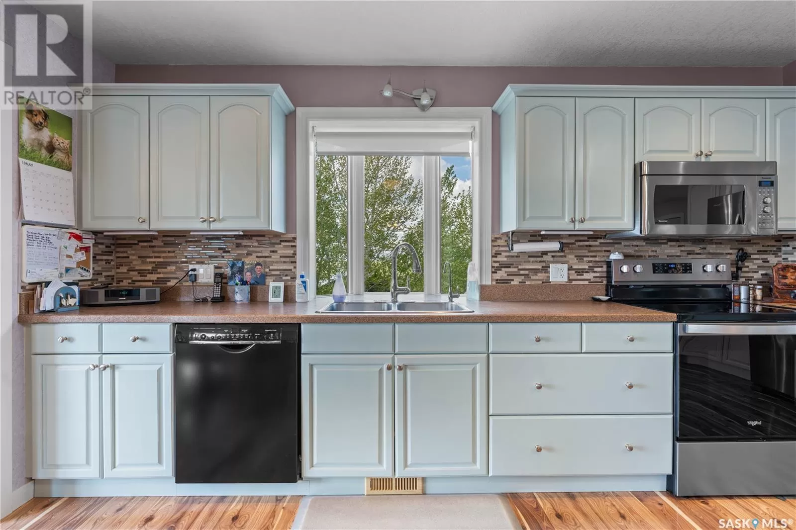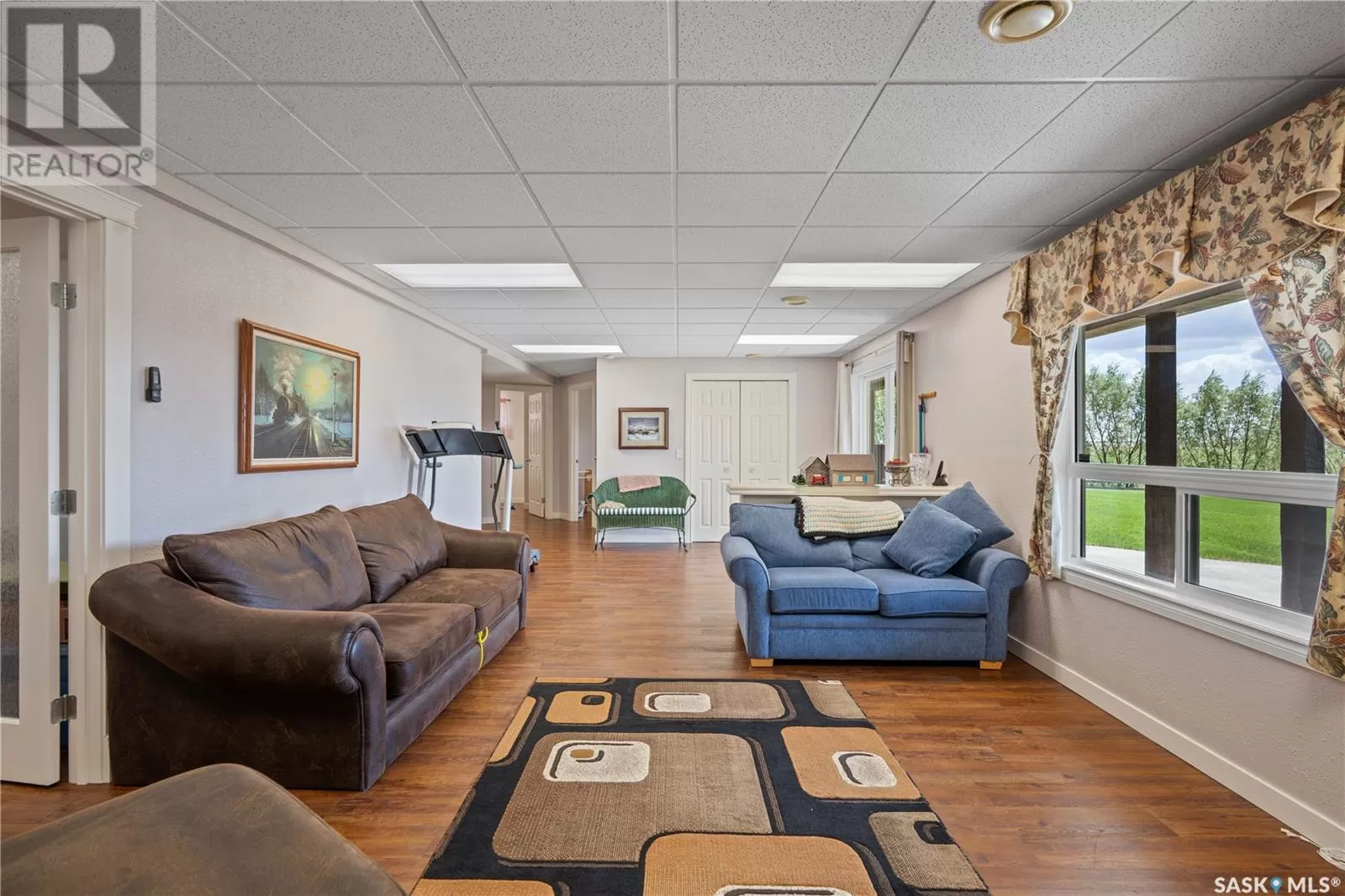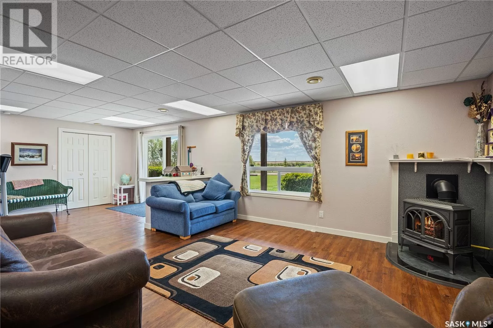 Approximately 50 km from Regina city limits is where you will find this awesome property of approx 20 acres, well established shelter belt, garden area and variety of fruit trees. Excellent 2007 built bungalow with a great walk out basement. Features Include, large front entry, very open floor plan. Large south facing windows overlooking the yard. Kitchen has ample cabinet space and corner pantry, Primary bedroom on the main floor with 5 piece ensuite, and also on the main floor is the laundry and 1/2 bath. In the bright walk-out basement is the family room with gas fireplace, den/office, 2 large bedrooms, 4 piece bath and mechanical area. Direct entry from the main floor into the 25x40 heated garage which also has the cold room in it and off the back of the garage is the bonus room with wood burning stove. The out buildings include 30x70 Coverall building with chain hoist overhead doors at each end, 24x36 heated shop(propane furnace)insulated with spray foam, 3 additional metal clad sheds(one insulated with spray foam), wood storage shed and garden shed. Utilities to the house; natural gas, power, private well, septic tank with surface pump out current owners use shaw for TV and explore net for internet. Just 10 miles to Southey which offers elementary and high school(bussing from property), grocery, fuel, health centre, RCMP as well as many other services. www.southey.ca (id:27476)