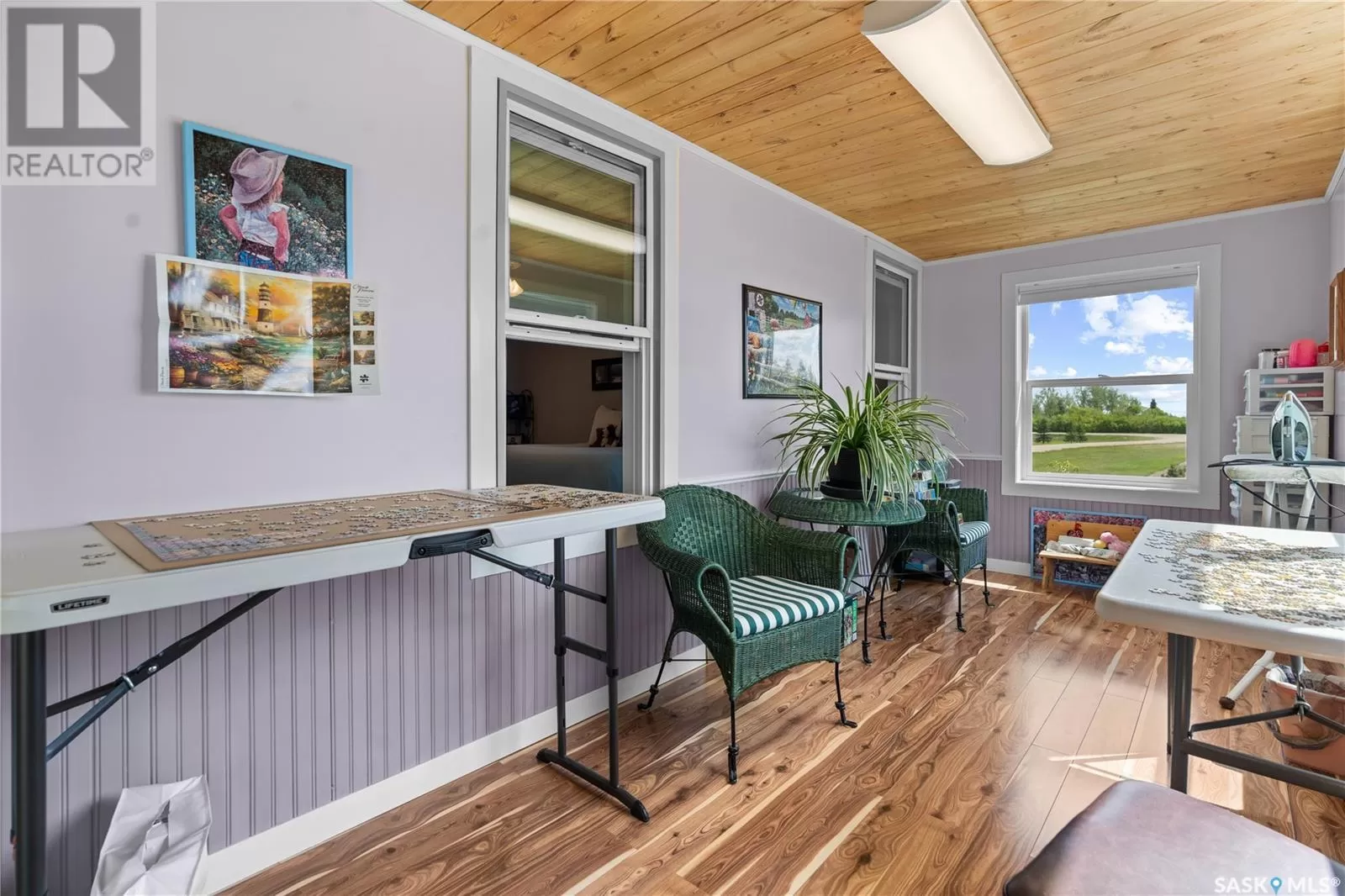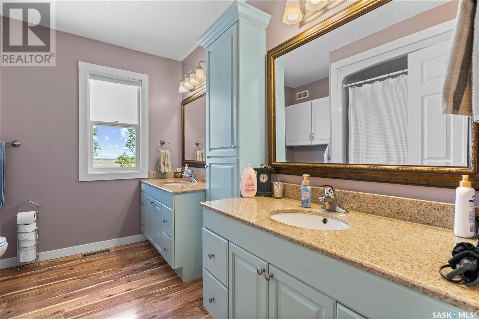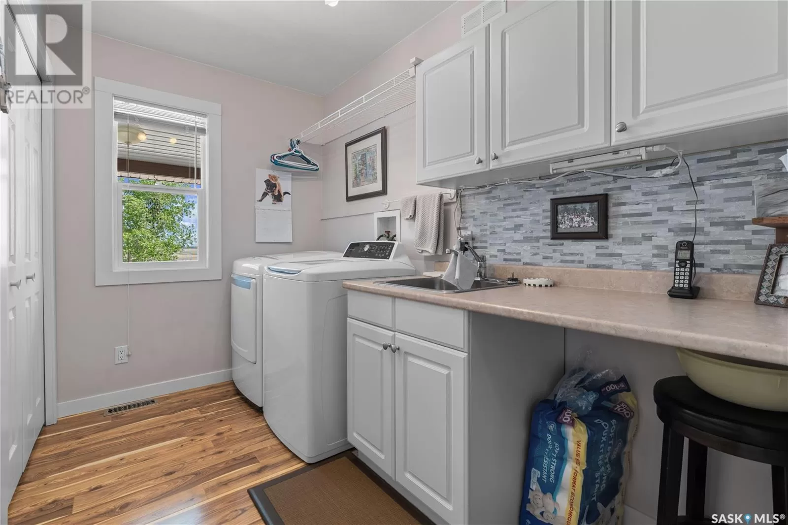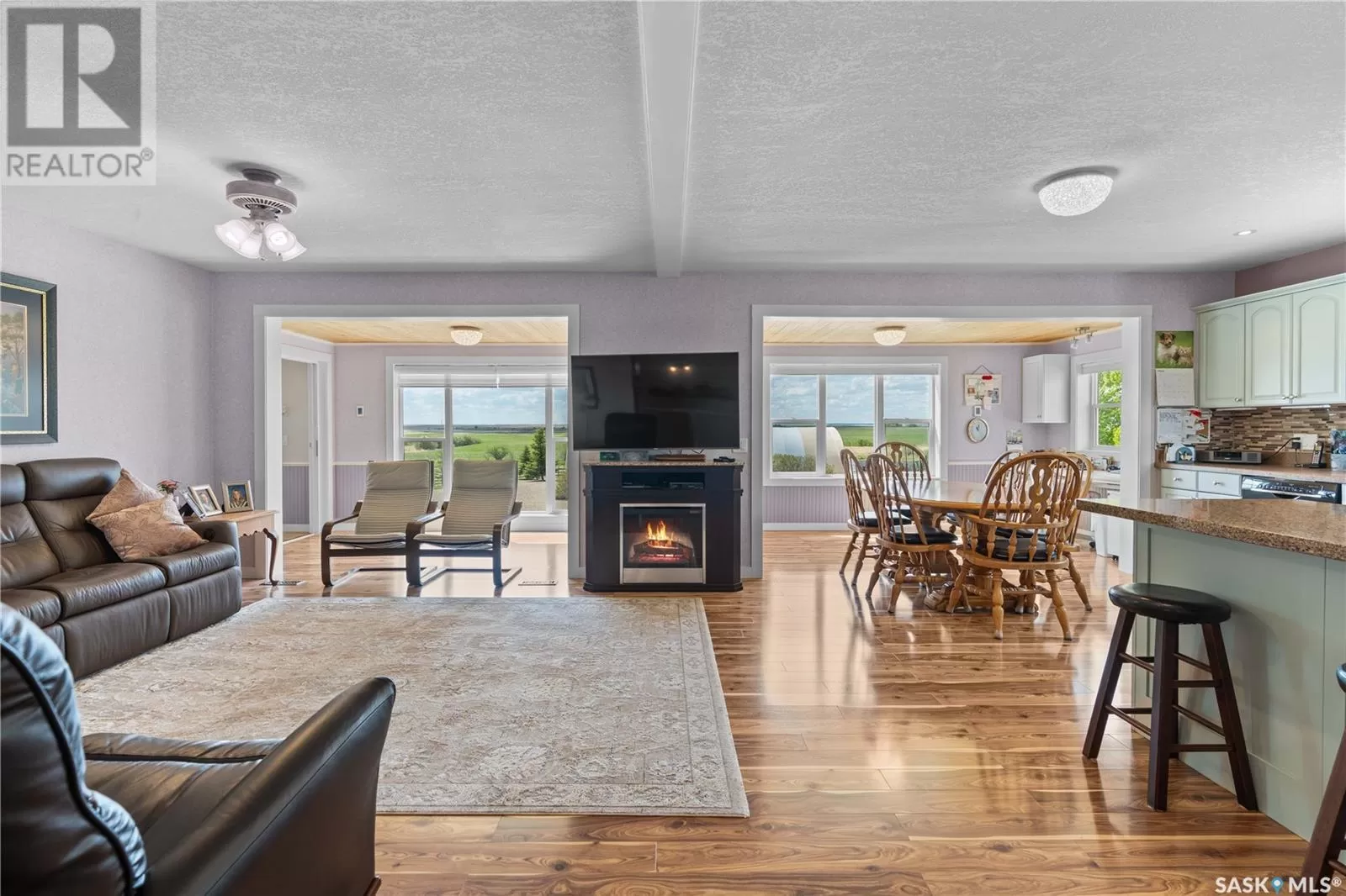 Approximately 50 km from Regina city limits is where you will find this awesome property of approx 20 acres, well established shelter belt, garden area and variety of fruit trees. Excellent 2007 built bungalow with a great walk out basement. Features Include, large front entry, very open floor plan. Large south facing windows overlooking the yard. Kitchen has ample cabinet space and corner pantry, Primary bedroom on the main floor with 5 piece ensuite, and also on the main floor is the laundry and 1/2 bath. In the bright walk-out basement is the family room with gas fireplace, den/office, 2 large bedrooms, 4 piece bath and mechanical area. Direct entry from the main floor into the 25x40 heated garage which also has the cold room in it and off the back of the garage is the bonus room with wood burning stove. The out buildings include 30x70 Coverall building with chain hoist overhead doors at each end, 24x36 heated shop(propane furnace)insulated with spray foam, 3 additional metal clad sheds(one insulated with spray foam), wood storage shed and garden shed. Utilities to the house; natural gas, power, private well, septic tank with surface pump out current owners use shaw for TV and explore net for internet. Just 10 miles to Southey which offers elementary and high school(bussing from property), grocery, fuel, health centre, RCMP as well as many other services. www.southey.ca (id:27476)