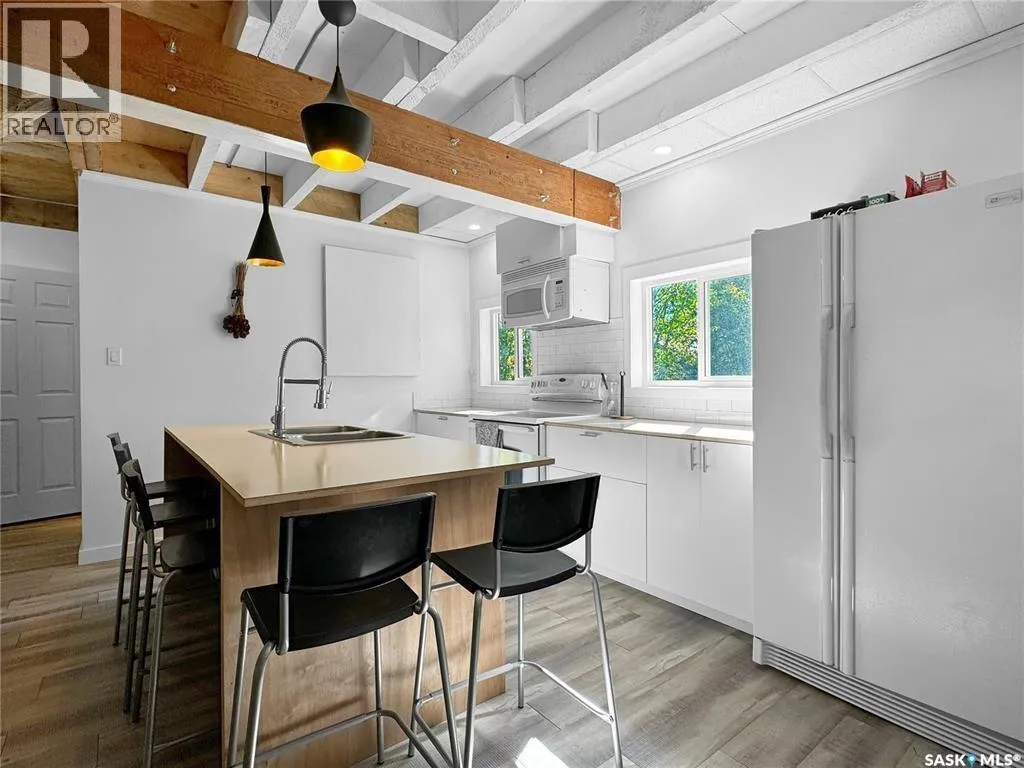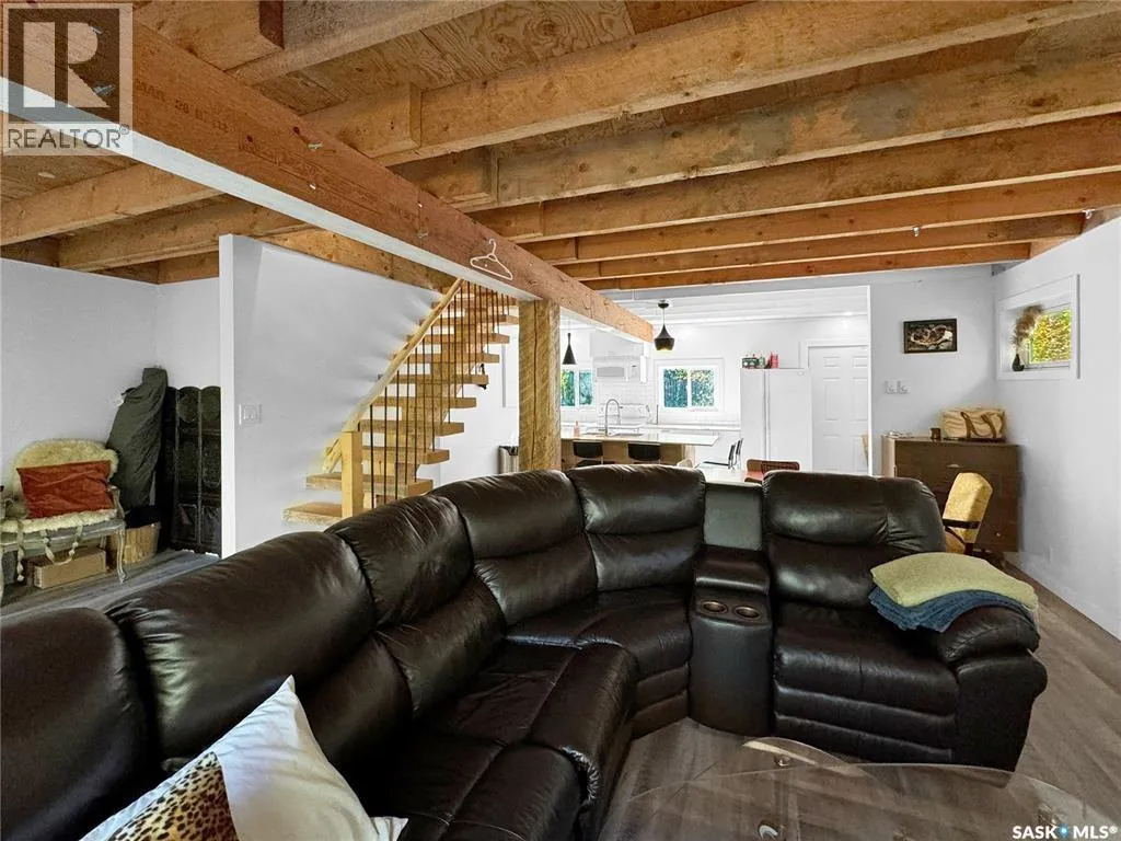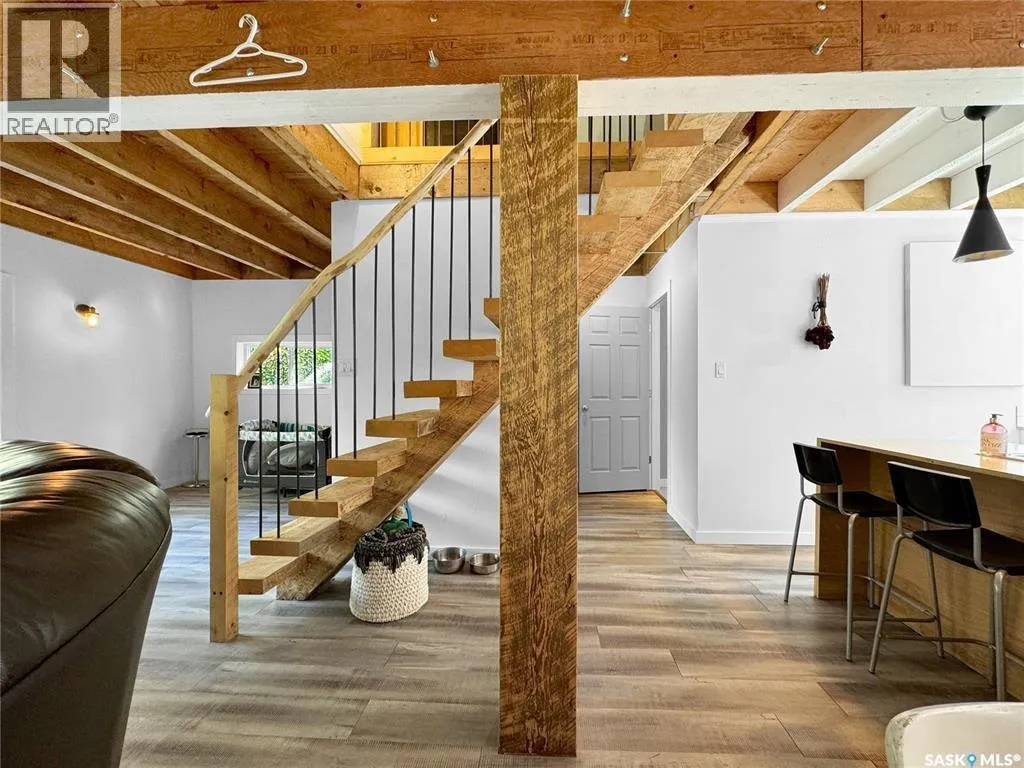 Attonâs Lake is an amazing retreat to make memories and spend time with family and friends. Relax and enjoy this beautiful modern cabin that is turn-key ready. Just a 2-minute walk to a beautiful sandy beach, with a lake that offers crystal clear water that will blow your mind. The main beach offers playground, ball diamonds and concession booth. Just up the road is a nine-hole Golf Course/clubhouse and pickleball court. The main floor offers an open concept with modern kitchen that includes an island and beautiful 4-piece bathroom. You will love the reclaimed timber and vinyl plank flooring throughout the main level. Beautiful wood carved open staircase leads us to the second floor, hosting a 2-piece bathroom, 2 very good-sized bedrooms and the 2 dormer areas allow for extra sofas/beds/futons and can be configured to accommodate all sorts of sleeping arrangements. Cabin can easily sleep 6. Enjoy the 2 large patio doors off the living room to a 10 x 24 deck. The backyard is surrounded by trees for amazing privacy to enjoy the nature, birds singing and backyard campfires. The large front yard allows a ton of parking and easy access for RV parking. Attached to the cabin is a storage which hosts hot water heater, and storage cistern for collecting rainwater. Lake is 35 min west of the Battlefords, close to Unity and Cut Knife. Enjoy affordable lake living at Attonâs Lake Regional Park! (id:27476)