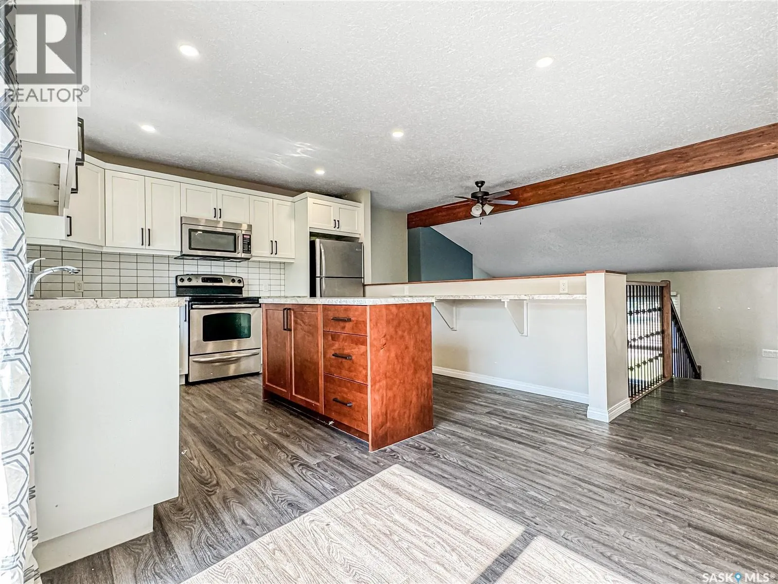 This bi-level home spans 1160 sq ft and boasts 5 bedrooms and 3 bathrooms, having undergone a full renovation a few years back. Step into the living room with an eye-catching electric fireplace right as you enter through the front door. Upstairs, revel in the bar-style seating in the kitchen overlooking the living room. The kitchen offers ample cupboard space, a sizable island, and seamlessly transitions into the dining area with patio doors leading to the deck for a peaceful backyard retreat. Continuing down the hallway, discover a 4-pc bathroom and 3 bedrooms, including a spacious master bedroom with a 3-piece en-suite. The main and second floors feature vinyl flooring, new windows, and doors. The basement showcases an updated 3-piece bathroom, 2 bedrooms and a rec room with charming stained pine walls. New furnace and central a/c added in 2020. Schedule your viewing today! (id:27476)