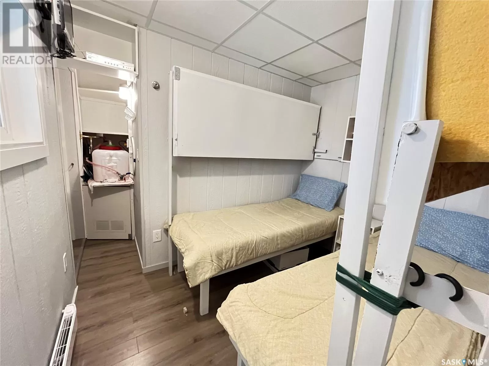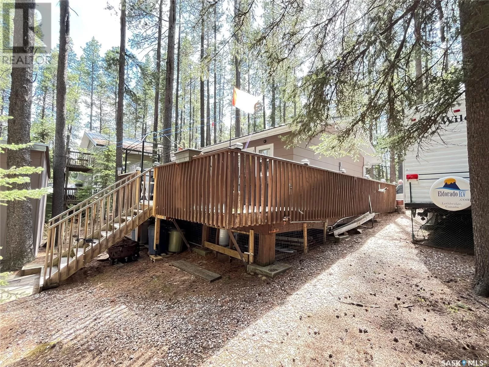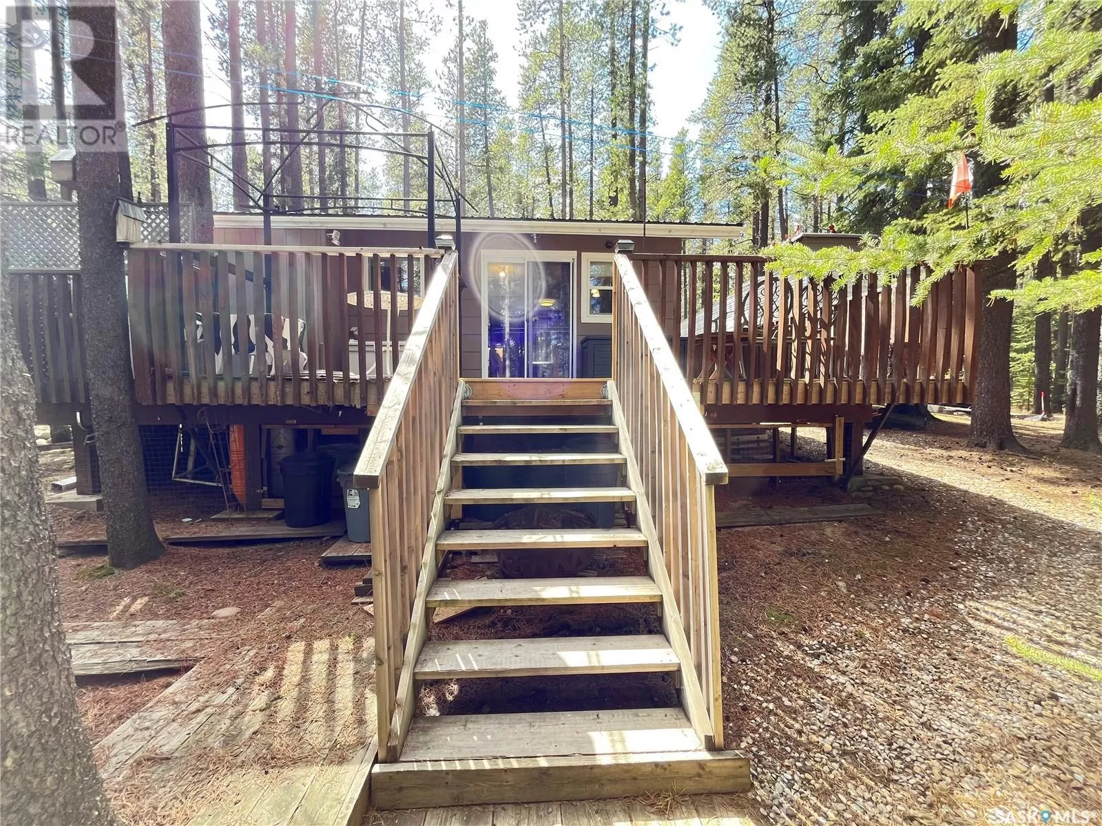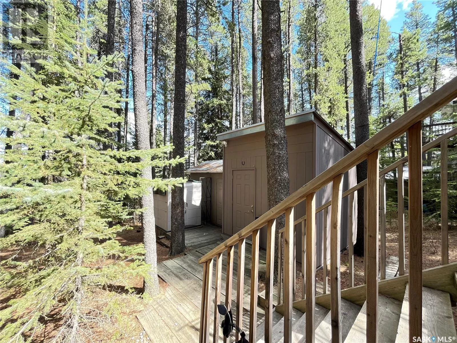 Immaculately maintained summer home. This little gem is gorgeous and being sold with existing furniture included. Set in Saskatchewan's Cypress Hills Provincial Park this 600 square foot cabin has a comfortable kitchen and entertainment space. With 2 bedrooms and 2 bathrooms there is plenty of room for the family. Upon entry you'll arrive in a spacious mudroom that doubles as one of the bedrooms. The second bedroom is at the back of the cabin and houses 2 sets of bunk beds at this time but the room does fit a queen bed comfortably if the bottom bunks do not suit your needs. For additional outside space please enjoy your time on the wrap around deck. Bring the fire pit out front for evening gatherings. The cabin was constructed with 2x6 walls and has new insulation and composite panelling. There is all new electrical and plumbing as well as blow in insulation in the attic. One side of the roof is shingles and were completed in 2013, the other side is metal and was just installed in 2022. There are 3 storage sheds and many items will be left there for your convenience including the BBQ, snowblower, generator and log splitter. Annual Park fees are approximately $1600 and the lease is not due for renewal until March 31, 2037. Call to book a tour. (id:27476)