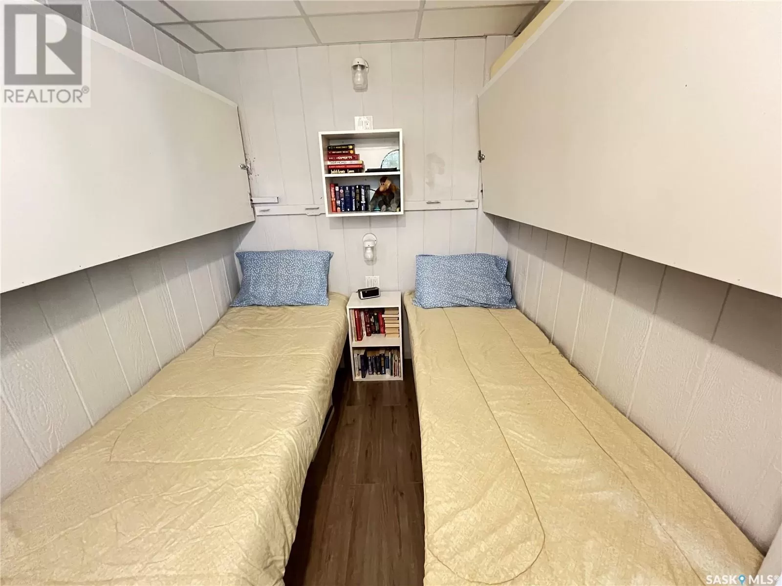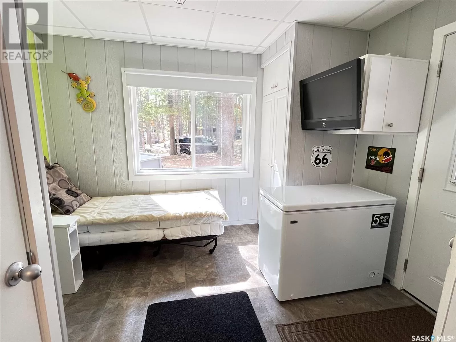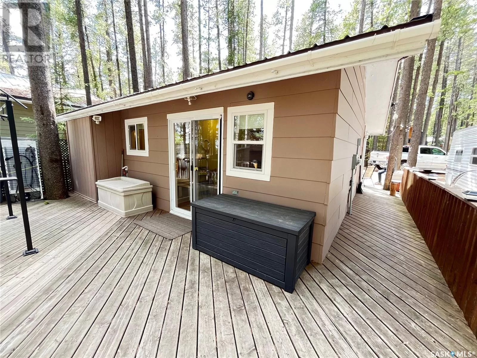 Immaculately maintained summer home. This little gem is gorgeous and being sold with existing furniture included. Set in Saskatchewan's Cypress Hills Provincial Park this 600 square foot cabin has a comfortable kitchen and entertainment space. With 2 bedrooms and 2 bathrooms there is plenty of room for the family. Upon entry you'll arrive in a spacious mudroom that doubles as one of the bedrooms. The second bedroom is at the back of the cabin and houses 2 sets of bunk beds at this time but the room does fit a queen bed comfortably if the bottom bunks do not suit your needs. For additional outside space please enjoy your time on the wrap around deck. Bring the fire pit out front for evening gatherings. The cabin was constructed with 2x6 walls and has new insulation and composite panelling. There is all new electrical and plumbing as well as blow in insulation in the attic. One side of the roof is shingles and were completed in 2013, the other side is metal and was just installed in 2022. There are 3 storage sheds and many items will be left there for your convenience including the BBQ, snowblower, generator and log splitter. Annual Park fees are approximately $1600 and the lease is not due for renewal until March 31, 2037. Call to book a tour. (id:27476)
