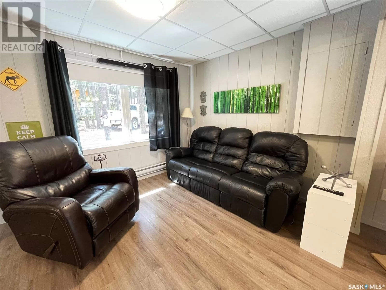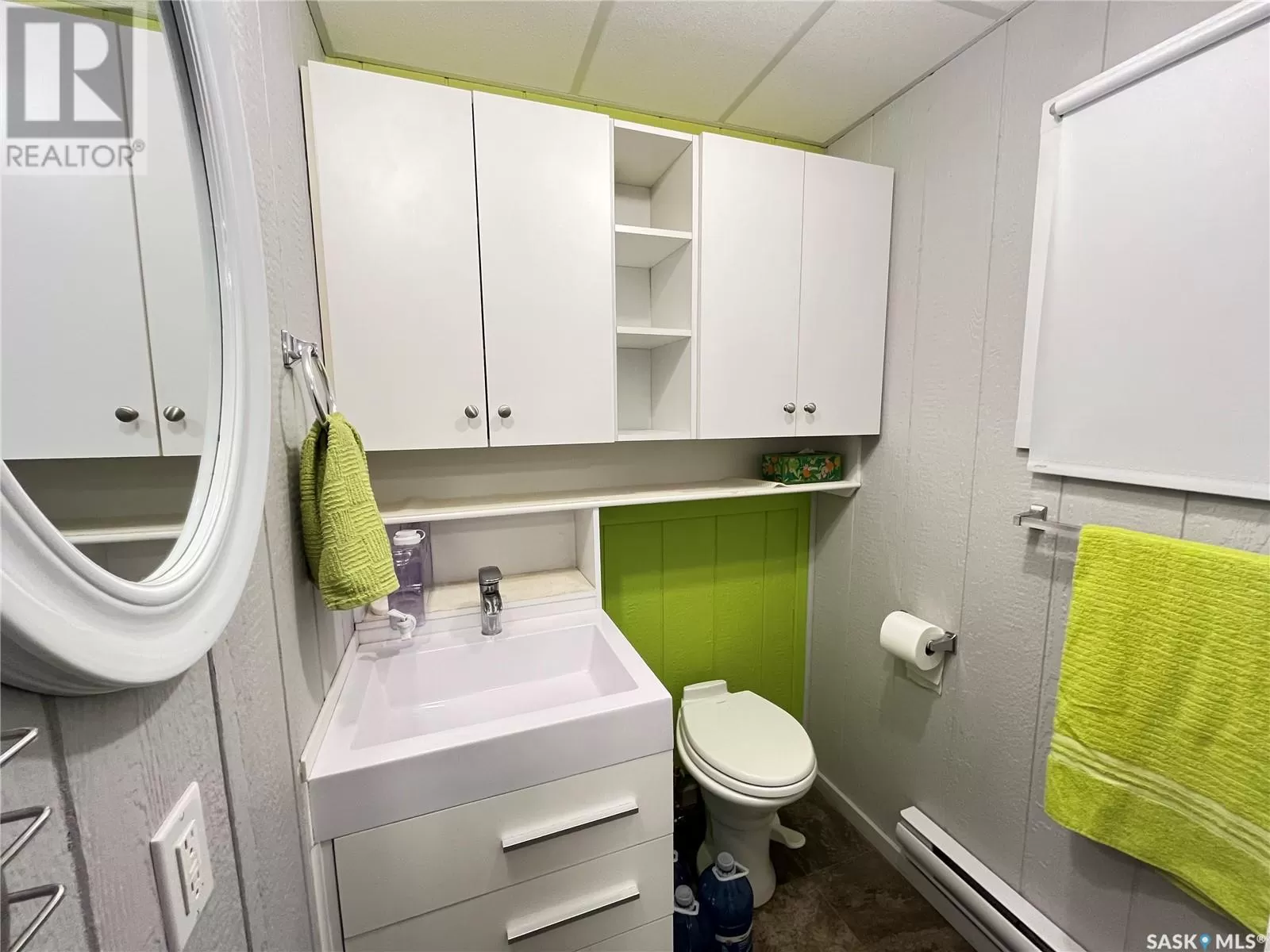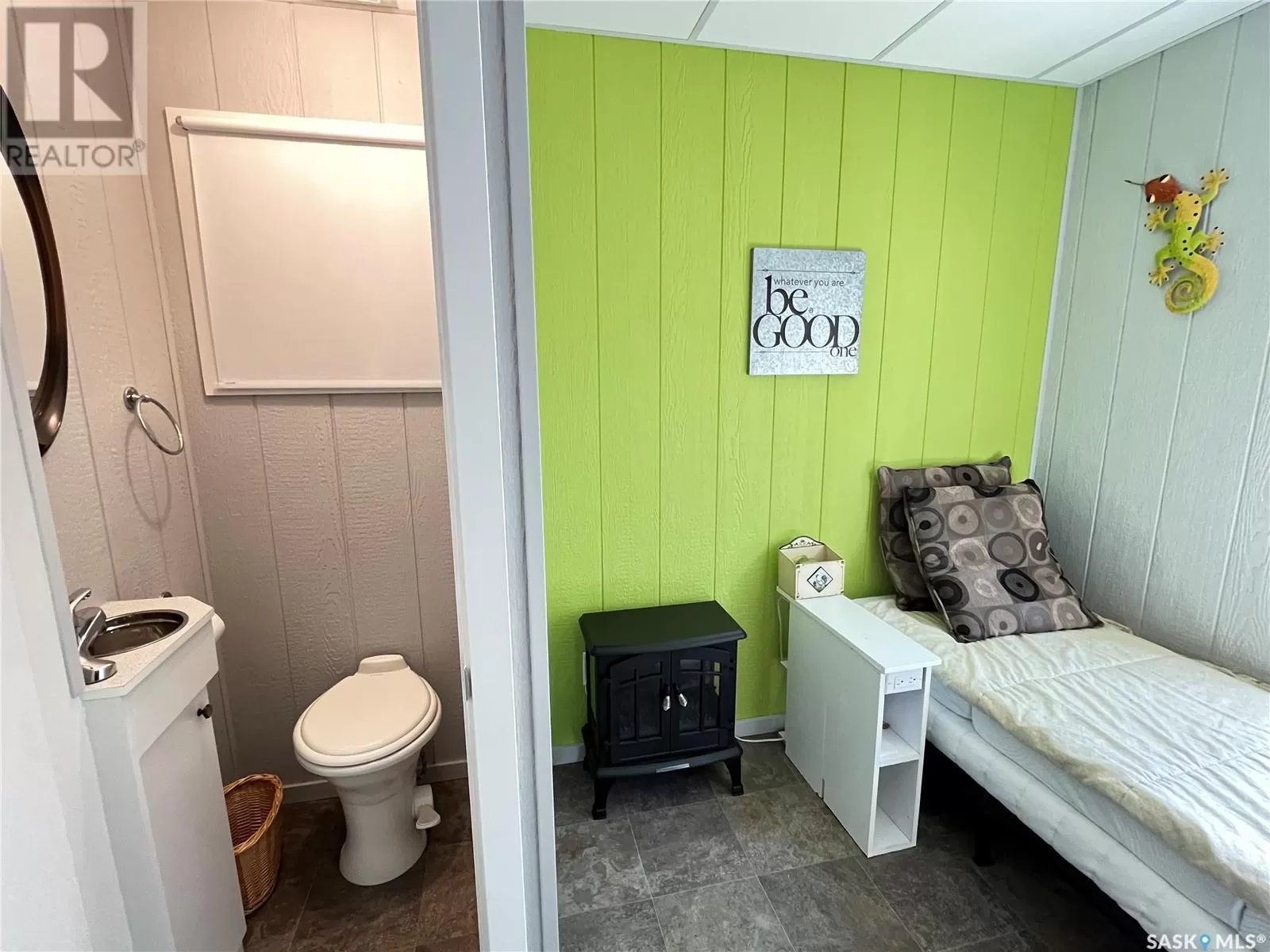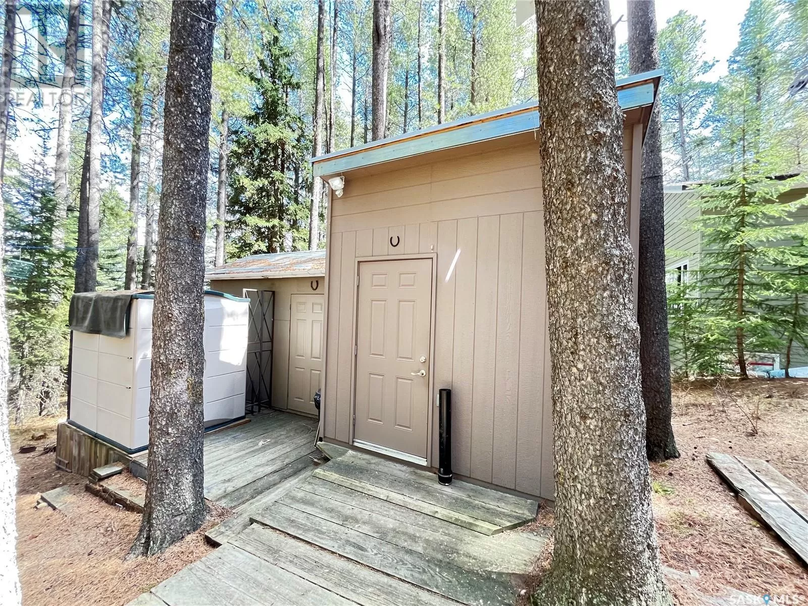 Immaculately maintained summer home. This little gem is gorgeous and being sold with existing furniture included. Set in Saskatchewan's Cypress Hills Provincial Park this 600 square foot cabin has a comfortable kitchen and entertainment space. With 2 bedrooms and 2 bathrooms there is plenty of room for the family. Upon entry you'll arrive in a spacious mudroom that doubles as one of the bedrooms. The second bedroom is at the back of the cabin and houses 2 sets of bunk beds at this time but the room does fit a queen bed comfortably if the bottom bunks do not suit your needs. For additional outside space please enjoy your time on the wrap around deck. Bring the fire pit out front for evening gatherings. The cabin was constructed with 2x6 walls and has new insulation and composite panelling. There is all new electrical and plumbing as well as blow in insulation in the attic. One side of the roof is shingles and were completed in 2013, the other side is metal and was just installed in 2022. There are 3 storage sheds and many items will be left there for your convenience including the BBQ, snowblower, generator and log splitter. Annual Park fees are approximately $1600 and the lease is not due for renewal until March 31, 2037. Call to book a tour. (id:27476)