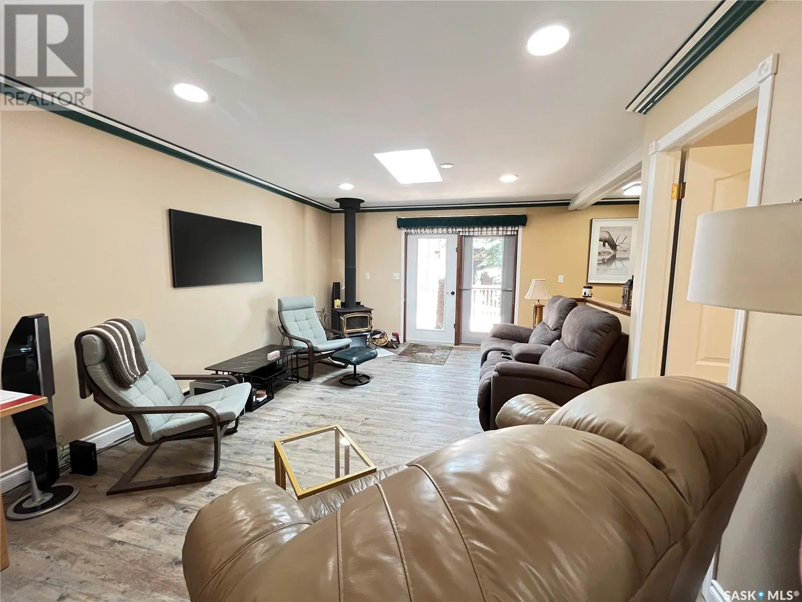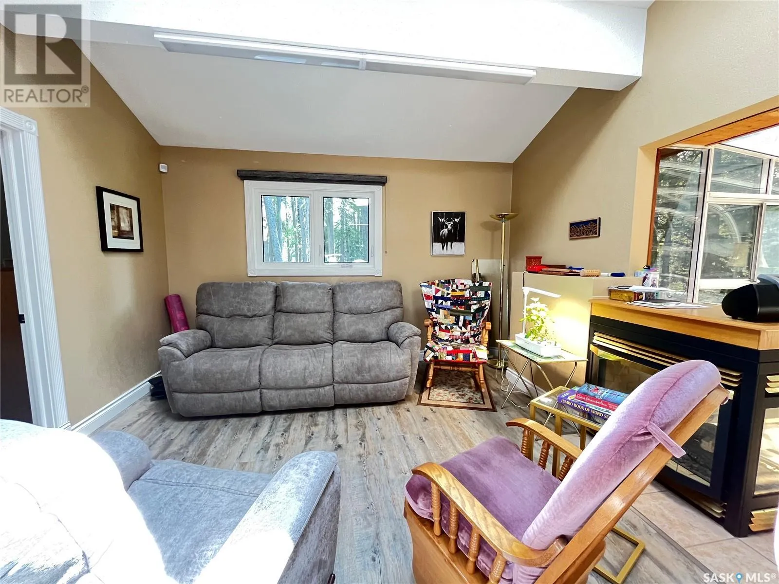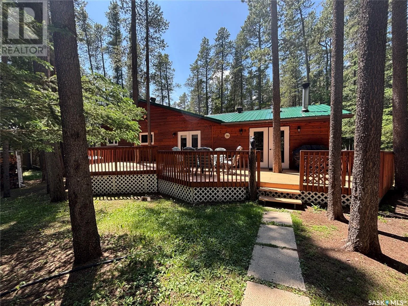 Live year round on the Saskatchewan side of Cypress Hills Provincial Park. This 3 bedroom 2 bathroom cabin has been immaculately maintained. Ask your realtor for the extensive list of upgrades and improvements - located in supplements. With a wrap around deck and a private yard this home offers plenty of outdoor space. There is a designated fire pit area (all the wood is included) as well as three storage sheds. Inside the home you'll find a gorgeous sunroom that doubles as the dining area. With a galley style kitchen that separates the living room and den the home has plenty of space for the whole family. Easy maintenance vinyl plank flooring is throughout the entire house upstairs and down. The basement is under the den and is described as a 'man cave' which is very convenient as the laundry is here as well. Go ahead guys; fold the laundry while watching the game! A Generac has been installed and automatically kicks in if there is a power outage and there are 3 large cisterns that hold water during the off season. With a forced air furnace, electric baseboard heaters, a gas fireplace and a wood burning stove there is definately warmth and comfort year round. This one has so much to offer, don't miss out - book you showing today! (id:27476)