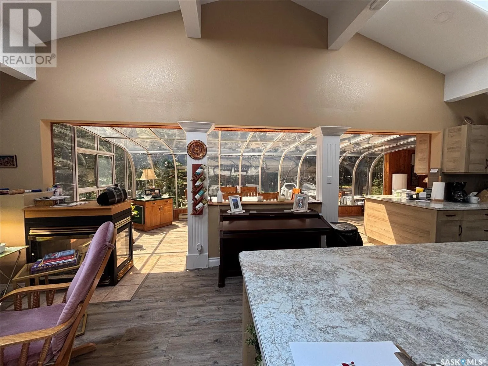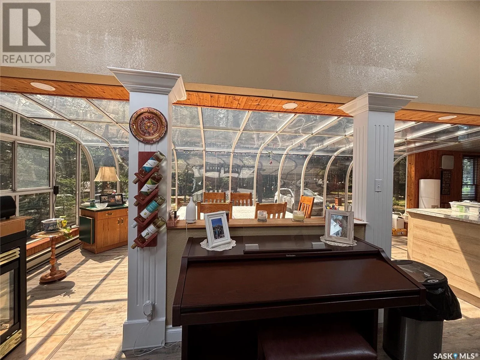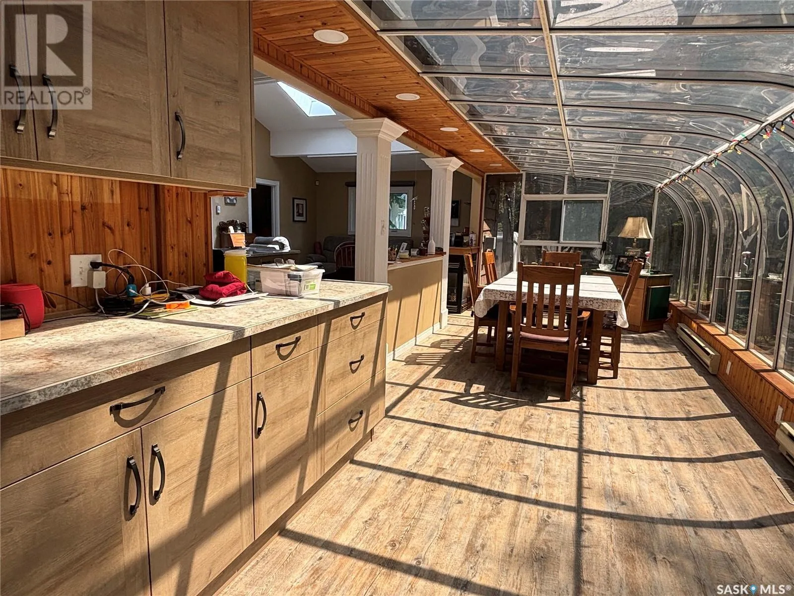 Live year round on the Saskatchewan side of Cypress Hills Provincial Park. This 3 bedroom 2 bathroom cabin has been immaculately maintained. Ask your realtor for the extensive list of upgrades and improvements - located in supplements. With a wrap around deck and a private yard this home offers plenty of outdoor space. There is a designated fire pit area (all the wood is included) as well as three storage sheds. Inside the home you'll find a gorgeous sunroom that doubles as the dining area. With a galley style kitchen that separates the living room and den the home has plenty of space for the whole family. Easy maintenance vinyl plank flooring is throughout the entire house upstairs and down. The basement is under the den and is described as a 'man cave' which is very convenient as the laundry is here as well. Go ahead guys; fold the laundry while watching the game! A Generac has been installed and automatically kicks in if there is a power outage and there are 3 large cisterns that hold water during the off season. With a forced air furnace, electric baseboard heaters, a gas fireplace and a wood burning stove there is definately warmth and comfort year round. This one has so much to offer, don't miss out - book you showing today! (id:27476)