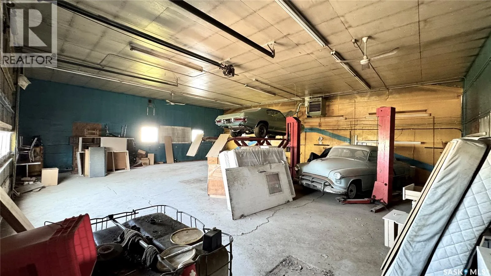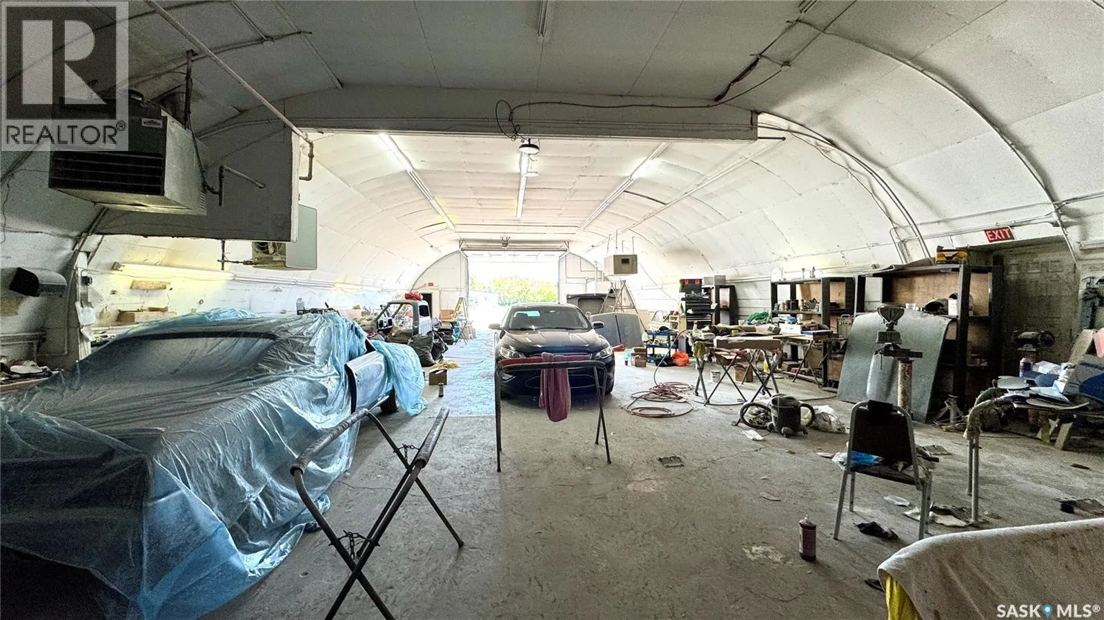 109 McGregor St â MULTI-USE COMMERCIAL PROPERTY IN Davidson, SK This versatile property spans 11 titled parcels in the heart of Davidson, offering a rare combination of COMMERCIAL SHOP SPACE, living quarters, and storage. Originally built in 1971 as a Ford dealership, the main building now features a renovated front area with a kitchen, living room, office space, and four lockable bedrooms - ideal for staff housing or a live/work setup. The rear workshop, built in 1973, includes a forced air furnace, TWO HOISTS (one drive-on, one post), a large air compressor, and a seamless metal snaplock roof (10 years ago). An overhead door at the back of the building provides convenient access to the shop area housing the hoists. Attached is a 1,464 sq ft COLD STORAGE building, perfect for additional equipment or material storage. Also on-site is a 40' x 120' Arch Rib/Quonset-style building, seamless metal snap-lock roof, currently used privately as a PAINT AND BODY SHOP. It includes a paint booth, storage area, frame tie-downs, and a DEVILBISS heated air make-up unit that filters and heats air for the booth while venting exhaust. An overhead door provides vehicle access, with the booth located at the back of the structure. This Quonset is adjoined to a FENCED COMPOUND, ideal for secure outdoor storage. Whether you're expanding an automotive business, seeking mixed-use space, or looking for a centrally located investment, this well-equipped property delivers space, functionality, and long-term potential. (id:27476)