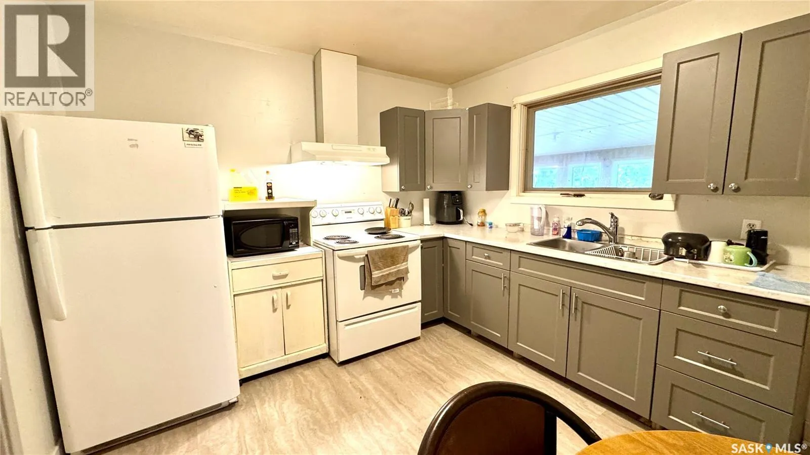 115 1st Street, Davidson, SK â $179,000 Affordable 5-bedroom, 2-bath bungalow for sale in Davidson, Saskatchewan, located within walking distance of local schools and amenities. This 988 sq ft home offers excellent flexibility for families, extended households, or anyone looking for a revenue property in Davidson. The main floor includes a bright living room, eat-in kitchen, three bedrooms, and a 4-piece bathroom. The fully finished basement adds a second kitchen, large family room, two more bedrooms, a full bath, and a den or office which is ideal for multi-family living or a non-regulation basement suite. Updates include laminate flooring, a metal roof, and refreshed finishes, making this property move-in ready. The attached single-car garage opens to a closed-in sunroom overlooking the backyard. A paved driveway and 60â x 138â lot provide ample parking and outdoor space with mature trees. Located halfway between Saskatoon and Regina along Highway 11, Davidson offers convenient central access for commuters. Whether youâre searching homes for sale in Davidson, a starter home, or a Saskatchewan investment property, 115 1st Street offers solid value and plenty of potential. (id:27476)