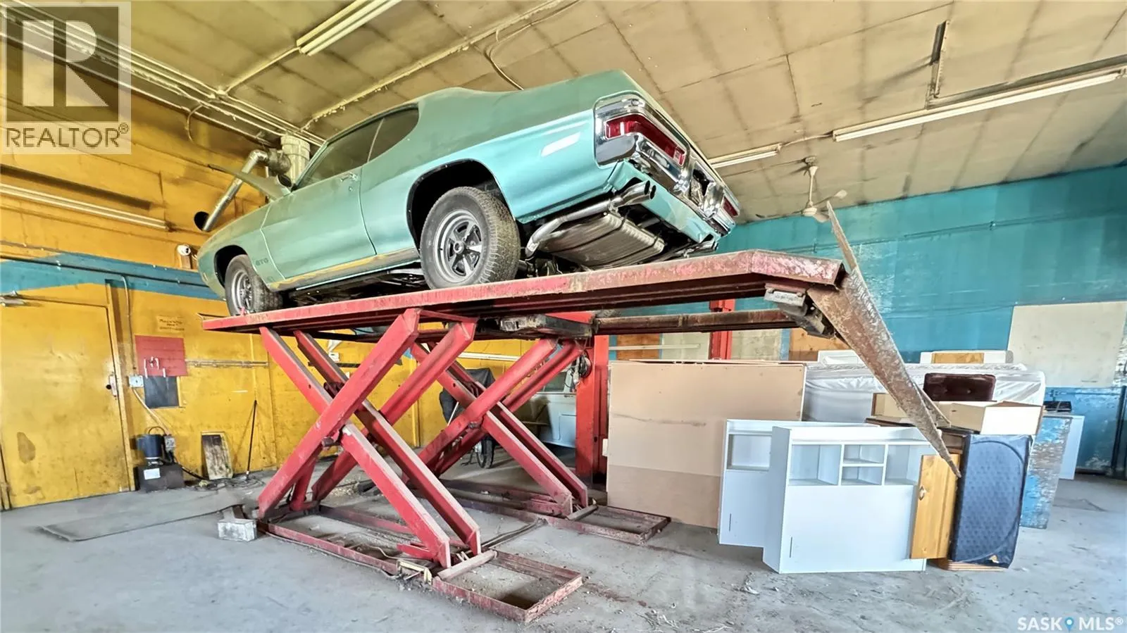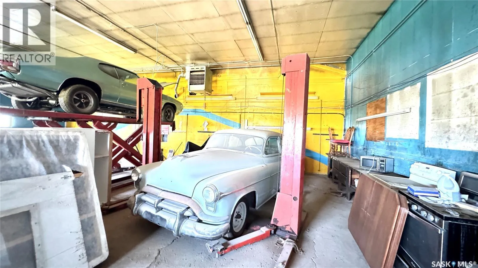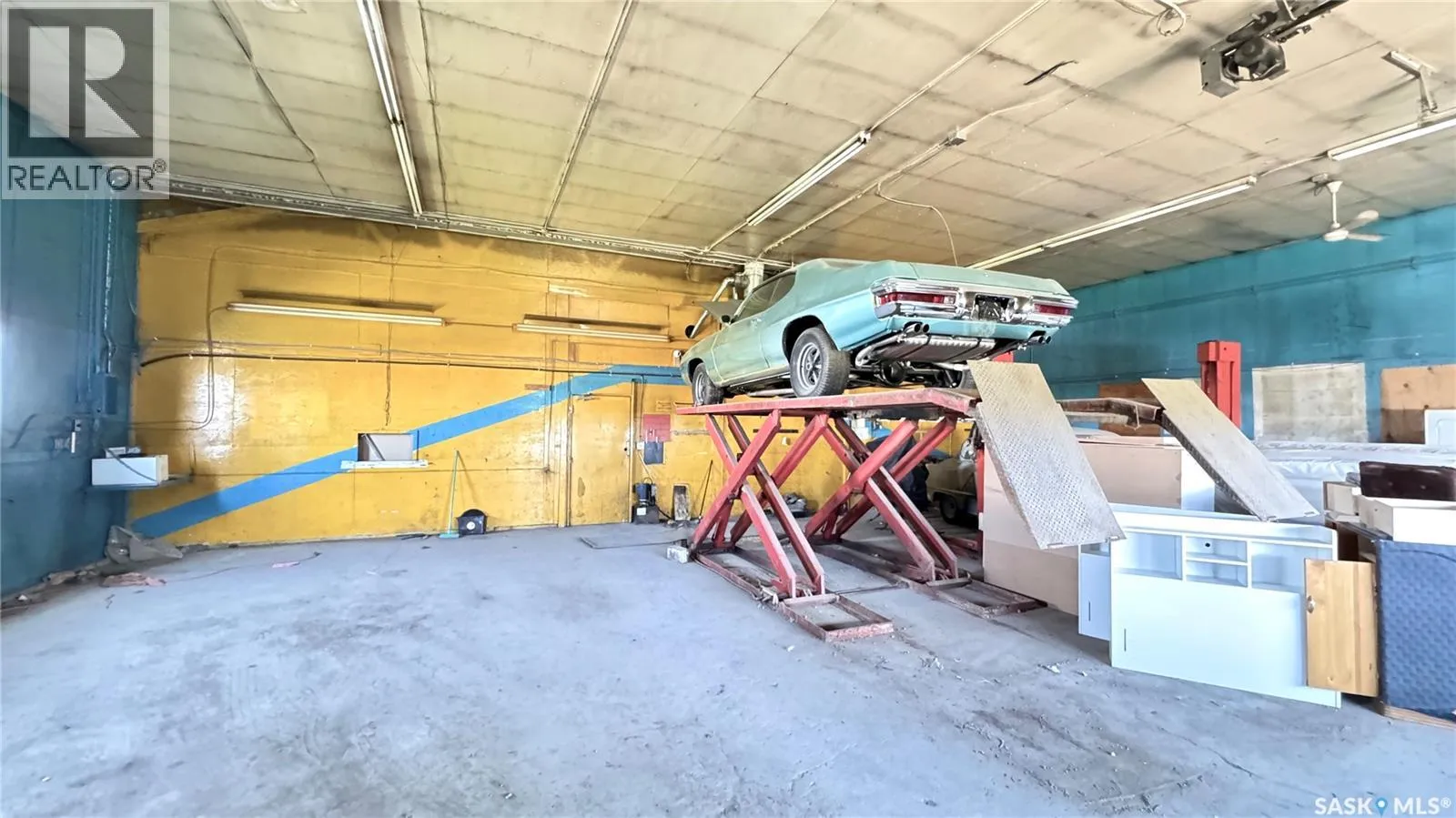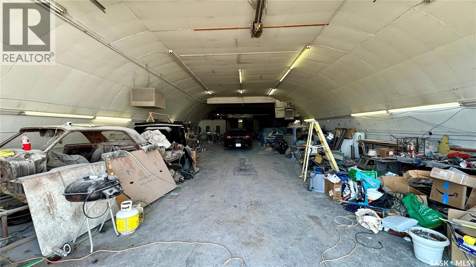 109 McGregor St â MULTI-USE COMMERCIAL PROPERTY IN Davidson, SK This versatile property spans 11 titled parcels in the heart of Davidson, offering a rare combination of COMMERCIAL SHOP SPACE, living quarters, and storage. Originally built in 1971 as a Ford dealership, the main building now features a renovated front area with a kitchen, living room, office space, and four lockable bedrooms - ideal for staff housing or a live/work setup. The rear workshop, built in 1973, includes a forced air furnace, TWO HOISTS (one drive-on, one post), a large air compressor, and a seamless metal snaplock roof (10 years ago). An overhead door at the back of the building provides convenient access to the shop area housing the hoists. Attached is a 1,464 sq ft COLD STORAGE building, perfect for additional equipment or material storage. Also on-site is a 40' x 120' Arch Rib/Quonset-style building, seamless metal snaplock roof, currently used privately as a PAINT AND BODY SHOP. It includes a paint booth, storage area, frame tie-downs, and a DEVILBISS heated air make-up unit that filters and heats air for the booth while venting exhaust. An overhead door provides vehicle access, with the booth located at the back of the structure. This Quonset is adjoined to a FENCED COMPOUND, ideal for secure outdoor storage. Whether you're expanding an automotive business, seeking mixed-use space, or looking for a centrally located investment, this well-equipped property delivers space, functionality, and long-term potential. (id:27476)